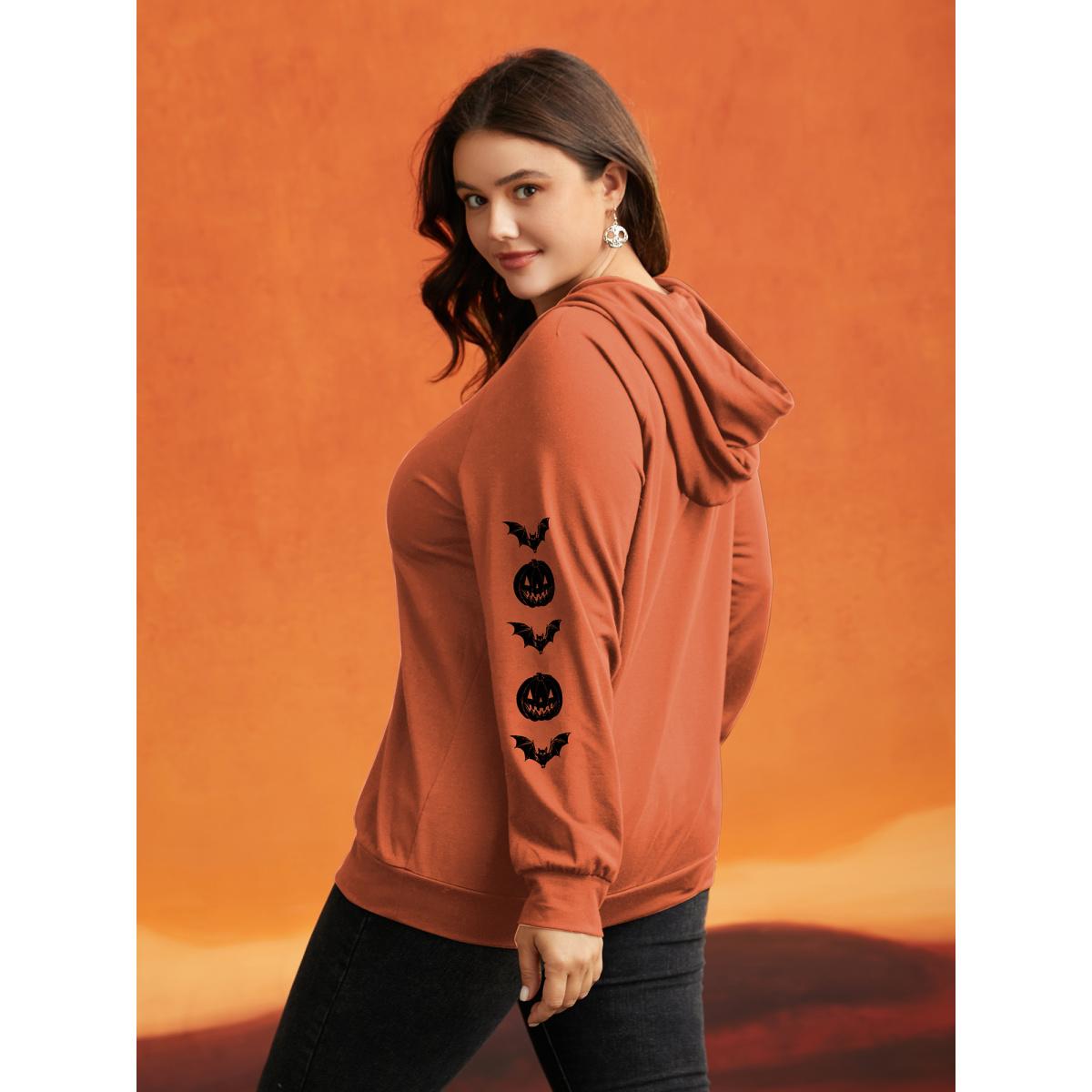 Plus Size Trick & Chic Graphic Sweatshirt Women Brightorange Playful Drawstring Loose Hooded Casual Sweatshirts BloomChic 26/4X