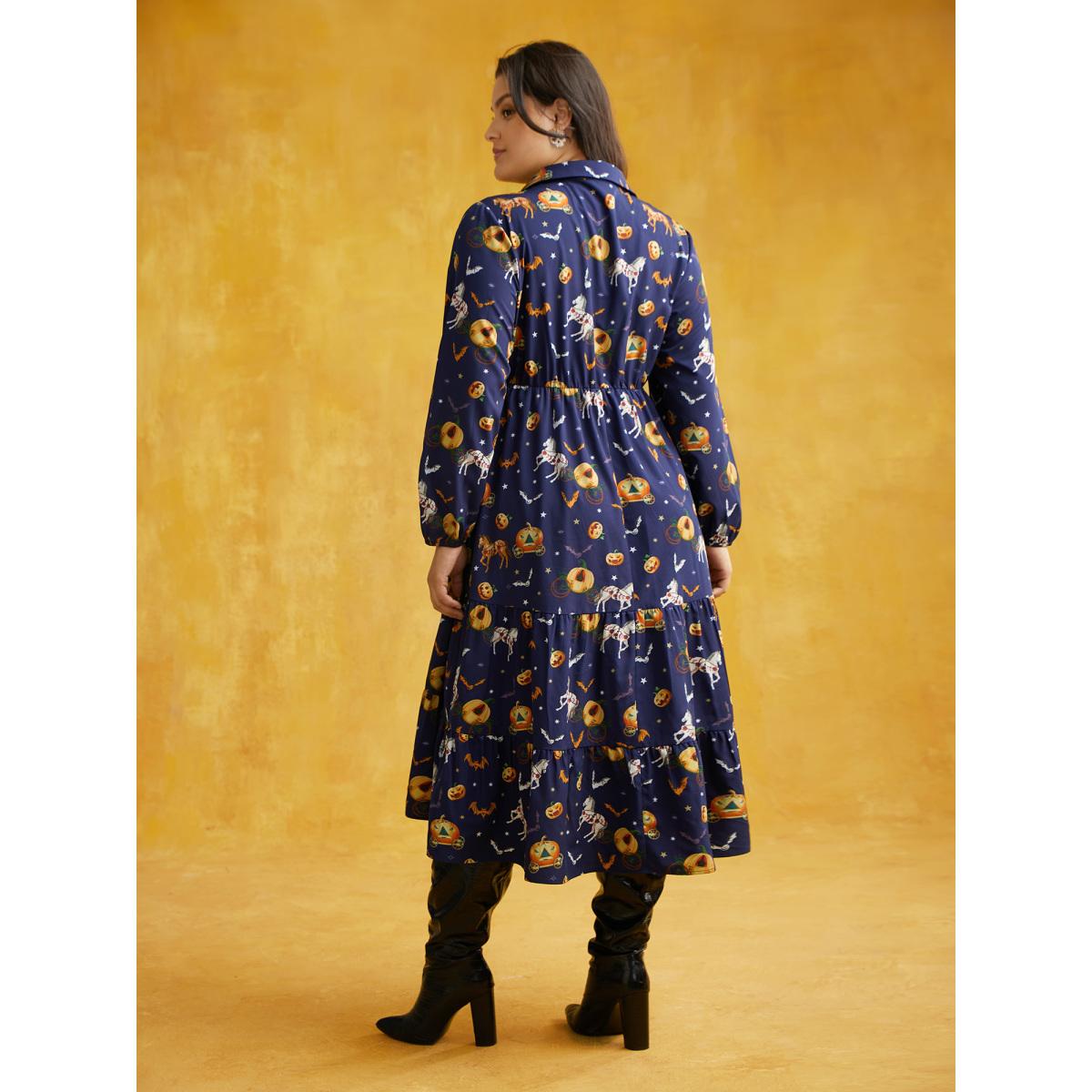 Plus Size Trick & Chic Printed Waist Cinching Midi Dress Indigo Women Cocktail Button Party Curvy Bloomchic 14-16/1X