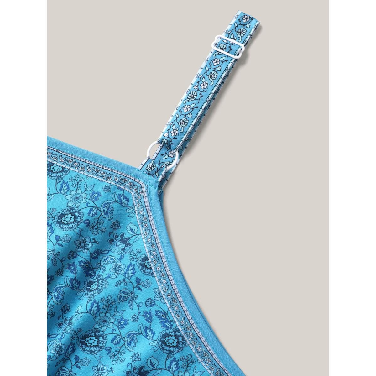 Plus Size Tropical Blues Cinched Cami Midi Dress Cerulean Women Boho Gathered Heart neckline Sleeveless Curvy BloomChic 30/6X Product Image