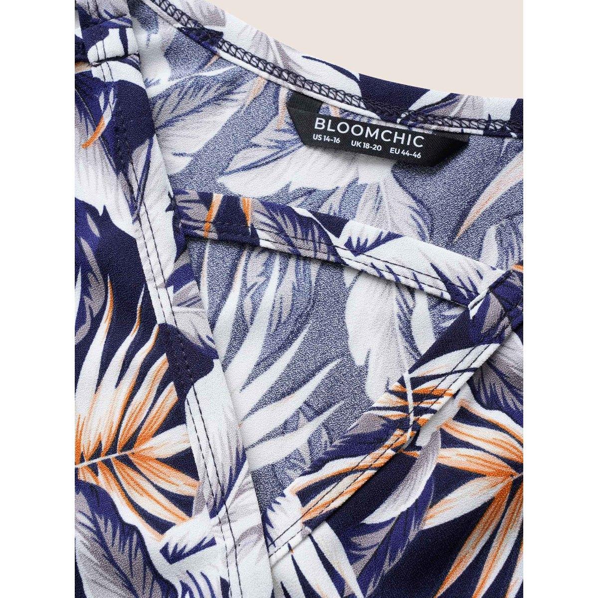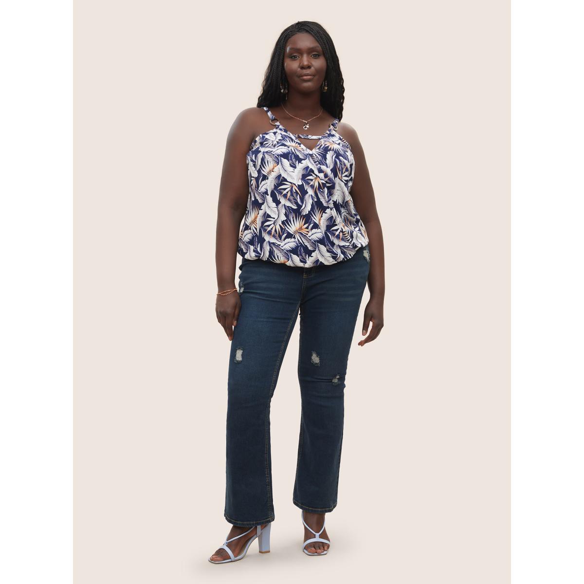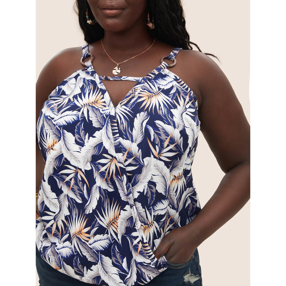 Plus Size Tropical Print Wrap Cut Out Cami Top Women Indigo Resort Overlapping Notched collar Vacation Tank Tops Camis BloomChic 12/L
