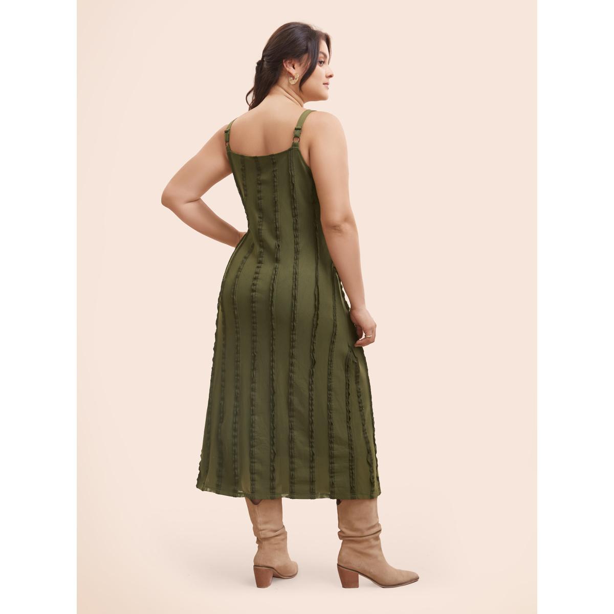 Plus Size Wrinkle-Treated Waist-Defining Midi Dress Olive Women Resort Texture Non Sleeveless Curvy BloomChic 26/4X
