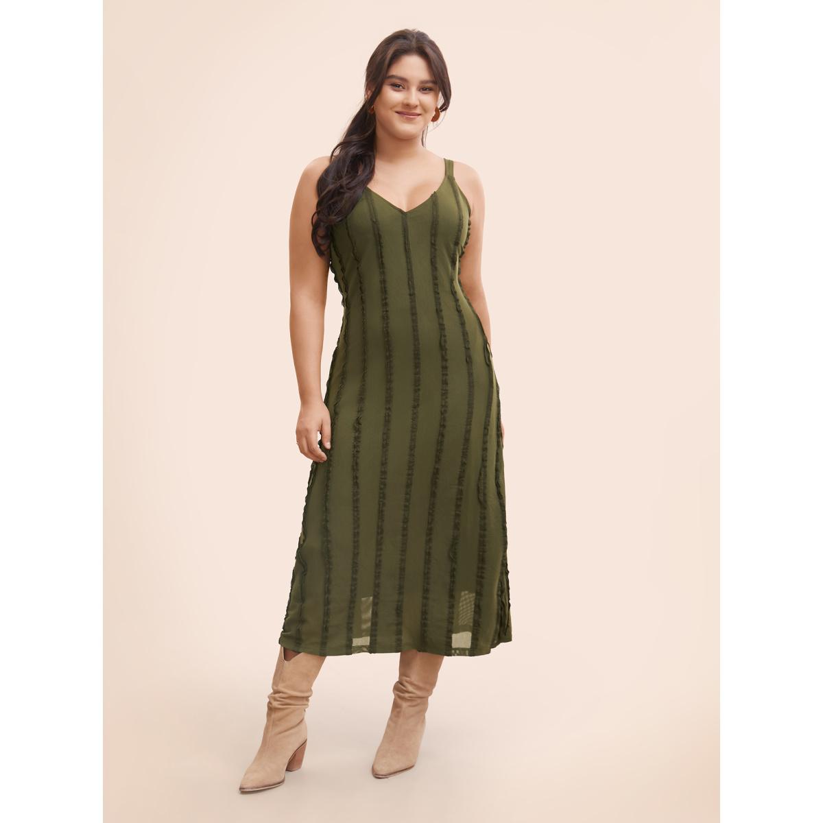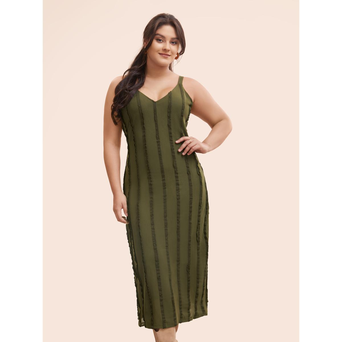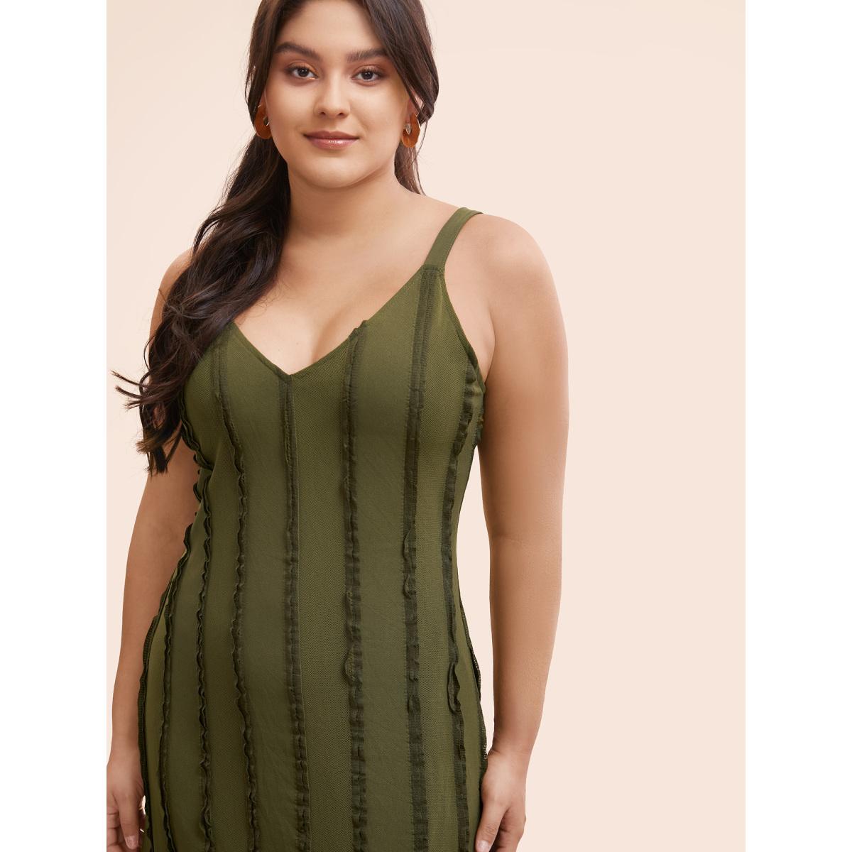 Plus Size Tucked Seam Textured Cami Dress Olive Women Casual Tucked seam V-neck Sleeveless Curvy BloomChic 12/L