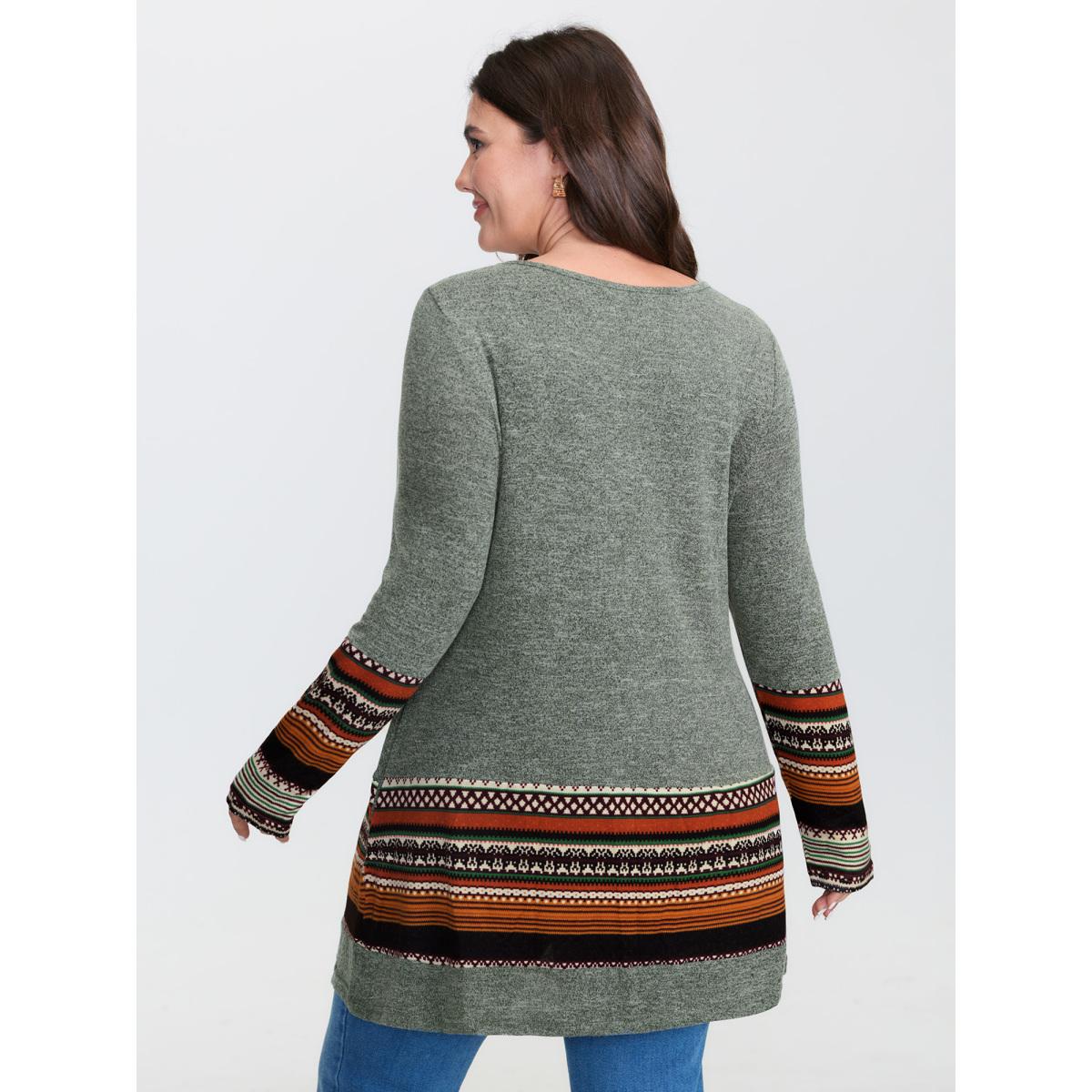 Plus Size Tunic Boho Print Pocket T-shirt Sage Women Leisure Contrast Round Neck Loose Casual T-shirts BloomChic 10/M Product Image