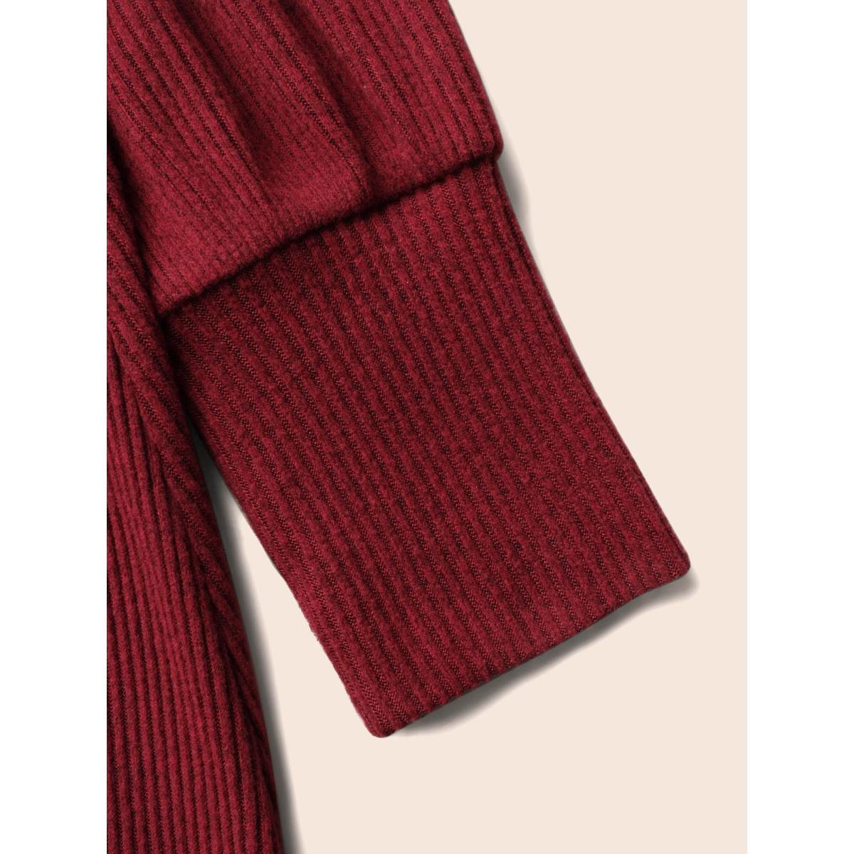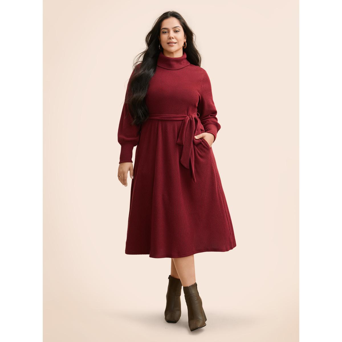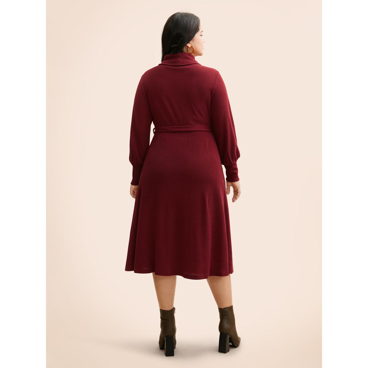 Plus Size Turtleneck Belted High Stretch Knit Dress Burgundy Women Casual Texture Knit Dresses Bloomchic 22-24/3X