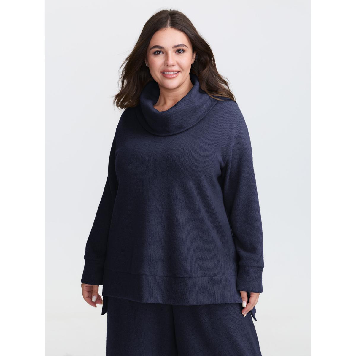 Plus Size Turtleneck Snuggle-Worthy Loungewear Set Women Indigo Long Sleeve Turtleneck Leisure Loungewear Sets BloomChic 26/4X