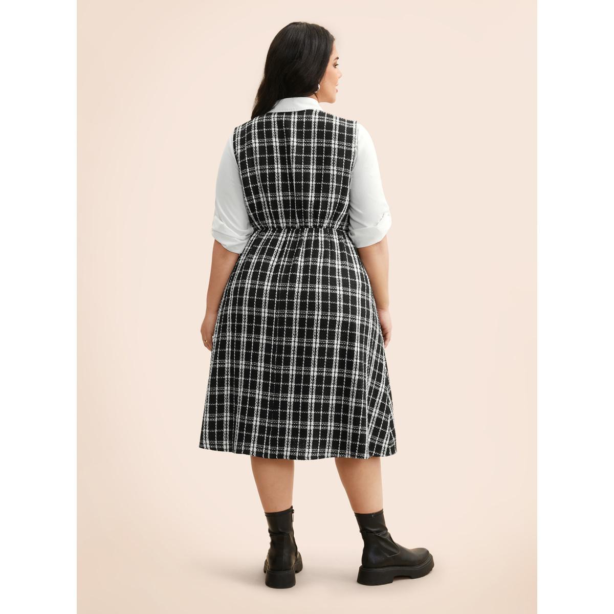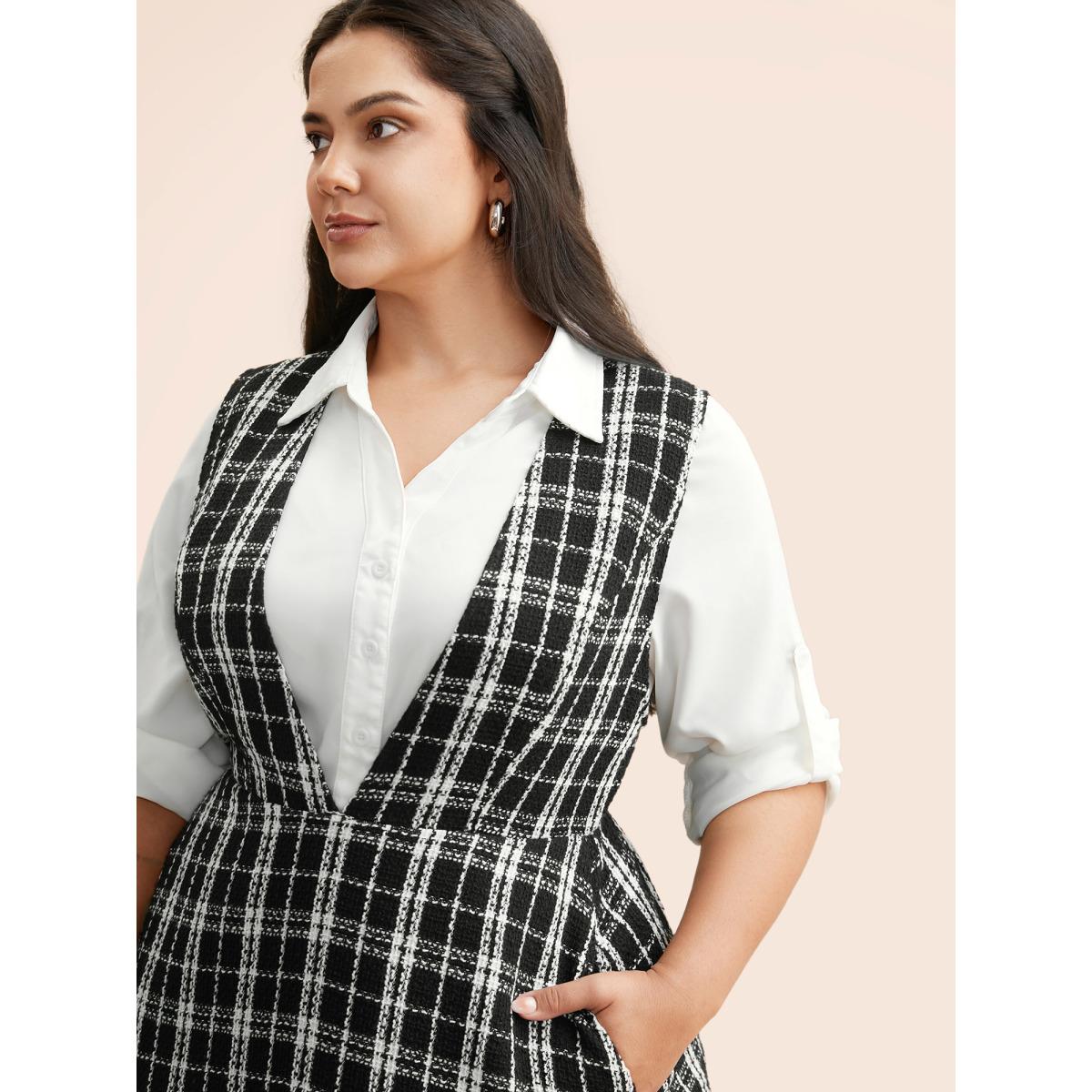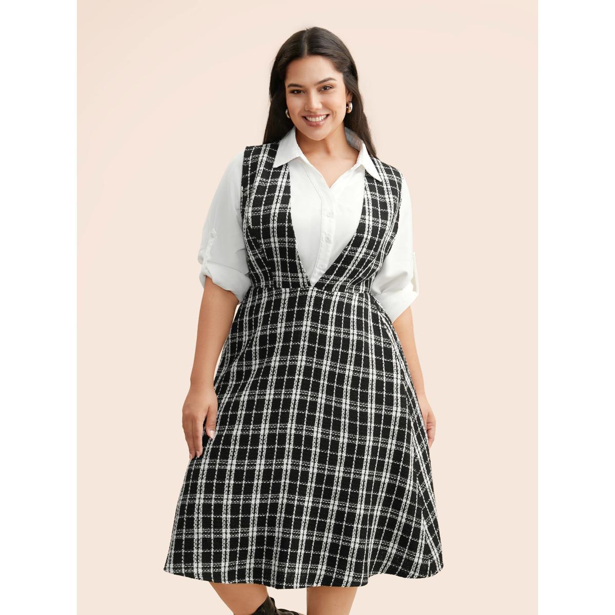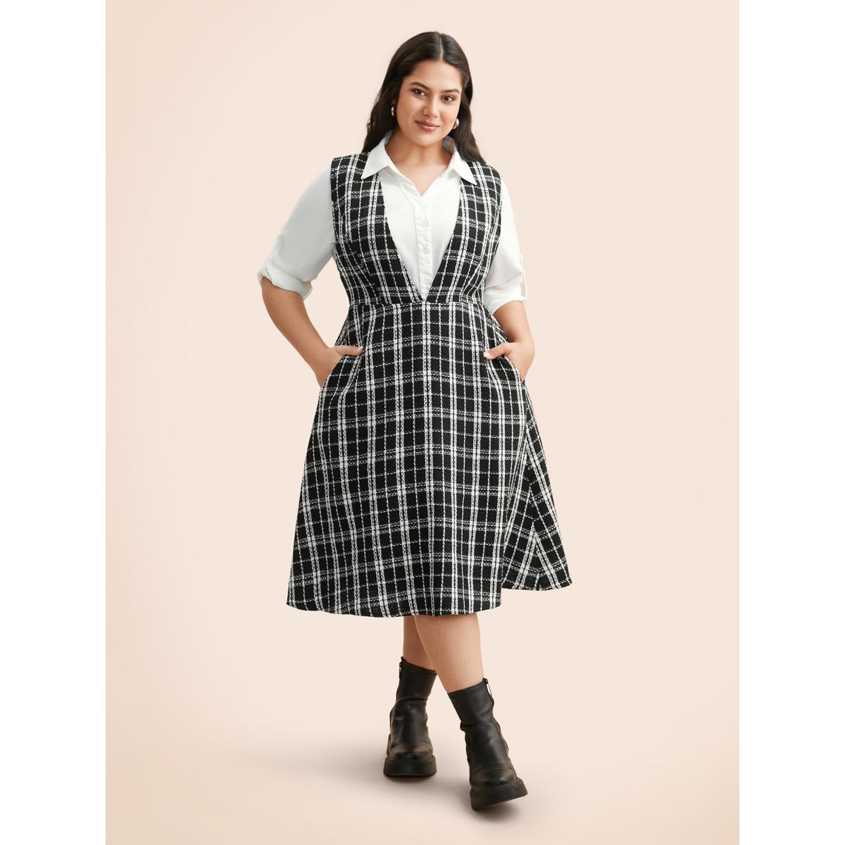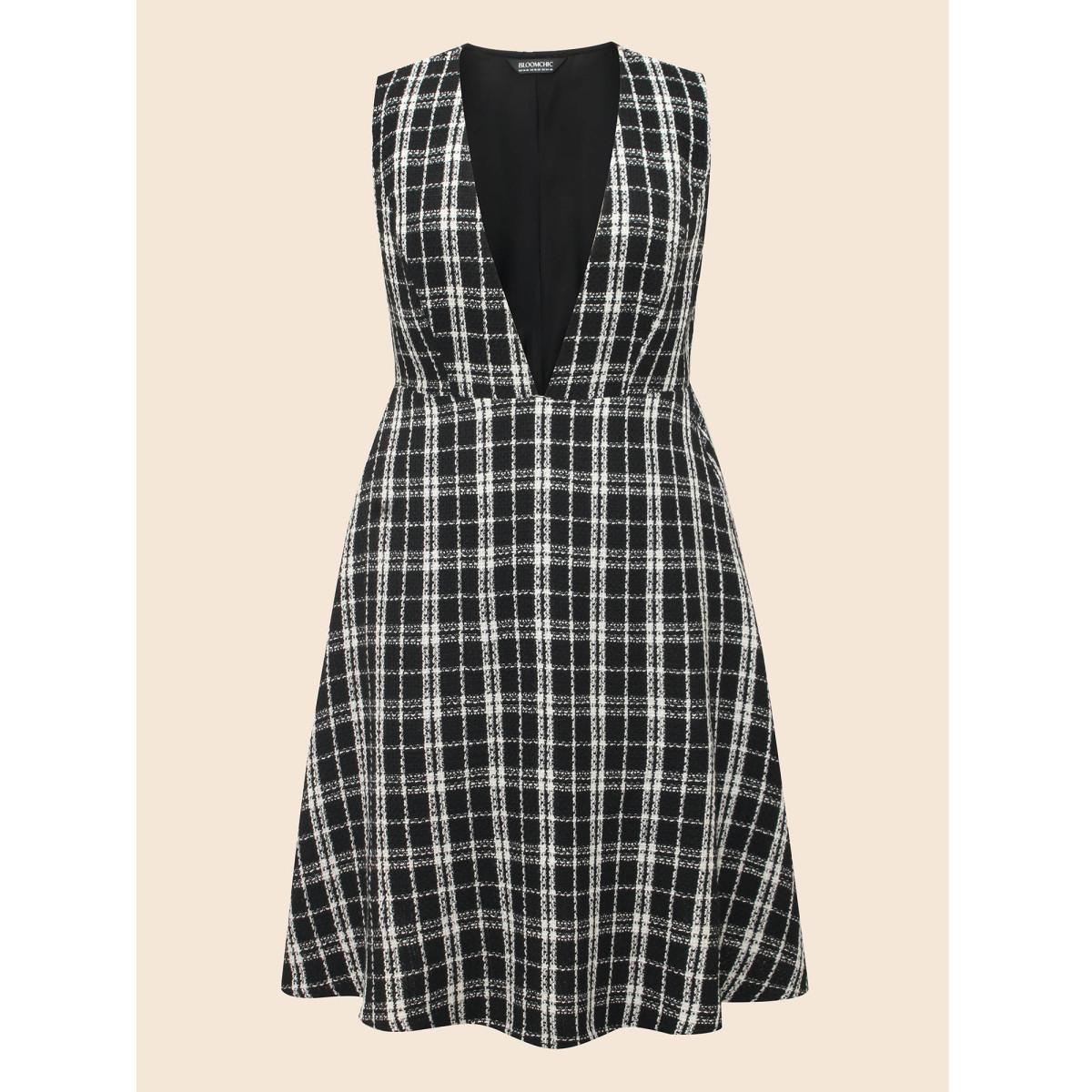 Plus Size Plaid V Neck Sleeveless Dress Multicolor Women Elegant Texture Deep V-neck Sleeveless Curvy BloomChic 12/L