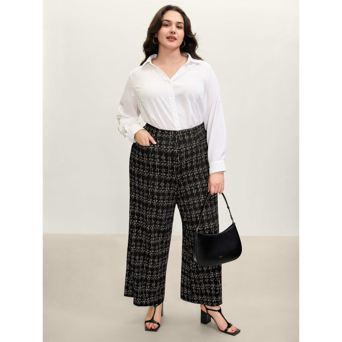 Plus Size Tweed Texture Wide-Leg Pants Women LightBrown Office Loose Mid Rise Office Pants BloomChic 18-20/2X