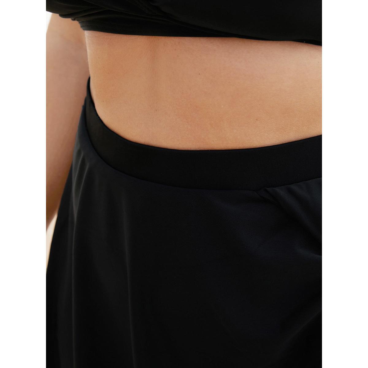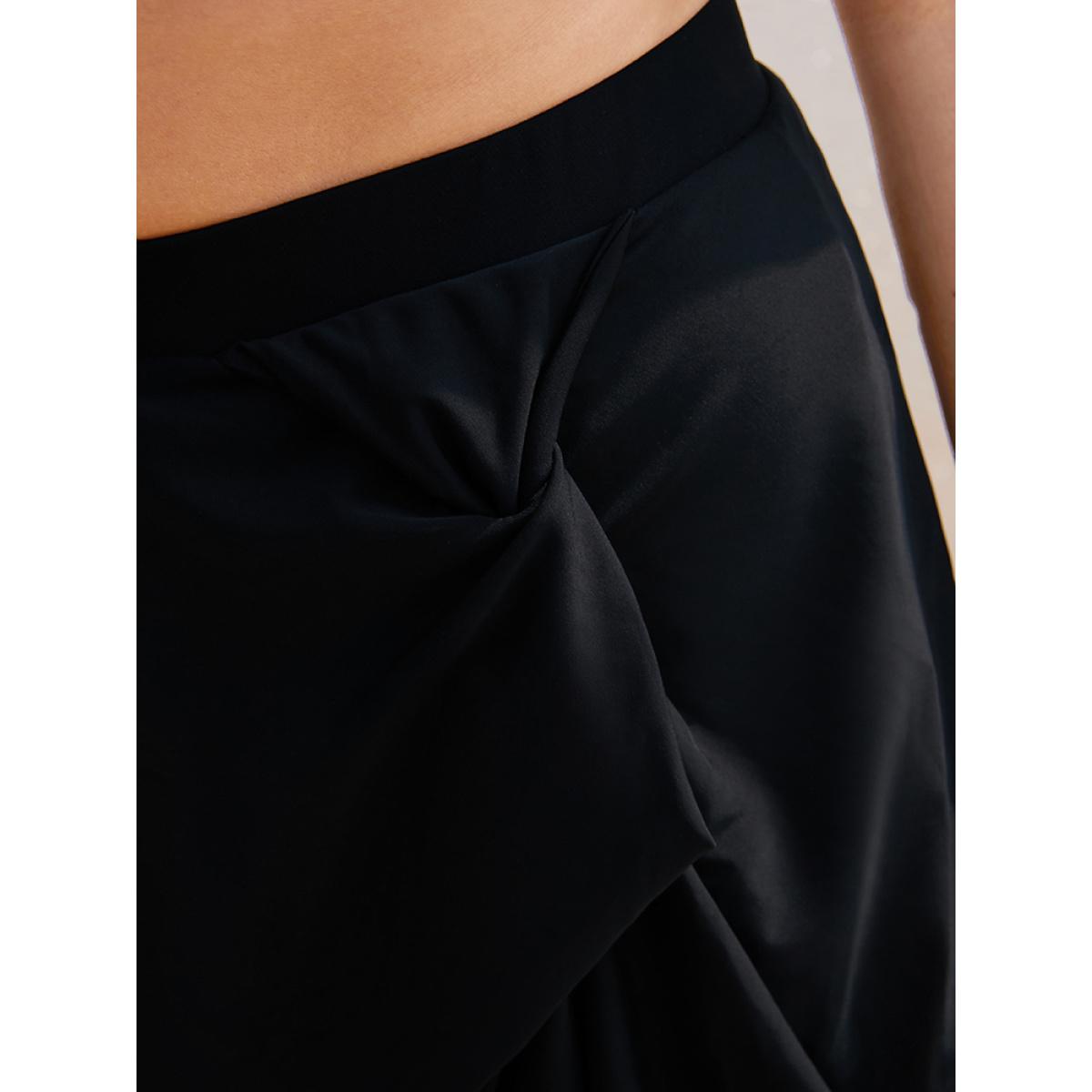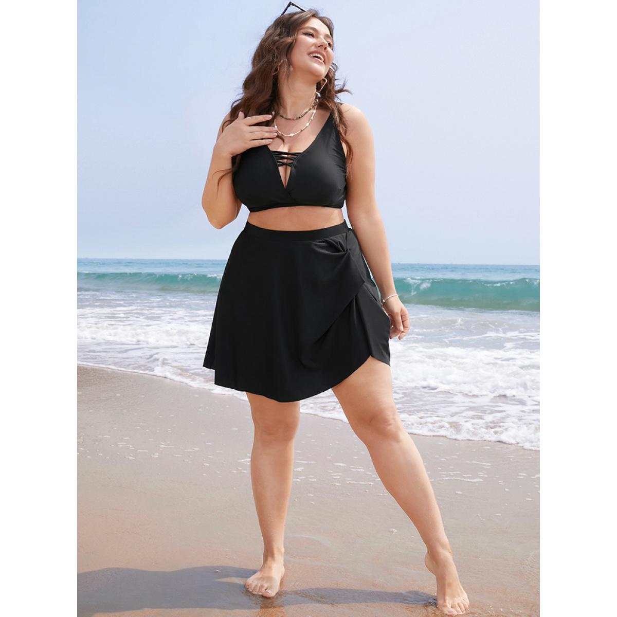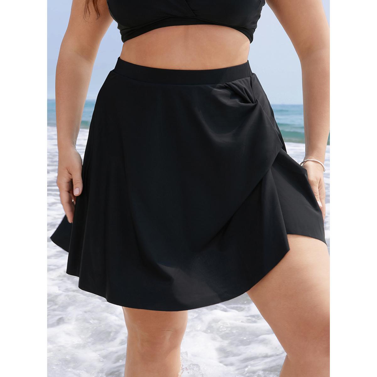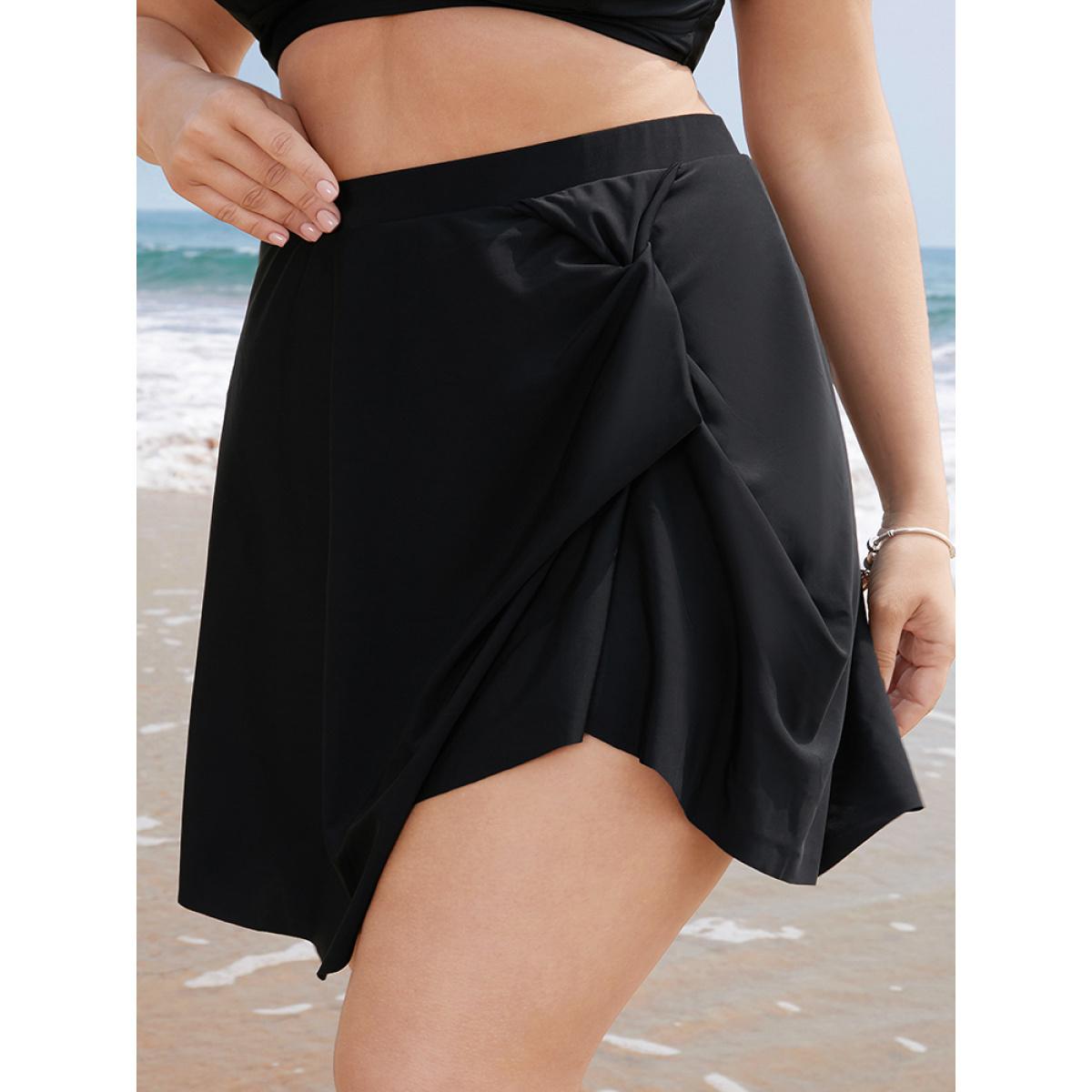 Plus Size Twist Front Asymmetrical Swim Skirt Women's Swimwear Black Vacation Plain High stretch Bodycon High Rise Curve Swim Bottoms BloomChic 14-16/1X