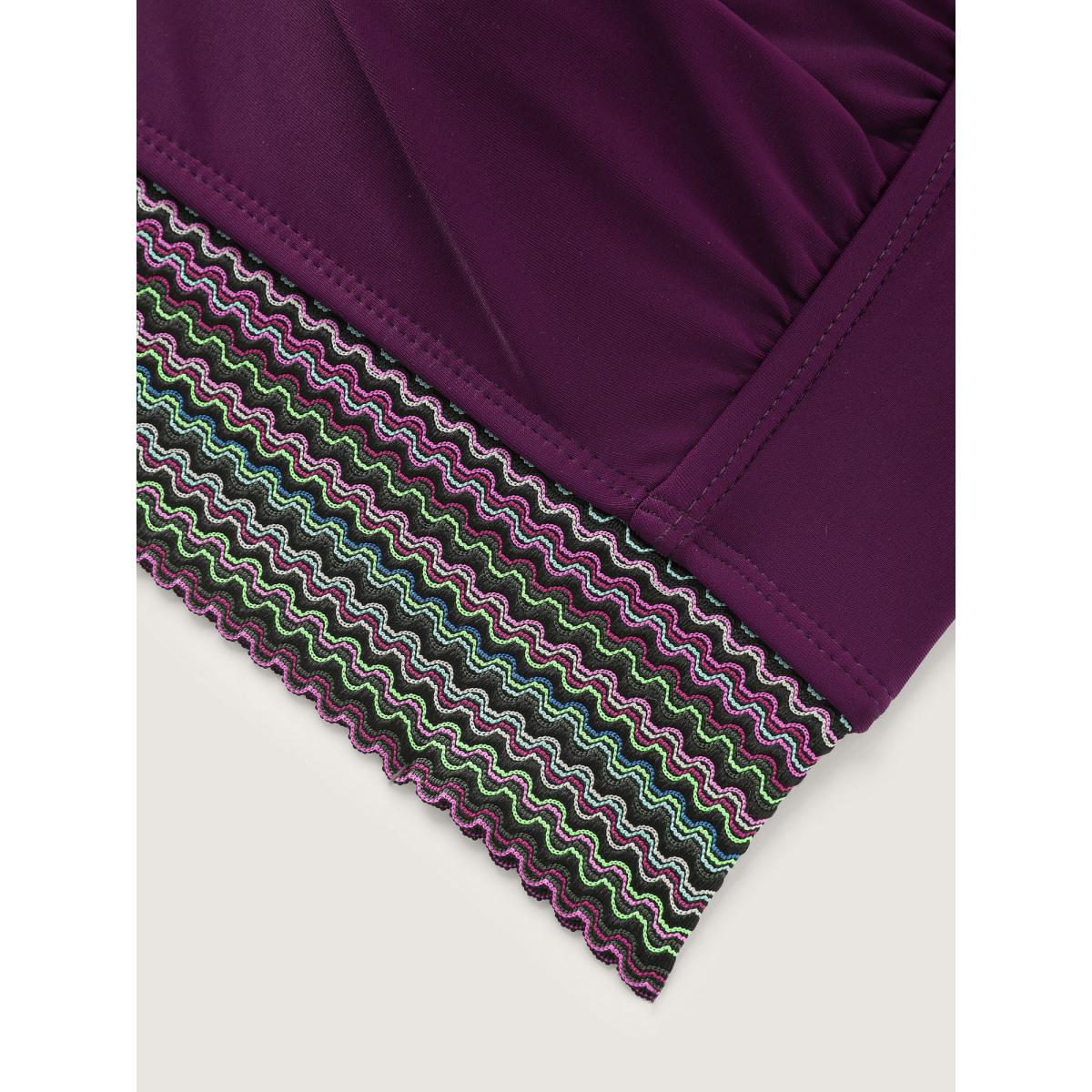 Plus Size Twist Front Patchwork Woven Ribbon Swim Top Women's Swimwear Eggplant Resort Woven ribbon&lace trim High stretch Skinny Heart neckline Curve Swim Tops BloomChic 12/L Product Image