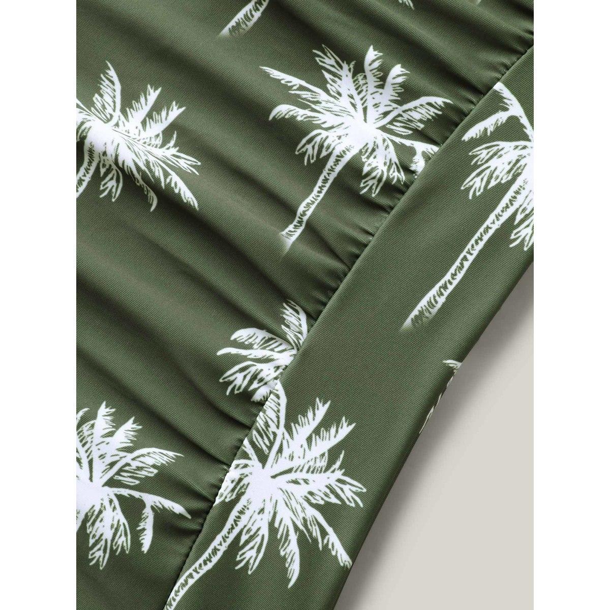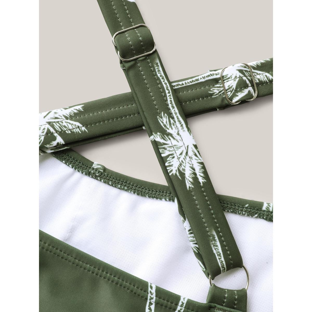 Plus Size Twist Front Tropical Print One-Piece Swimsuit Women's Swimwear ArmyGreen Beach Twist Curve Bathing Suits High stretch One Pieces BloomChic 18-20/2X