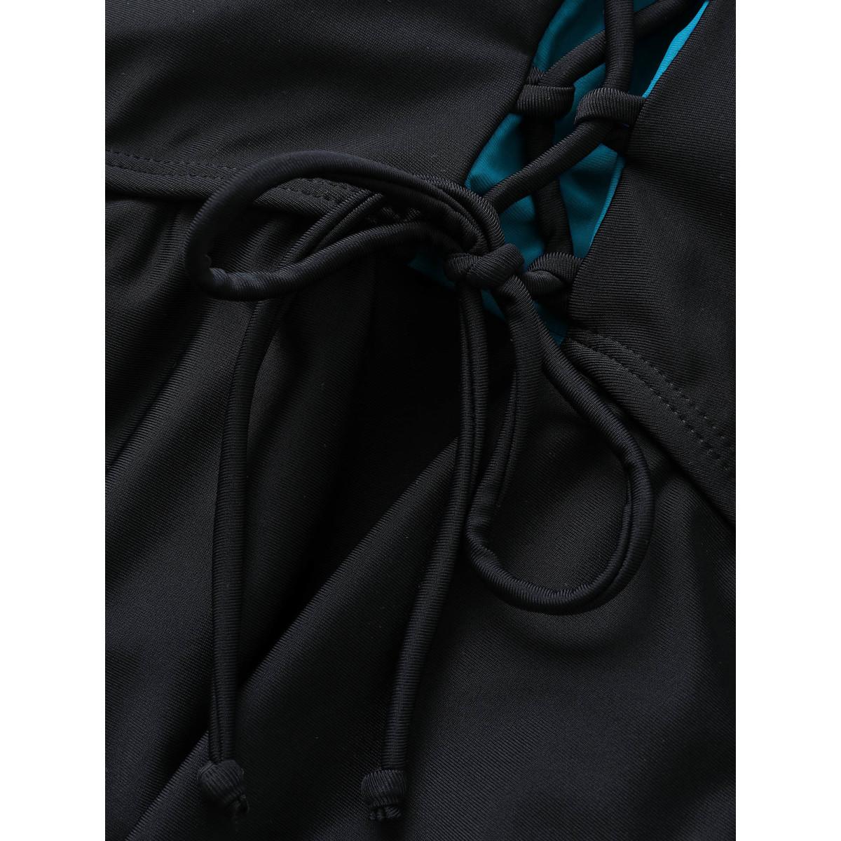 Plus Size Two Tone Patchwork Crisscross Neck Swim Top Women's Swimwear Black Beach Non High stretch Bodycon U-neck Curve Swim Tops BloomChic 22-24/3X
