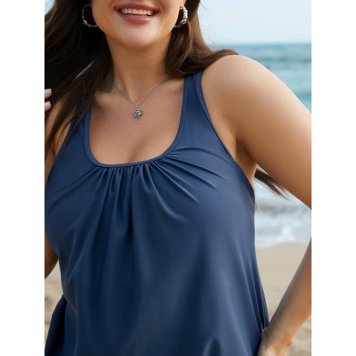 Plus Size U Neck Solid Gathered Gathered Swim Top Women's Swimwear SlateGray Resort Gathered High stretch Bodycon U-neck Curve Swim Tops BloomChic 10/M