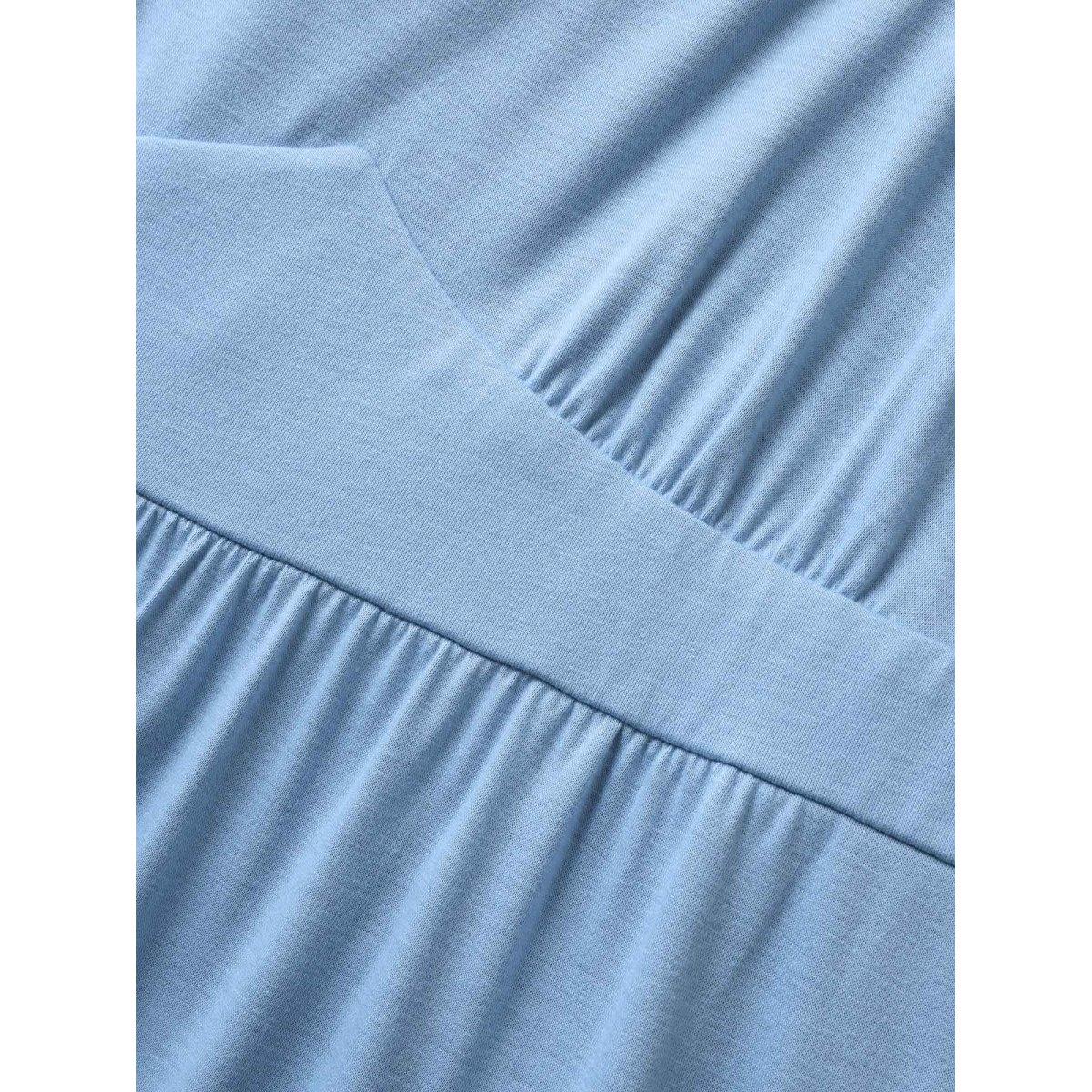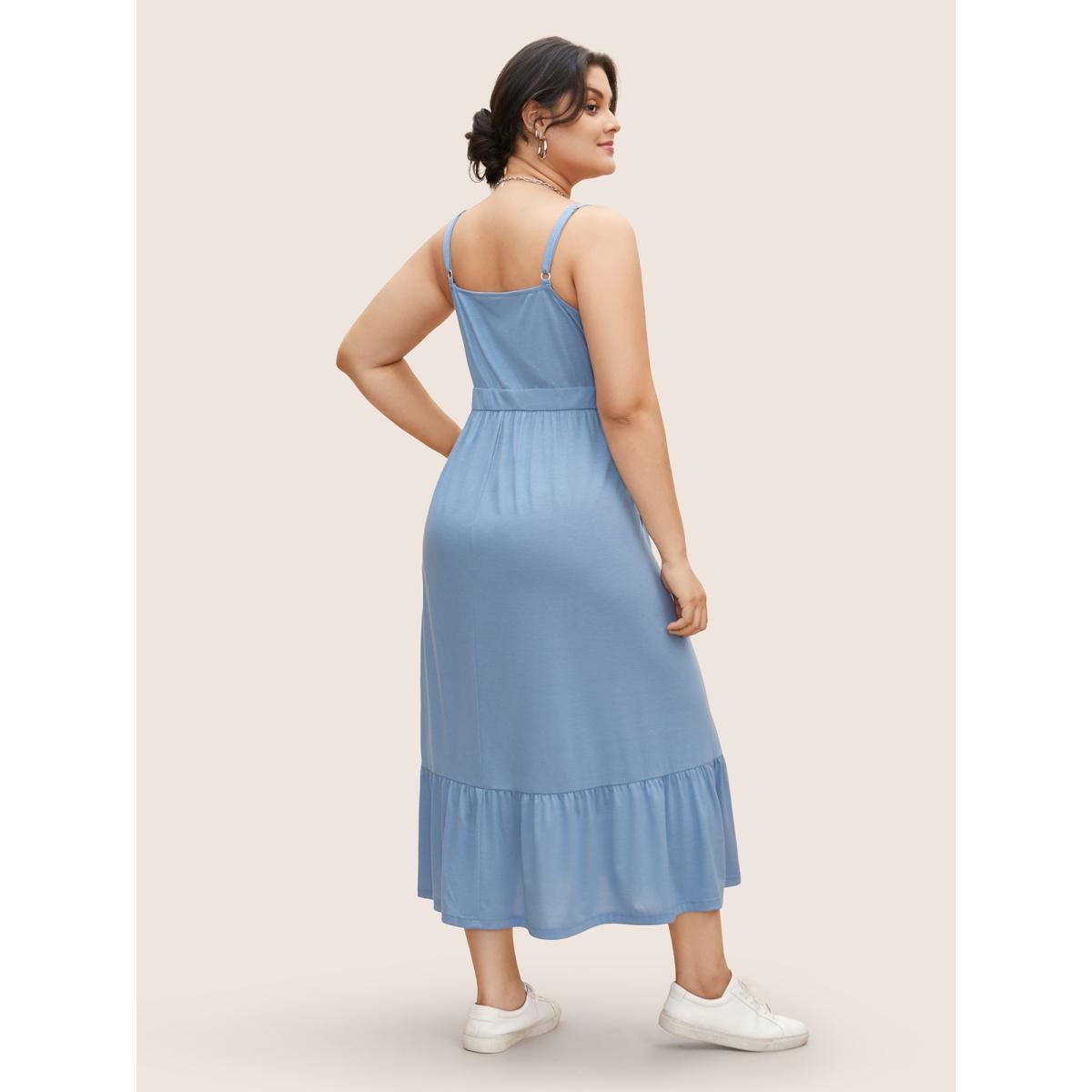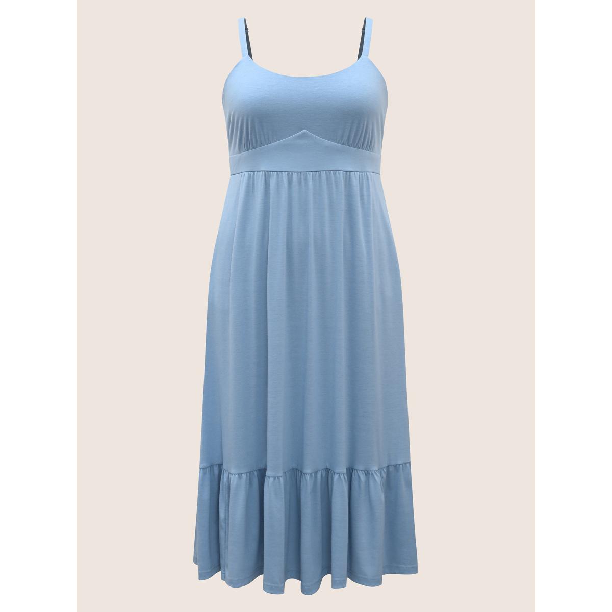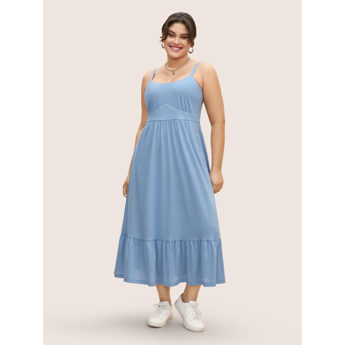 Plus Size U Neck Solid Patchwork Ruffle Hem Maxi Dress LightBlue Women Basics Gathered U-neck Sleeveless Curvy BloomChic 22-24/3X