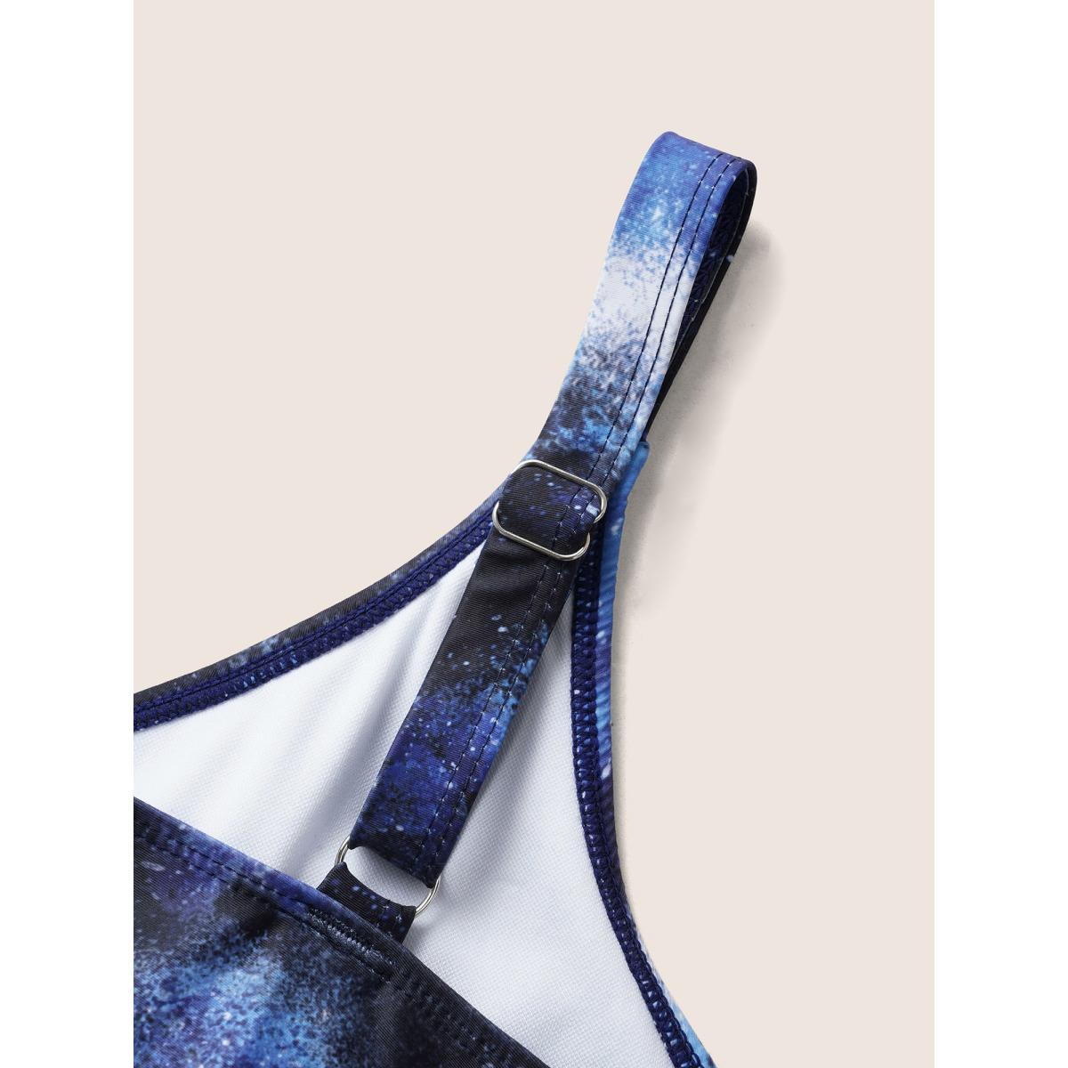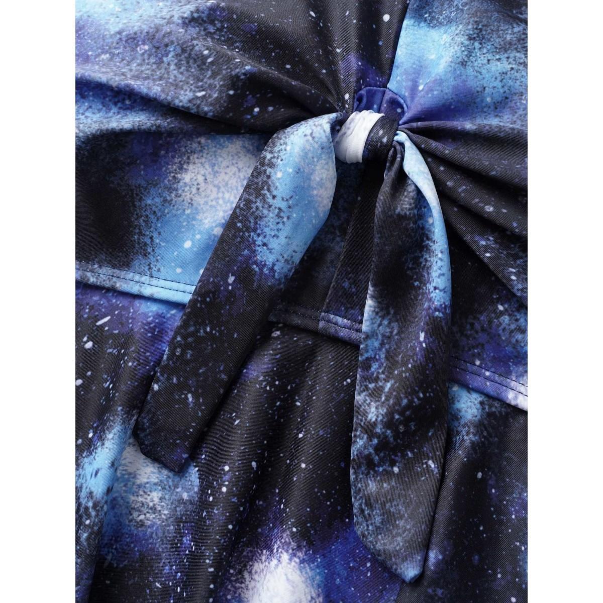 Plus Size U Neck Starry Sky Print Tie Knot Swim Top Women's Swimwear Midnight Beach Tie knot High stretch Bodycon U-neck Curve Swim Tops BloomChic 18-20/2X