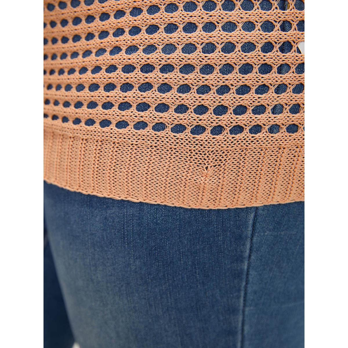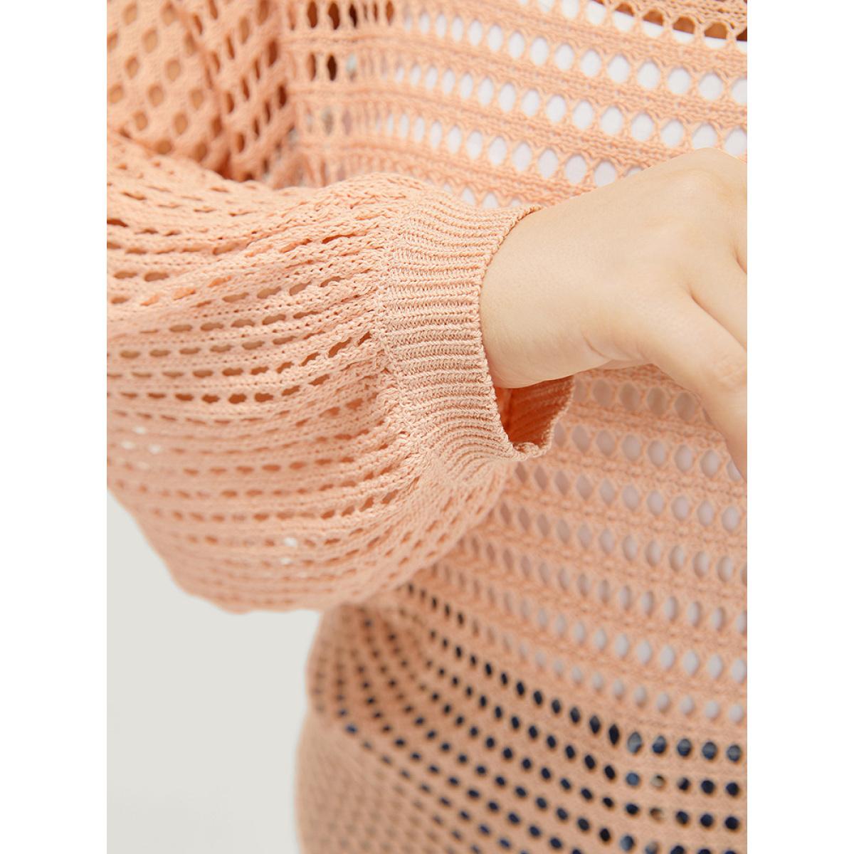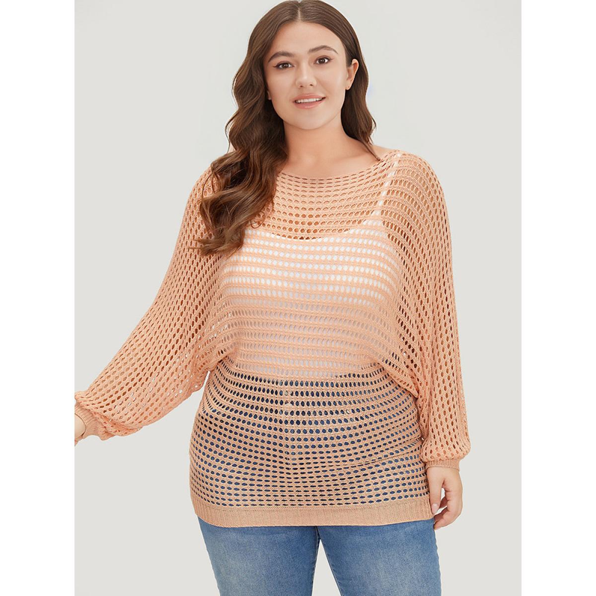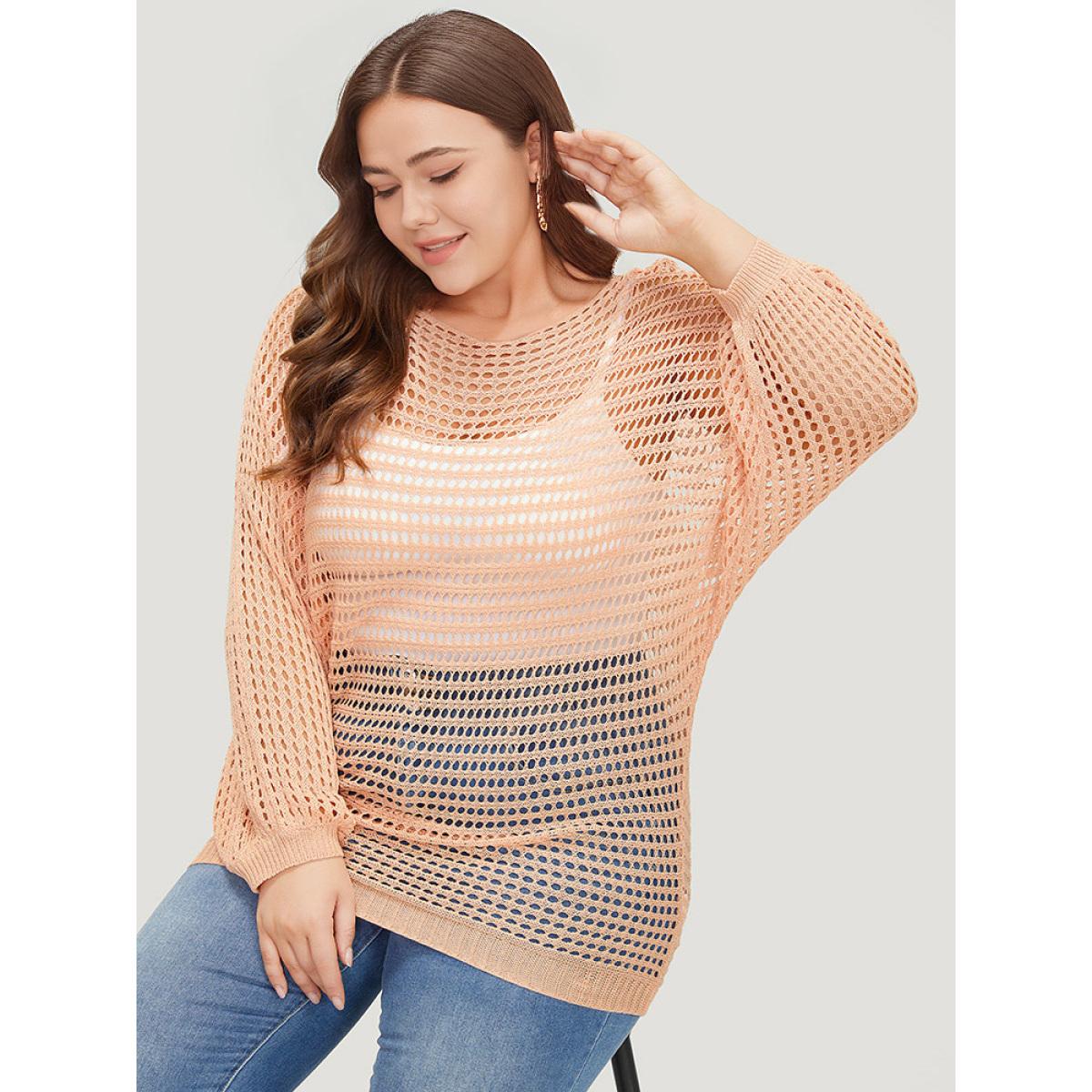 Plus Size UltraCool Solid Hollow Out Batwing Sleeve Pullover Salmon Women Casual Loose Long Sleeve Round Neck Everyday Pullovers BloomChic 28/5X
