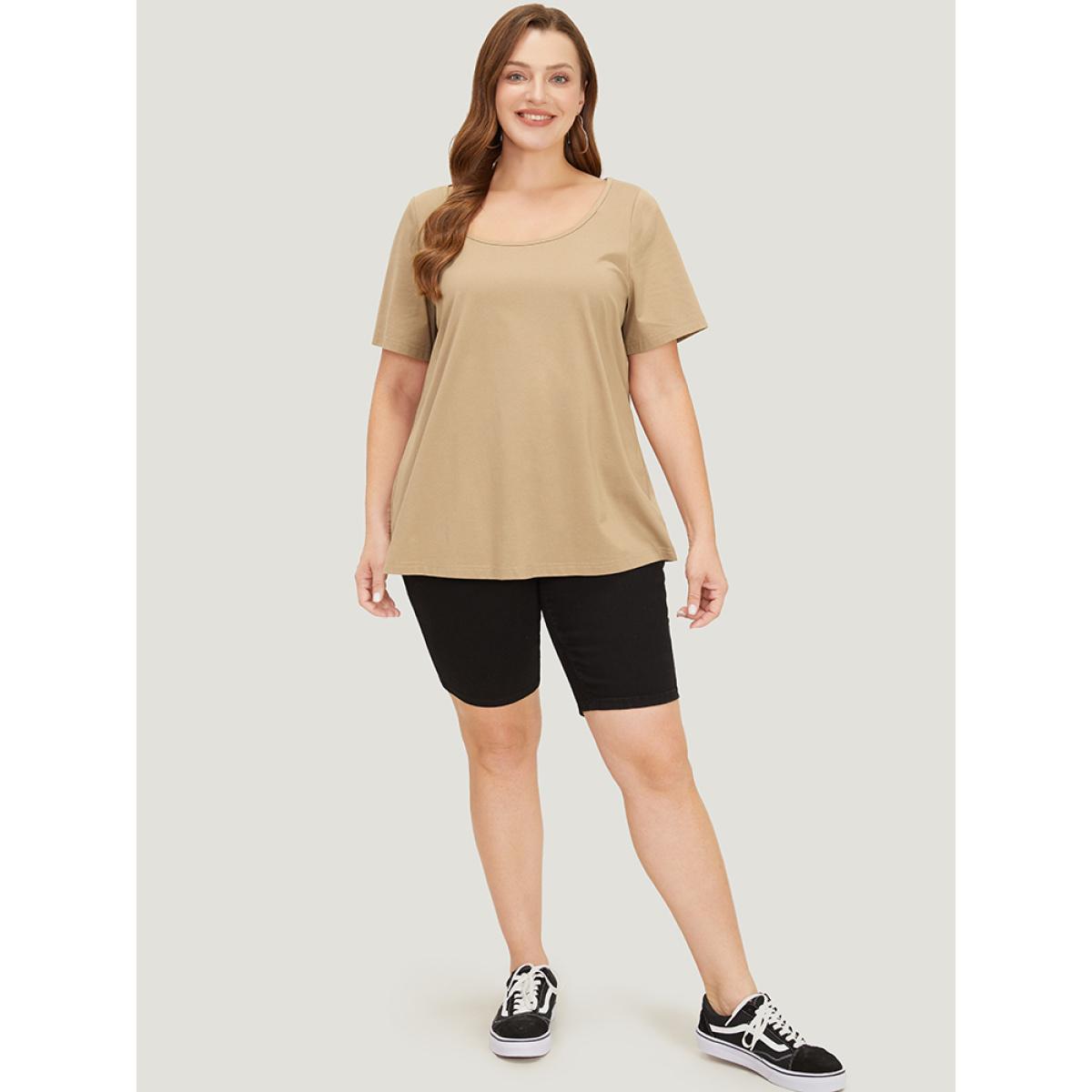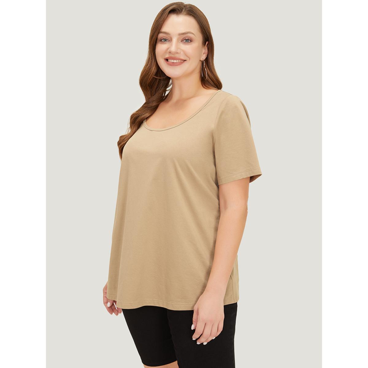 Plus Size UltraCool Solid Scoop Neck Slightly Stretchy T-shirt Tan Women Basics Plain Scoop Neck Dailywear T-shirts BloomChic 14-16/1X
