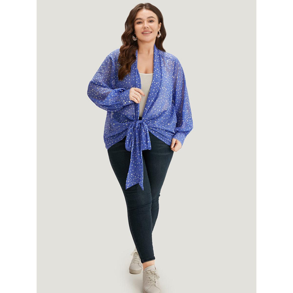 Plus Size UltraCool Star Print Lapel Collar Bowknot Kimono Women Blue Casual Drape Dailywear Kimonos BloomChic 14-16/1X
