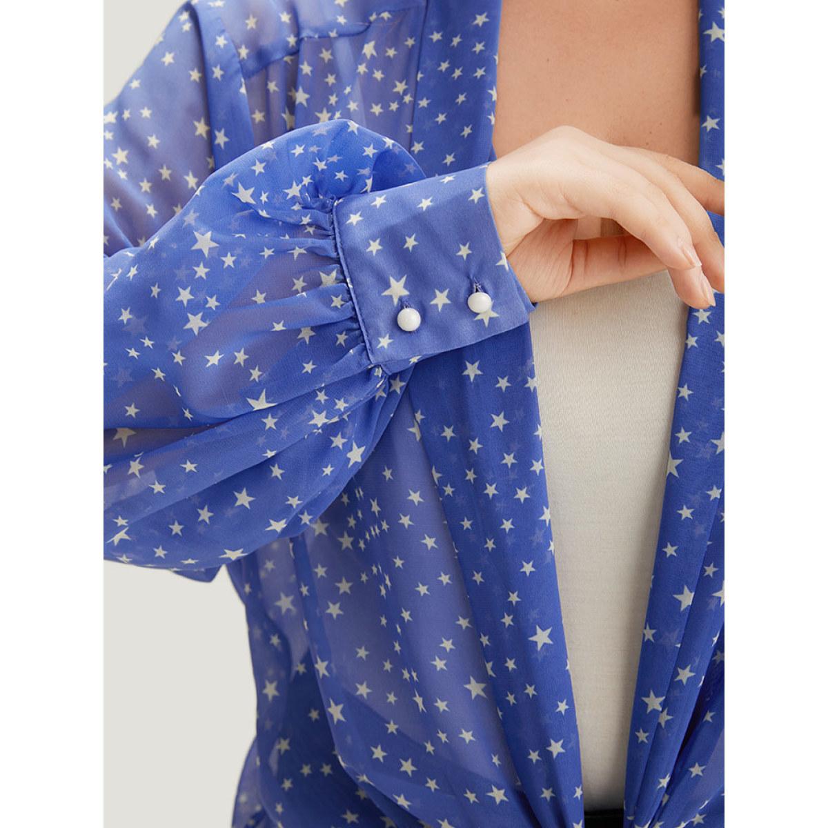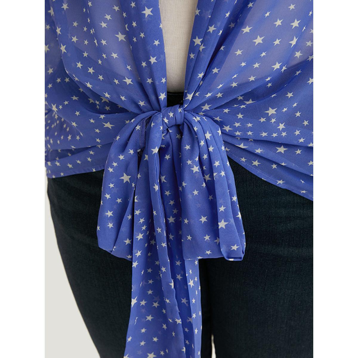 Plus Size UltraCool Star Print Lapel Collar Bowknot Kimono Women Blue Casual Drape Dailywear Kimonos BloomChic 14-16/1X Product Image