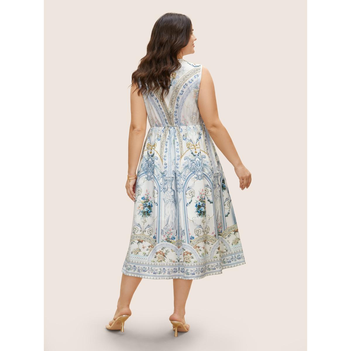 Plus Size V Neck Boho Print Sleeveless Midi Dress Originalwhite Women Resort Gathered V-neck Sleeveless Curvy BloomChic 30/6X Product Image
