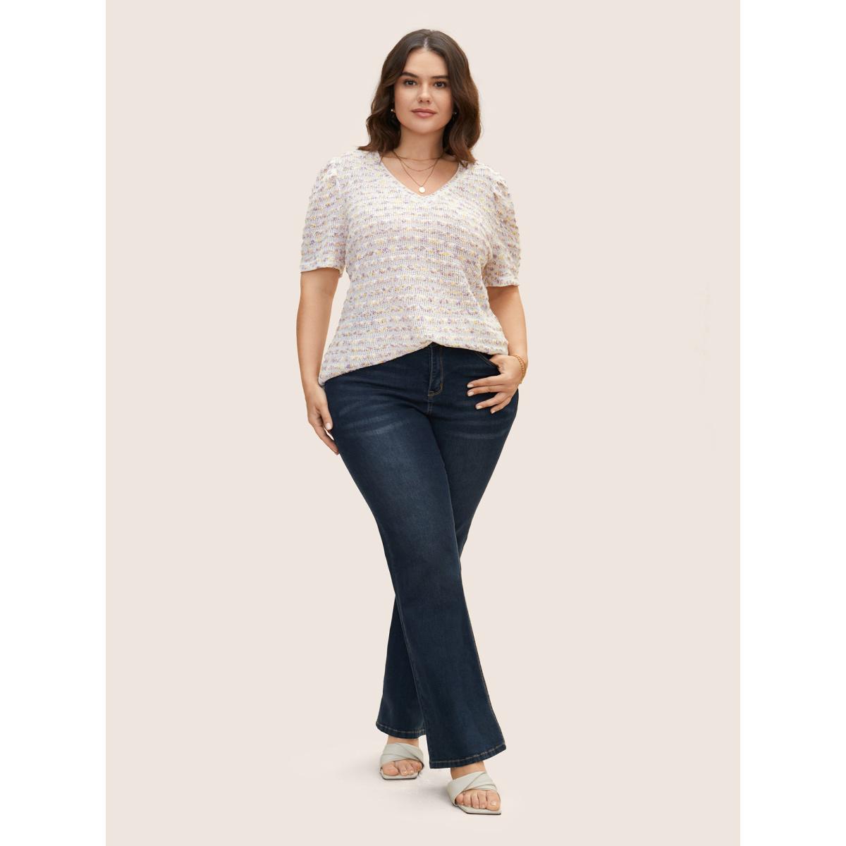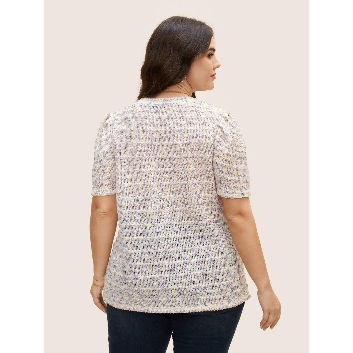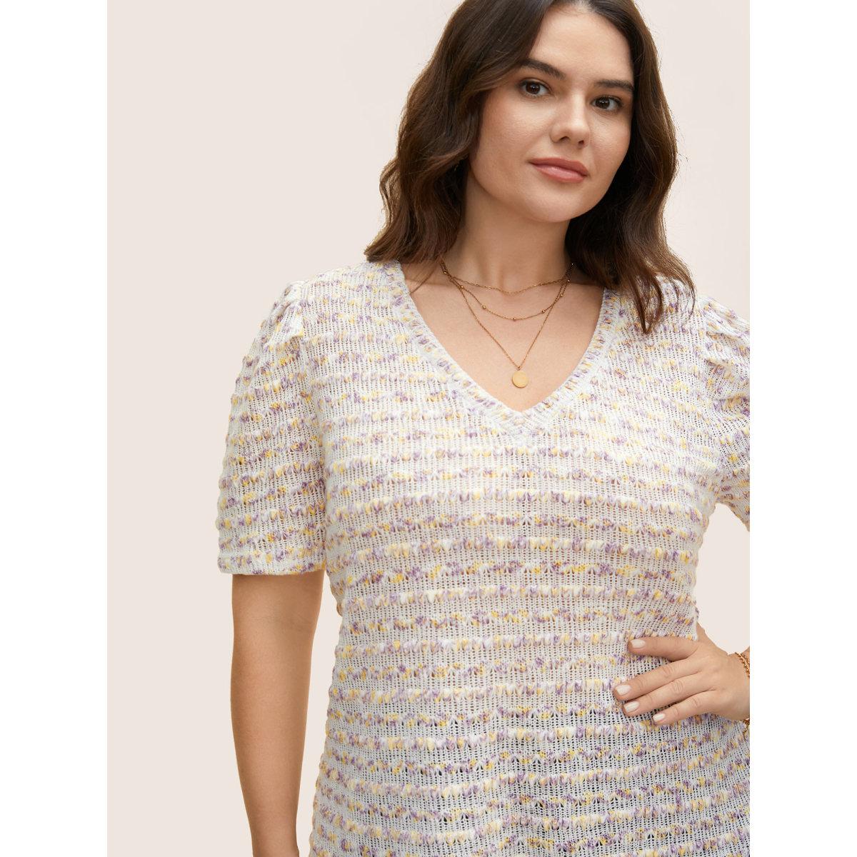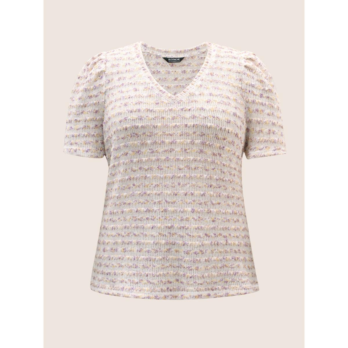 Plus Size V Neck Cut Out Striped Tie Dye T-shirt Lilac Women Elegant Contrast V-neck Everyday T-shirts BloomChic 18-20/2X Product Image