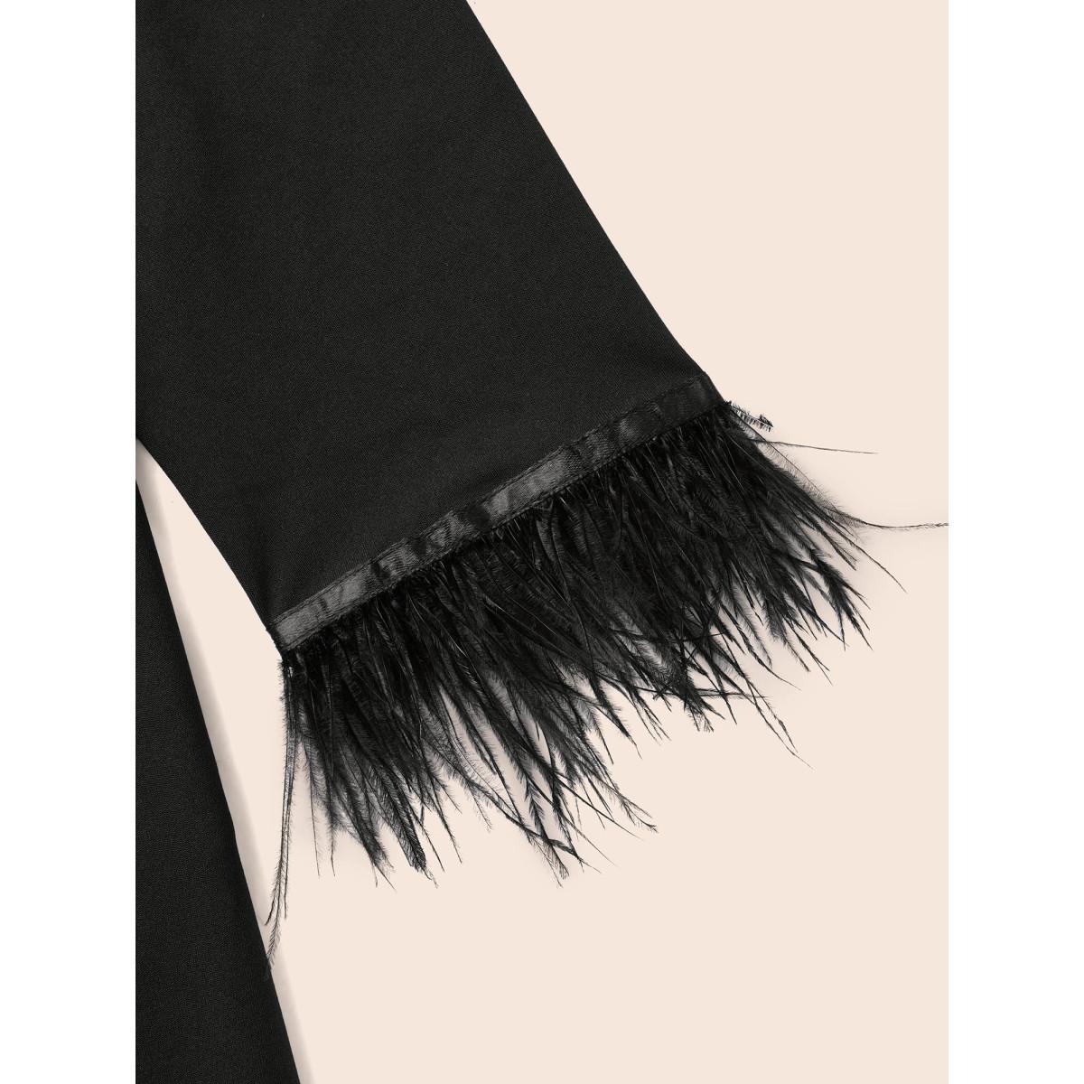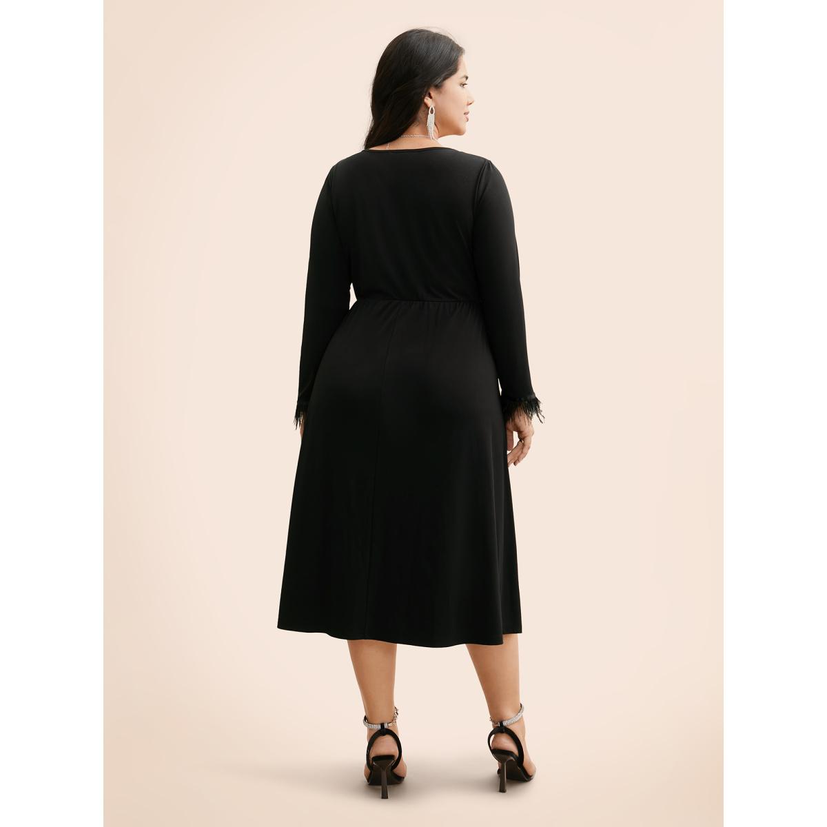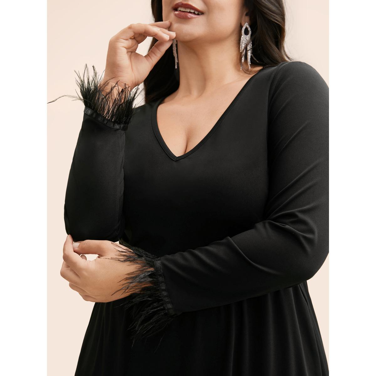 Plus Size V Neck Patchwork Fuzzy Trim Dress Black Women Cocktail Tassels Party Curvy Bloomchic 28/5X