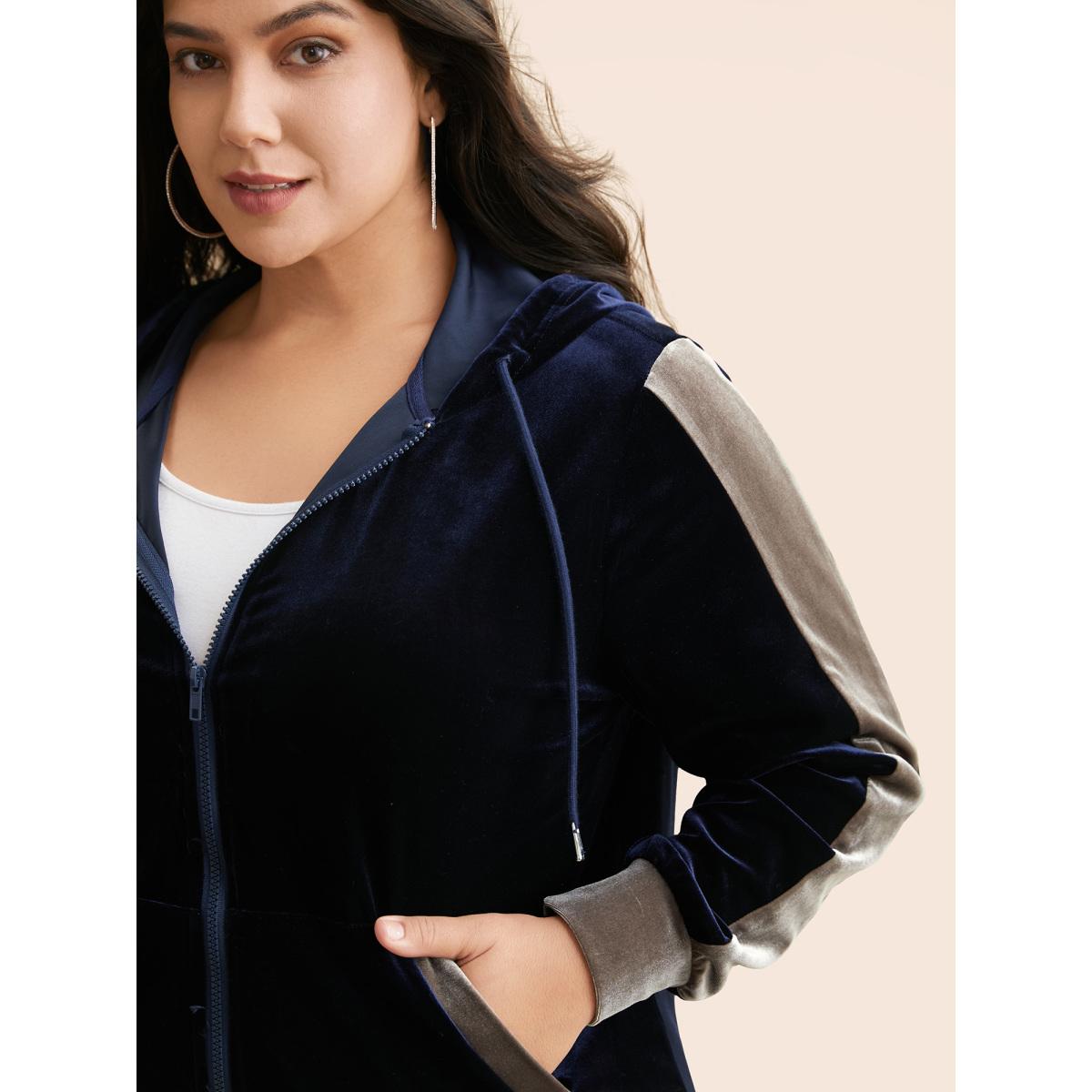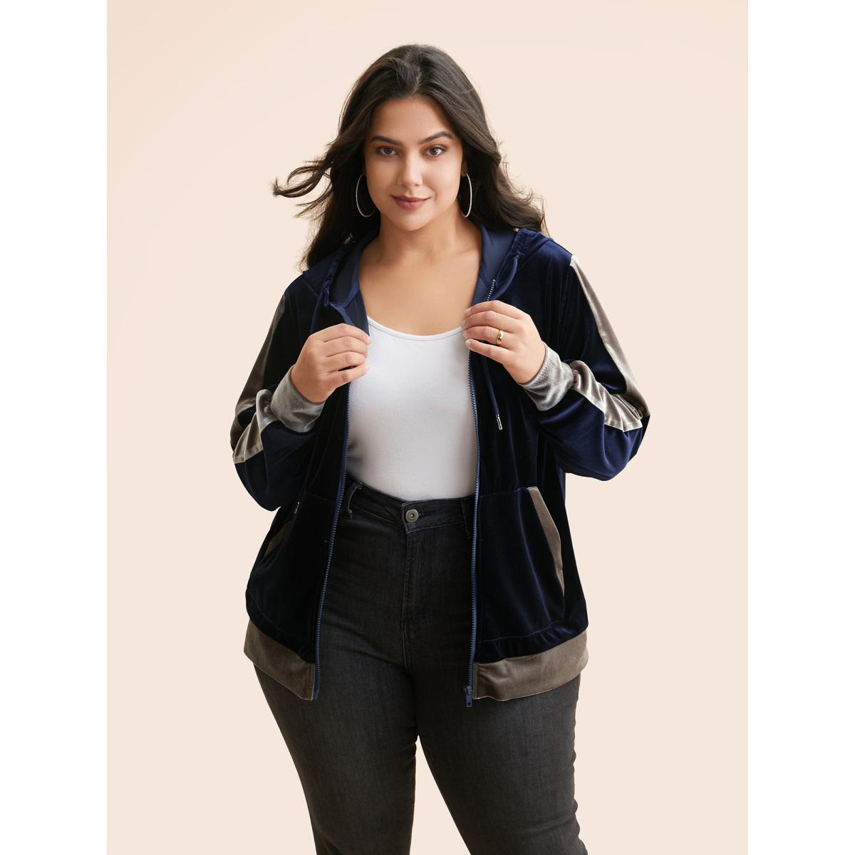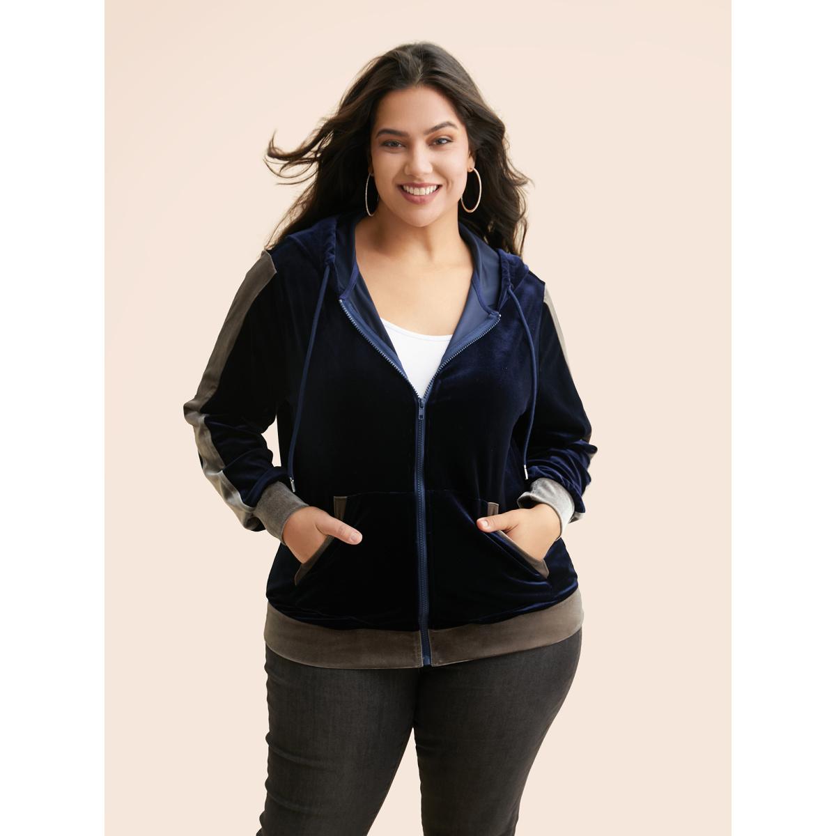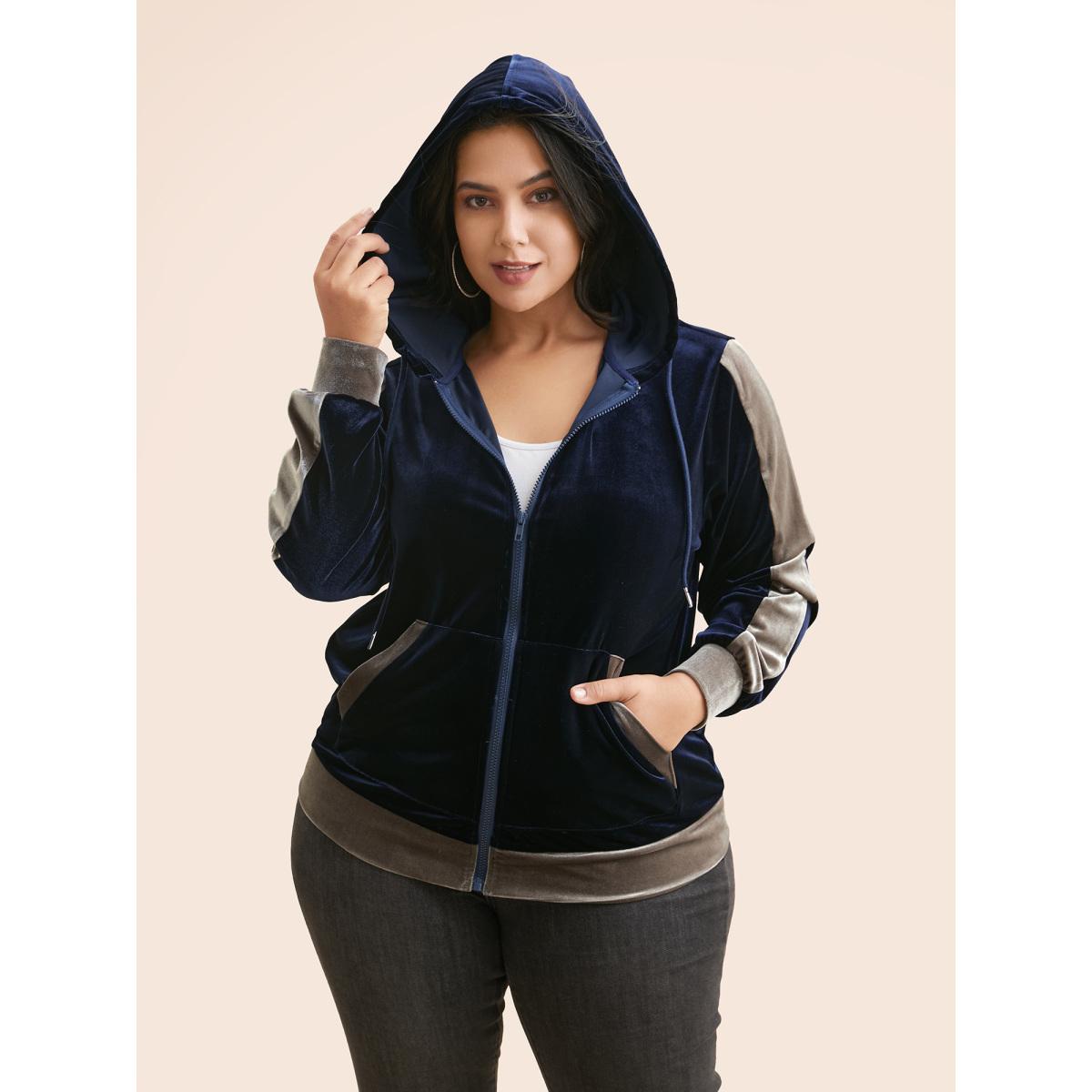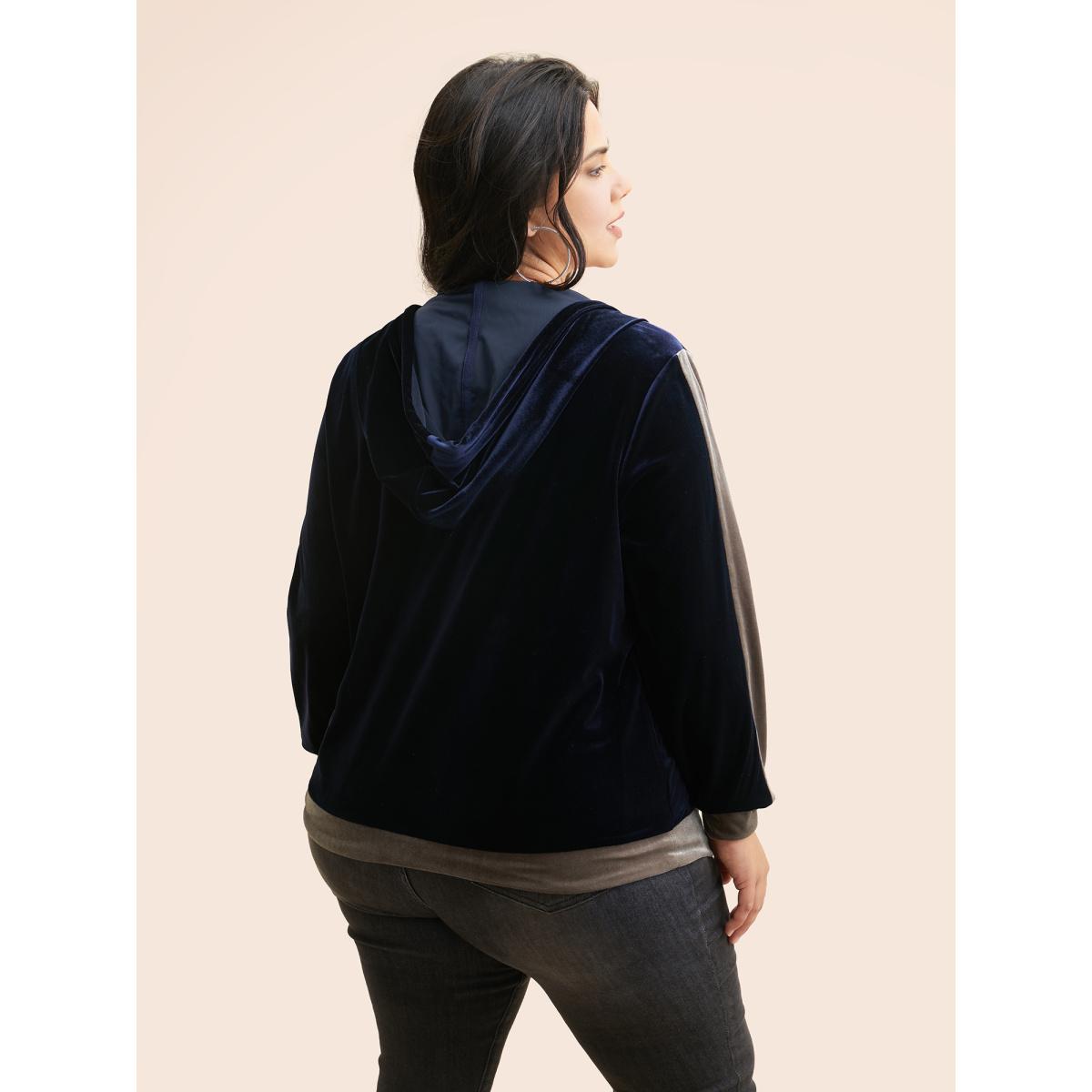 Plus Size Velvet Contrast Patchwork Hooded Sweatshirt Women Midnight Casual Contrast Hooded Everyday Sweatshirts BloomChic 12/L