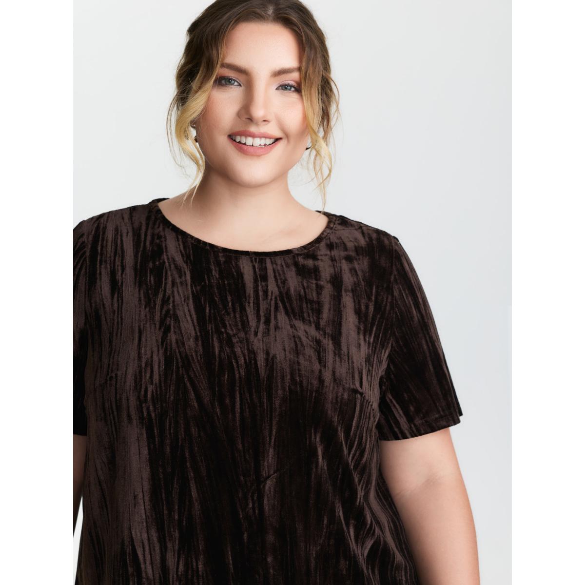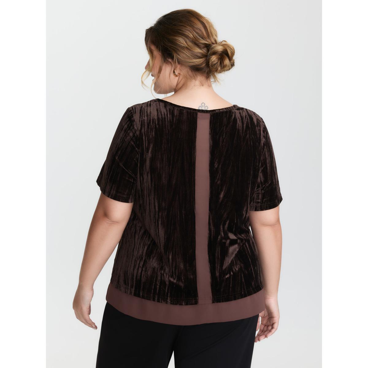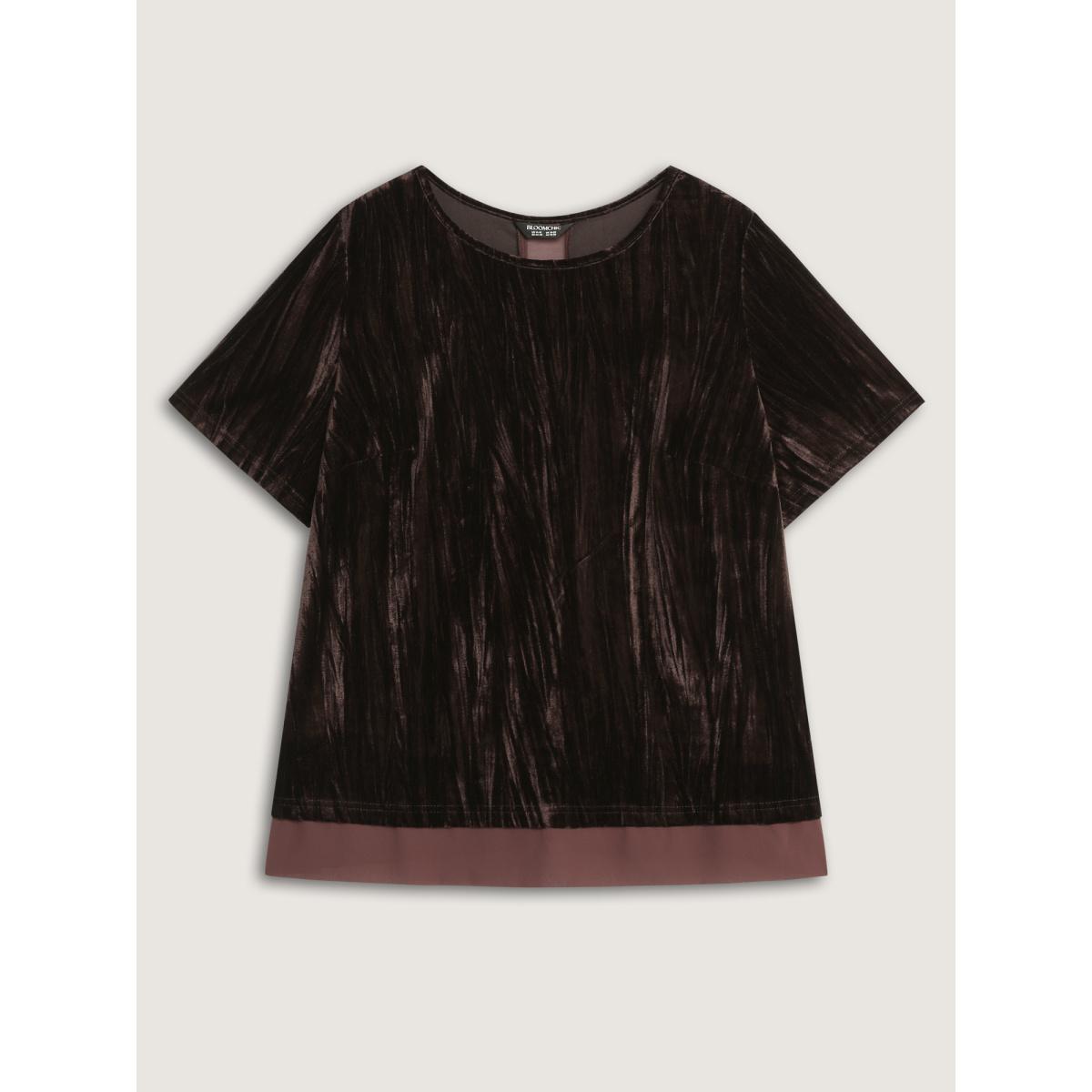Plus Size Velvet Contrast Round Neck T-Shirt DarkBrown Women Timeless Round Neck Elegant T-shirts BloomChic 28/5X Product Image