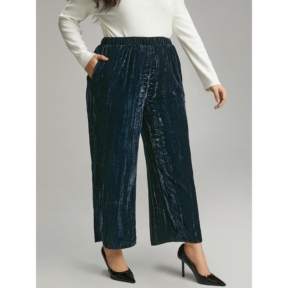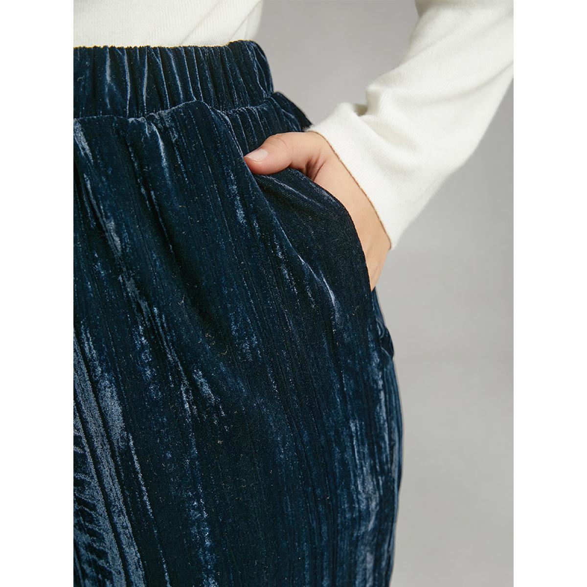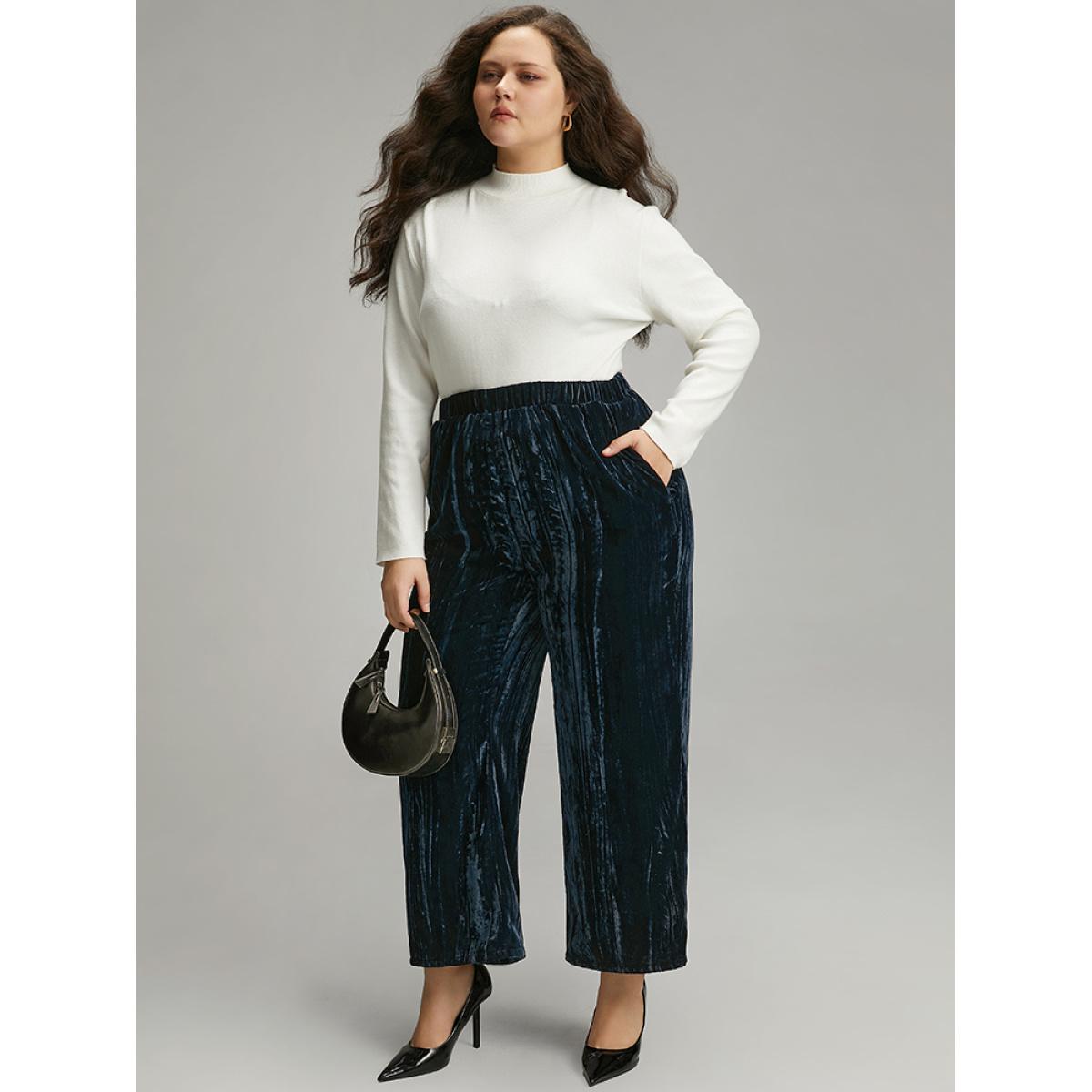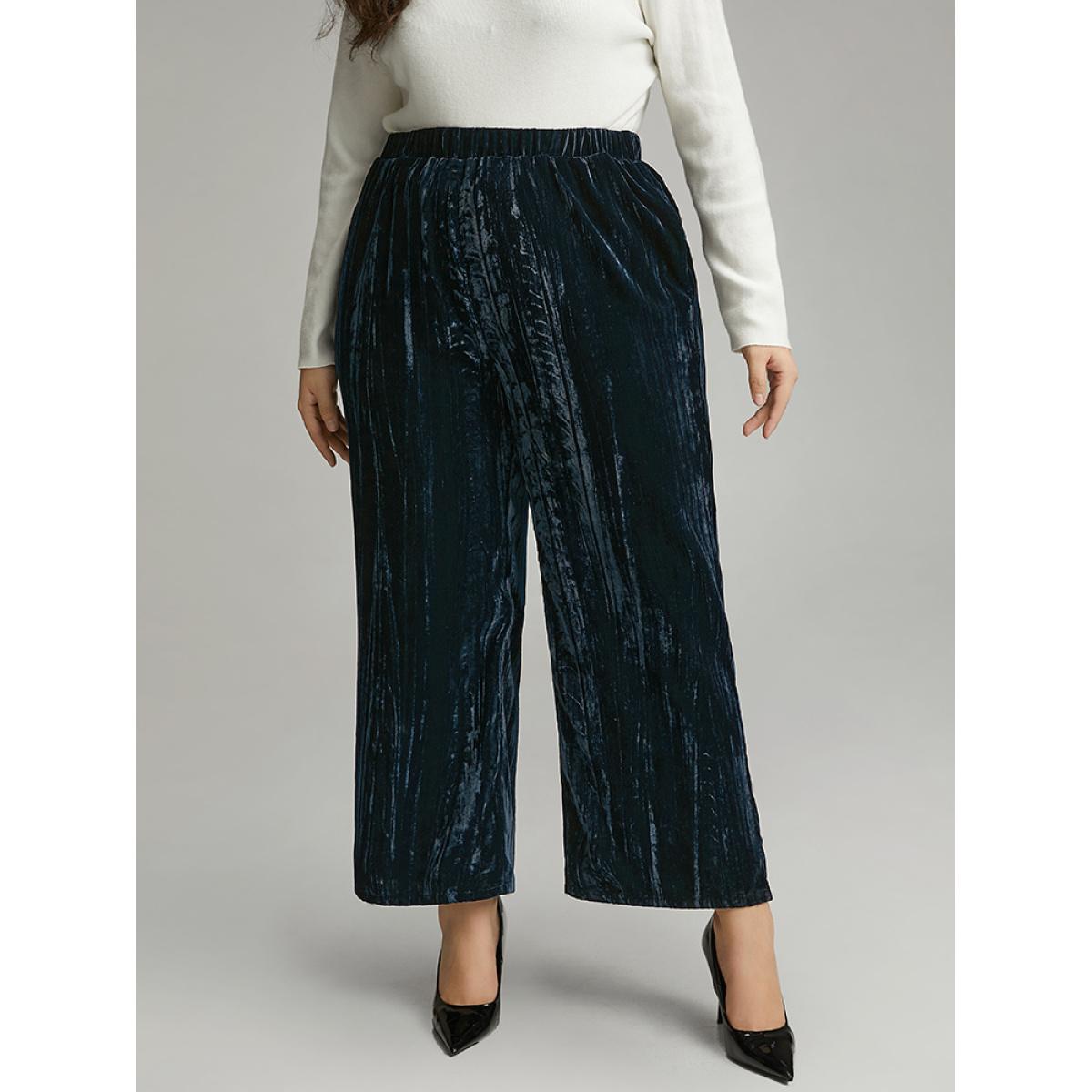Plus Size Velvet Elastic Waist Pocket Straight Leg Pants Women Indigo Elegant Straight Leg High Rise Dailywear Pants BloomChic 30/6X