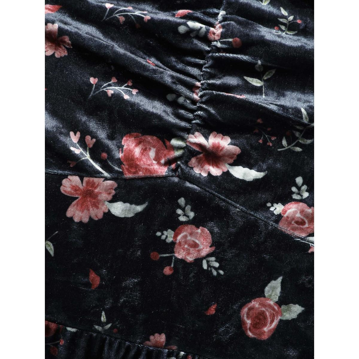 Plus Size Velvet V Neck Ditsy Floral Split Hem Dress Black Women Glamour Printed V-neck Elbow-length sleeve Curvy Midi Dress BloomChic 28/5X