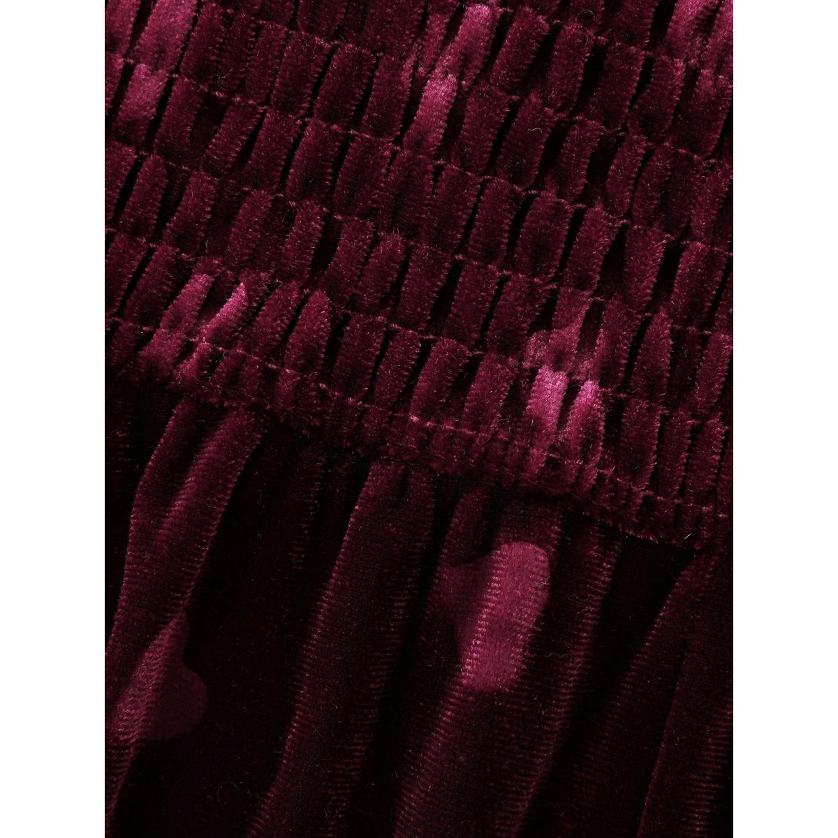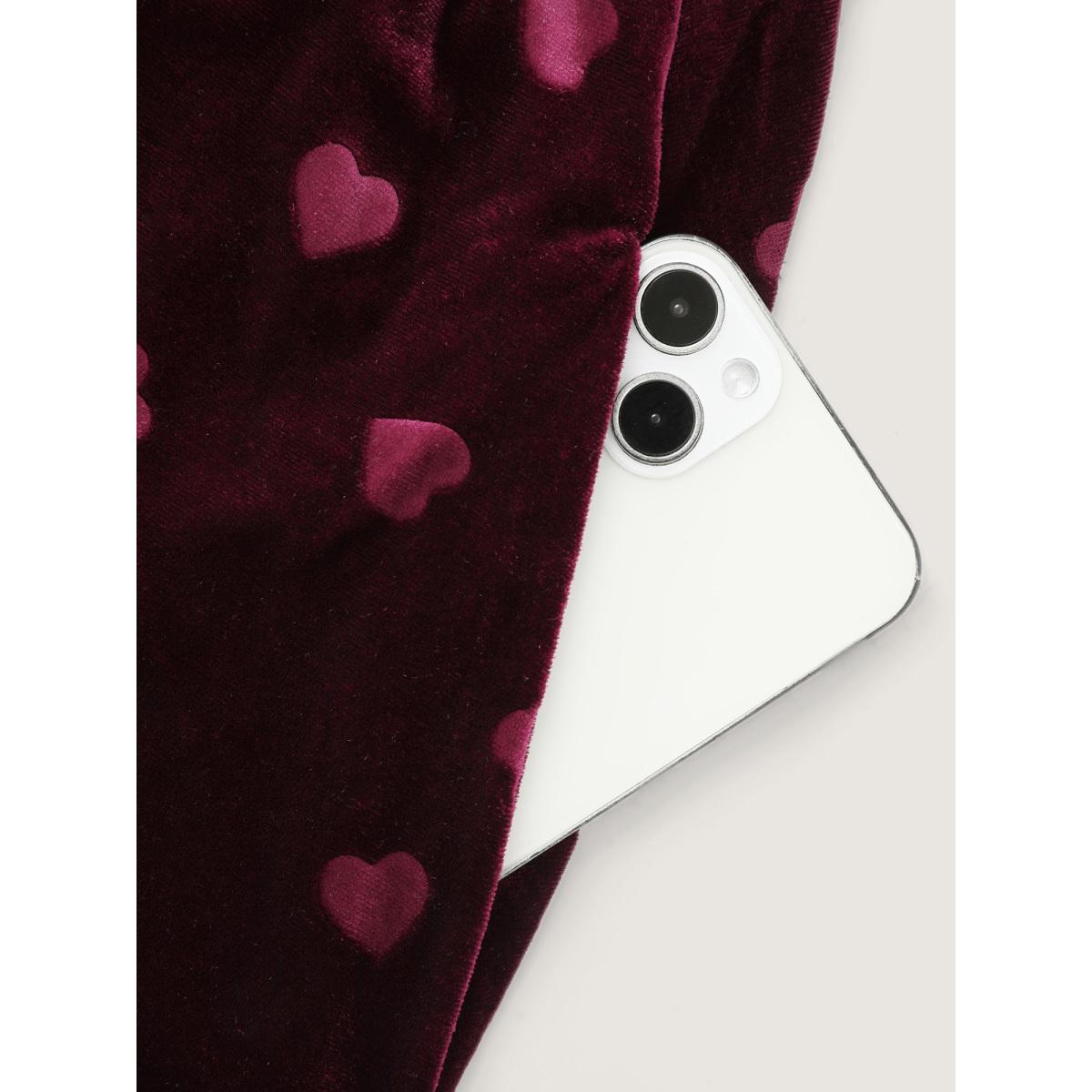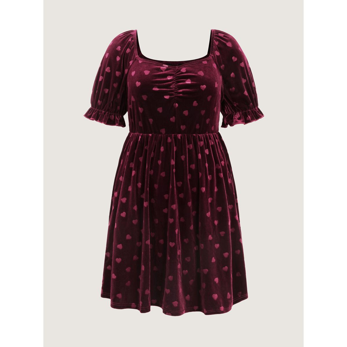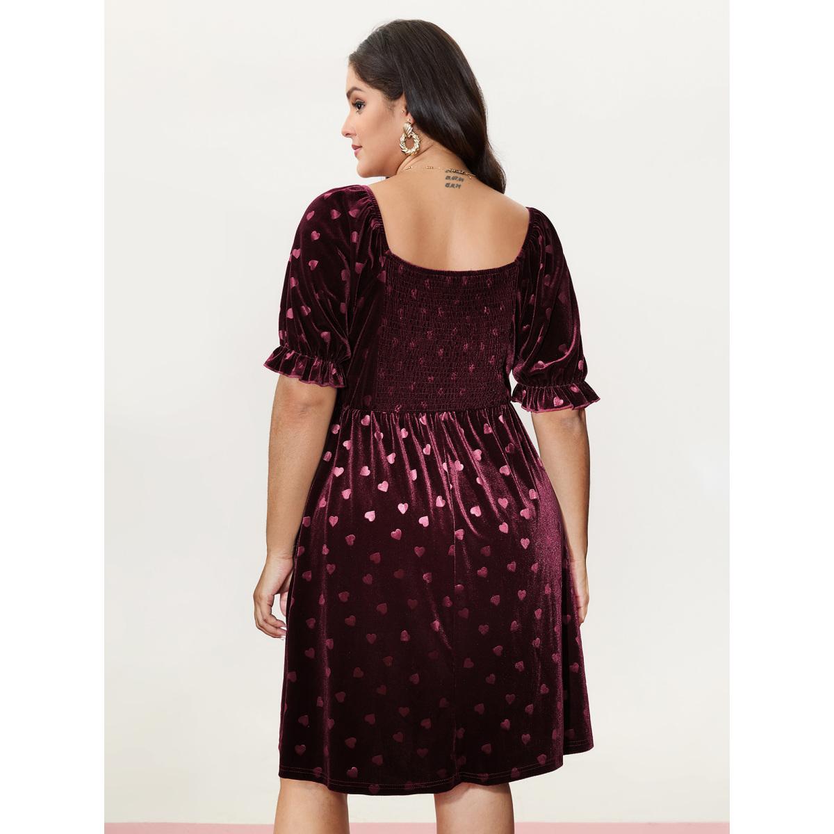 Plus Size Velvet Heart Print Puff Sleeve Midi Dress Scarlet Women Resort Texture Heart neckline Half Sleeve Curvy BloomChic 10/M