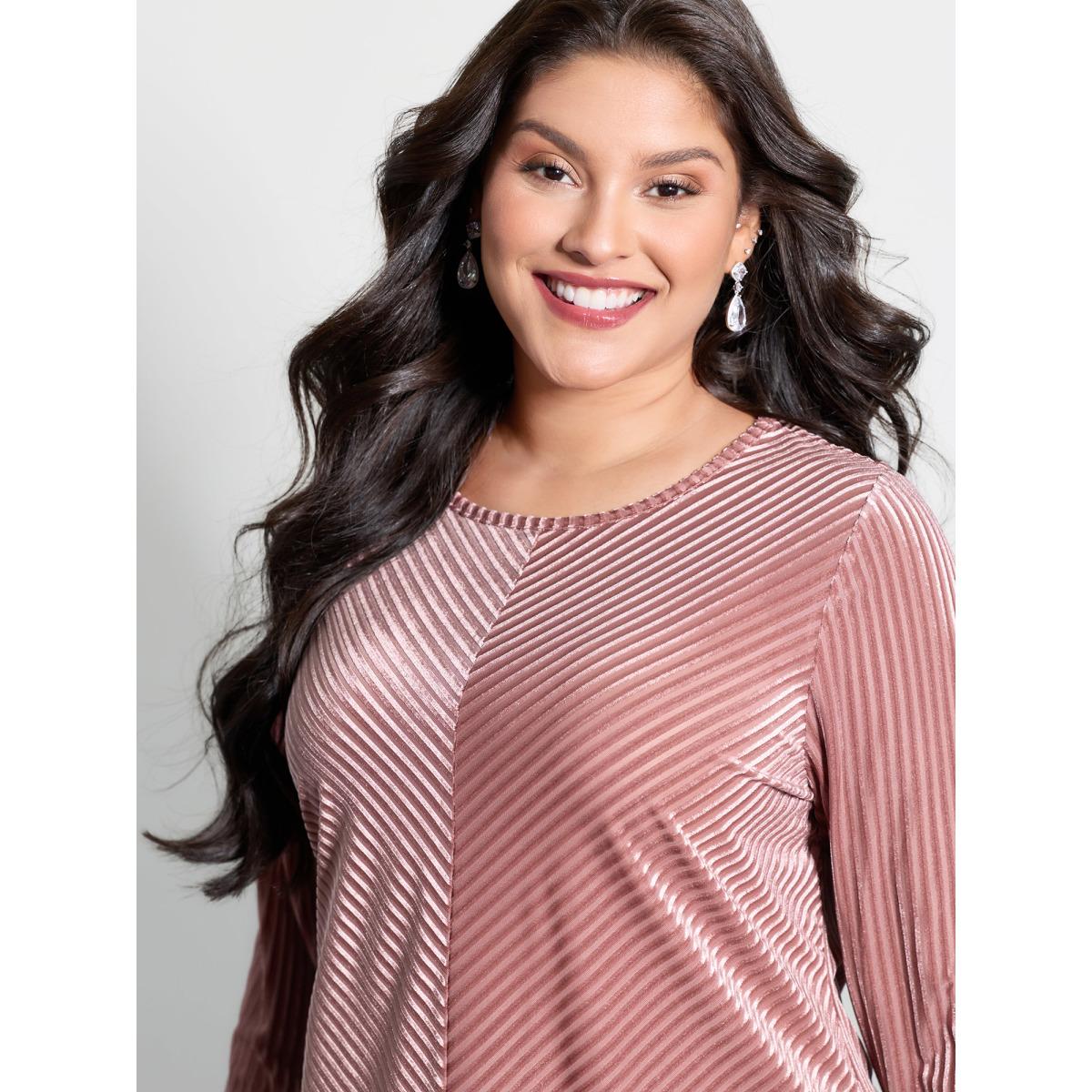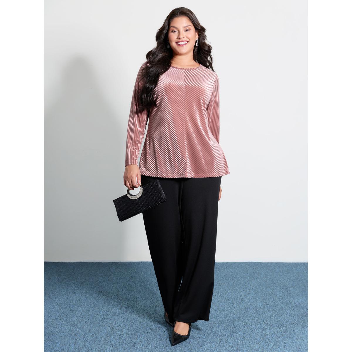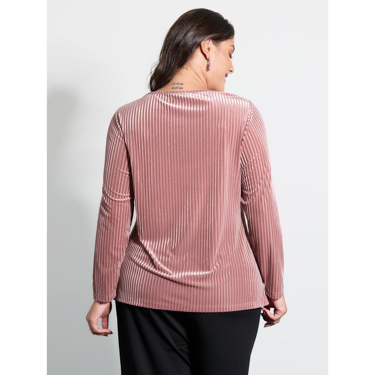 Plus Size Velvet Laser Cut Stripe Sheer T-Shirt DustyPink Women Party&Cocktail Round Neck Party T-shirts BloomChic 30/6X