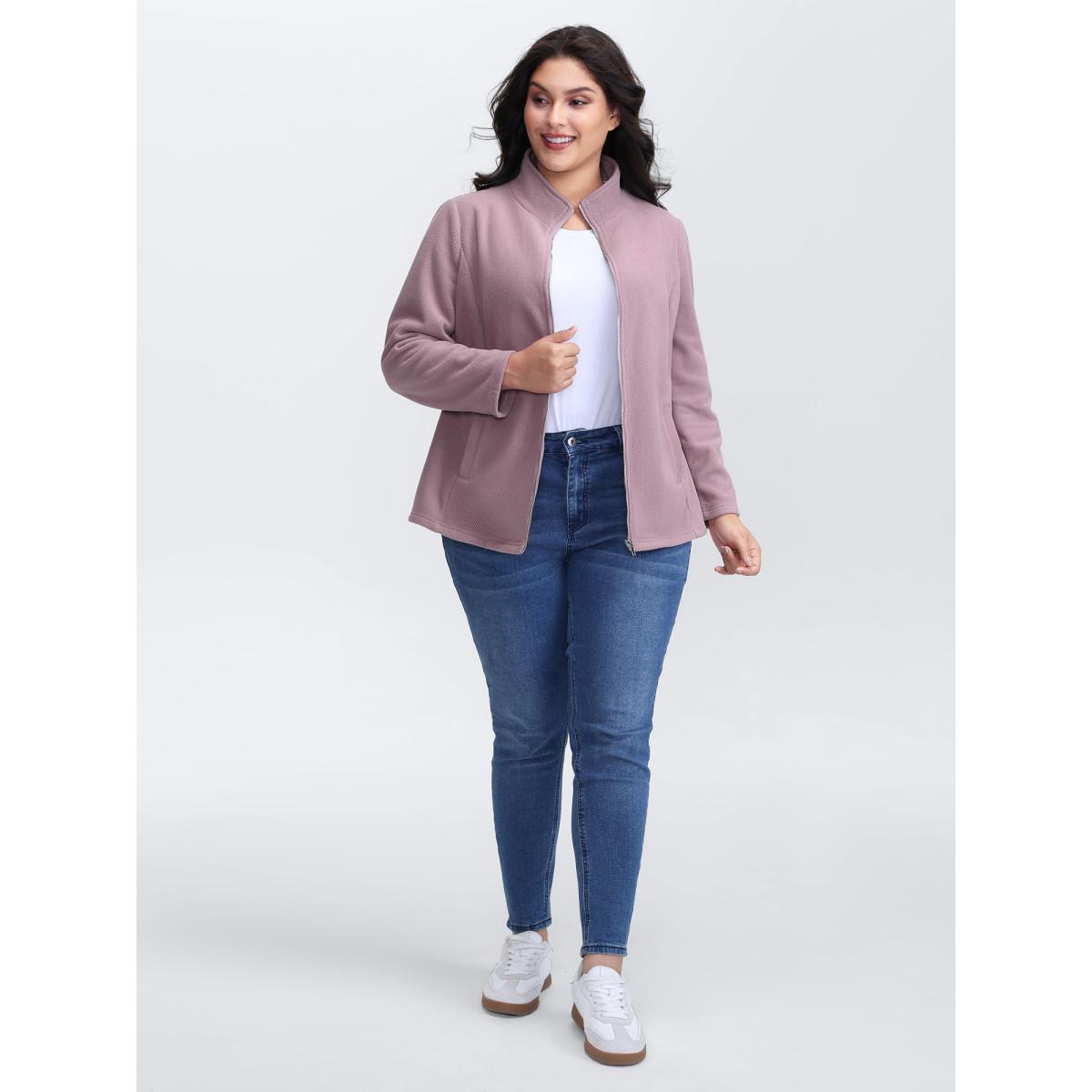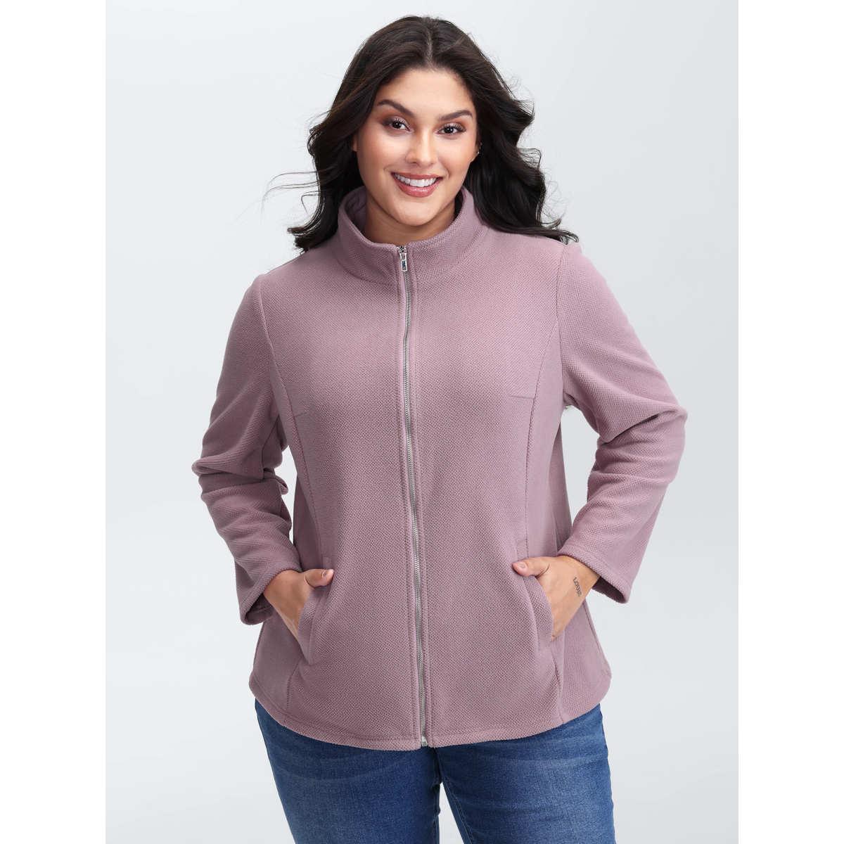 Plus Size Velvety-Feel Pockets Zipper Jacket Women Lilac Leisure Ladies Casual Winter Coats BloomChic 10/M
