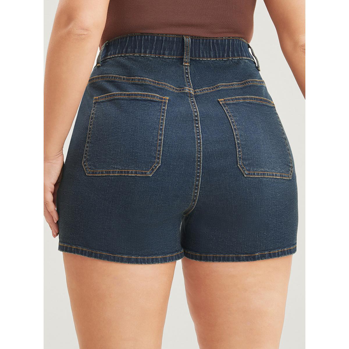 Plus Size Very Stretchy High Rise Dark Wash Denim Shorts Women Indigo Casual Plain High stretch Slanted pocket Jeans BloomChic 16/1X