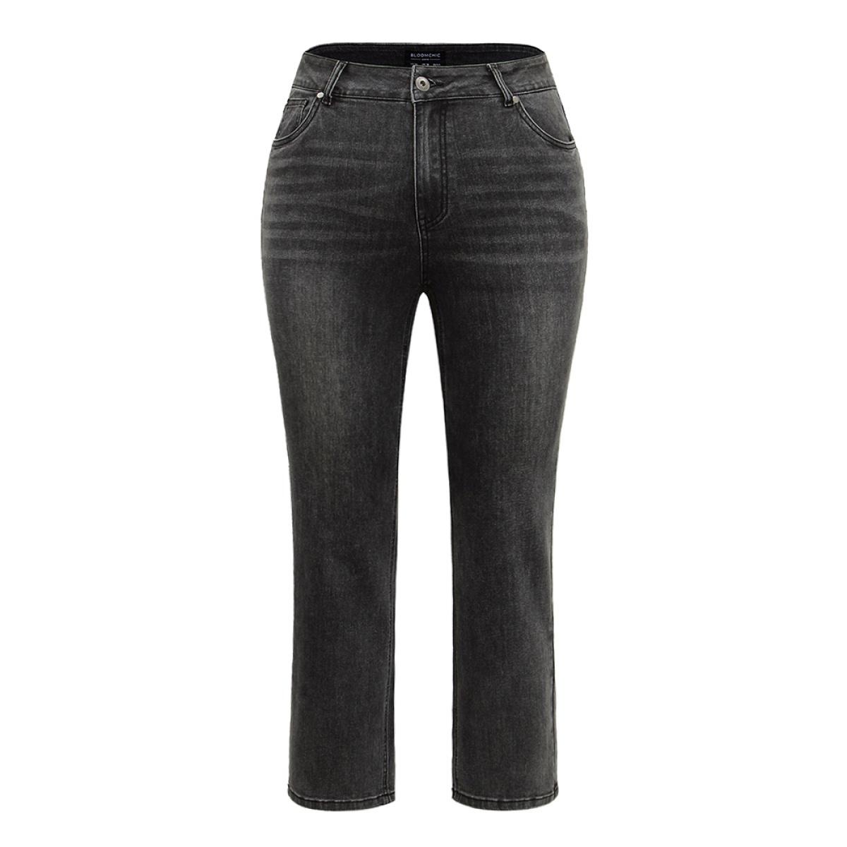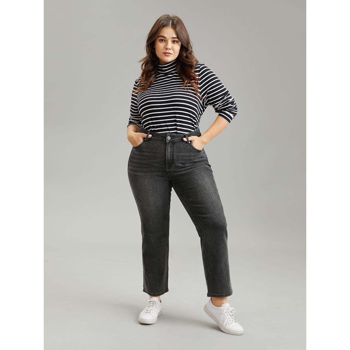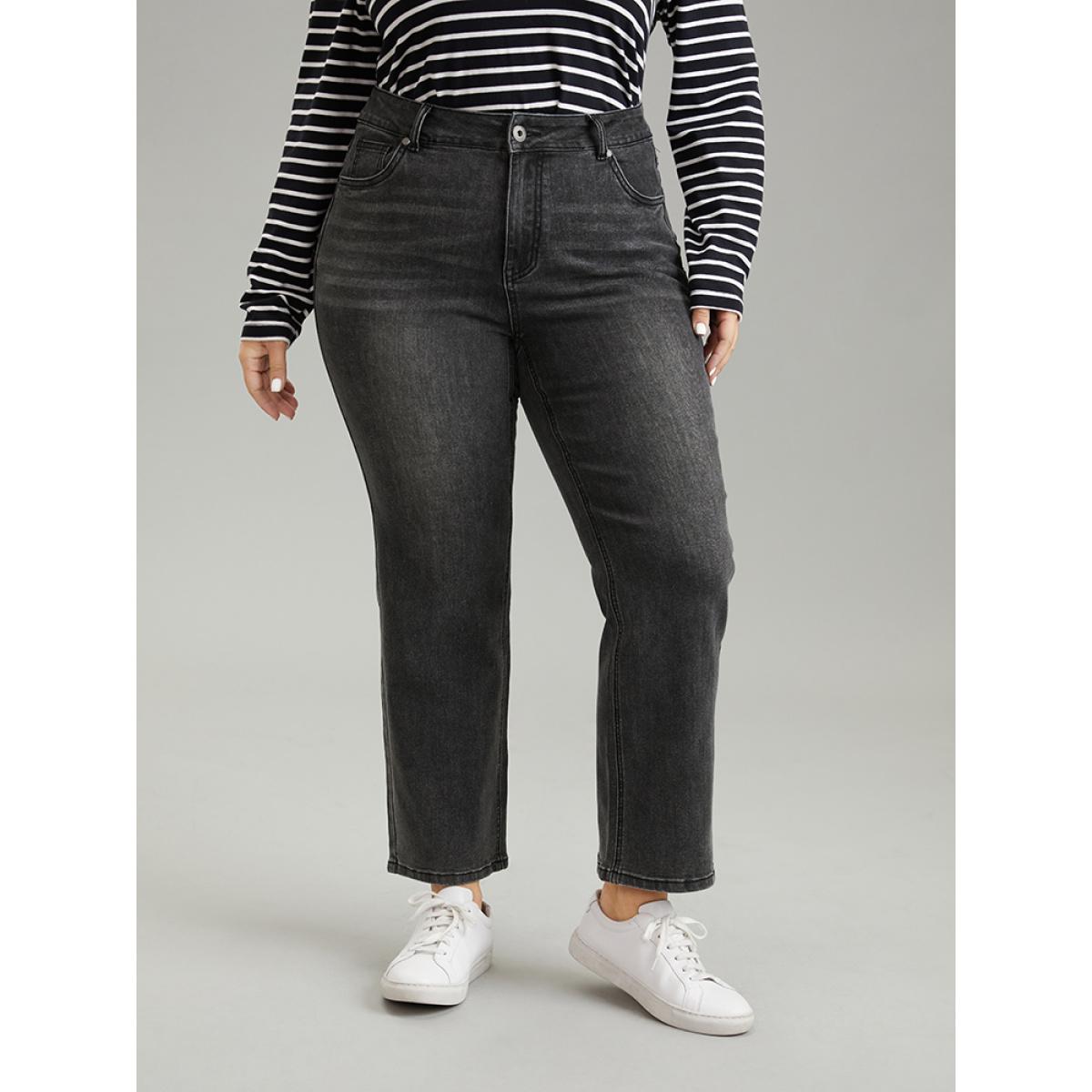 Plus Size Vintage Black Wash Straight Leg Jeans Women DimGray Casual Plain Plain High stretch Pocket Jeans BloomChic 10/M