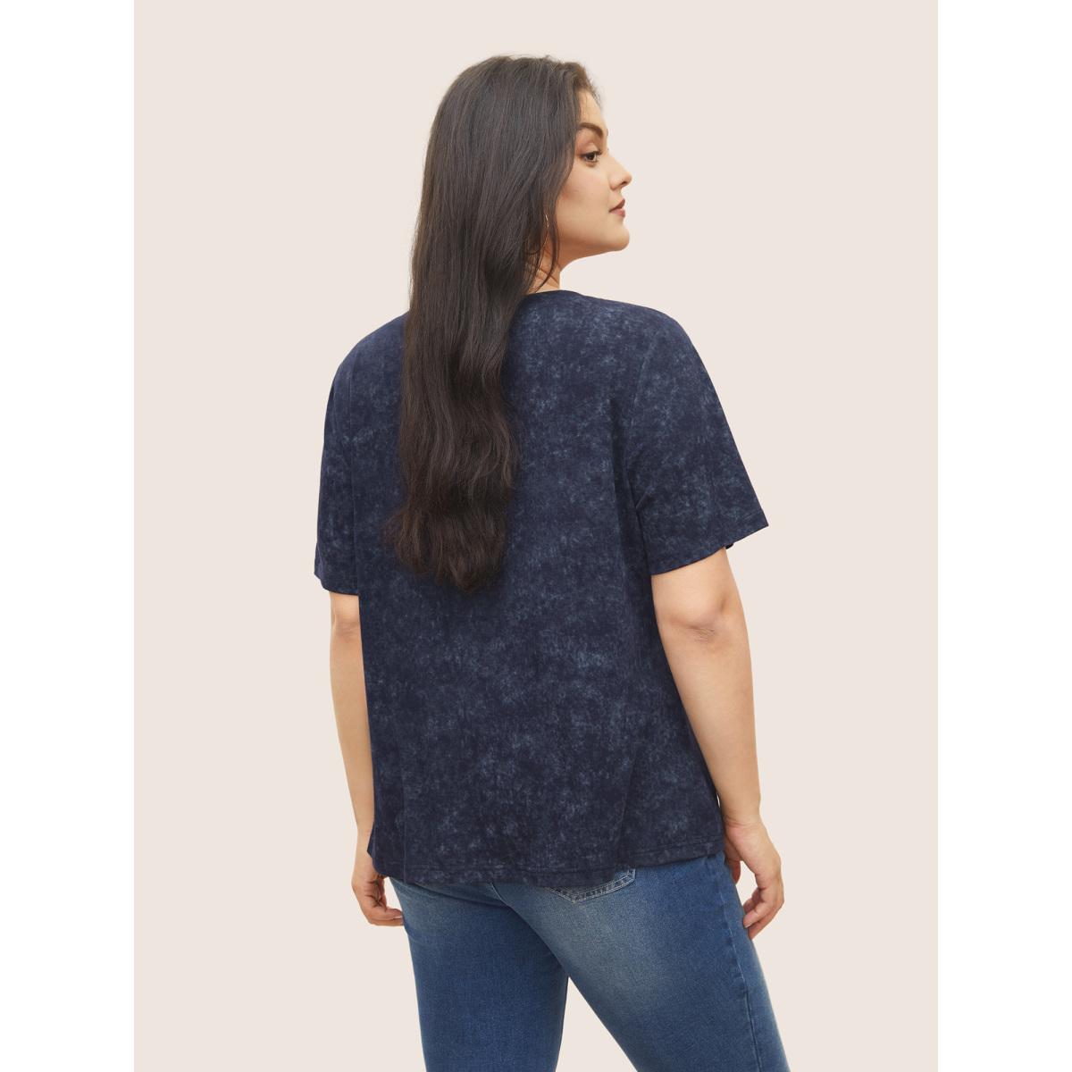 Plus Size Round Neck Floral Print Fitted T-Shirt Indigo Women Casual Non Natural Flowers Round Neck Everyday T-shirts BloomChic 18-20/2X