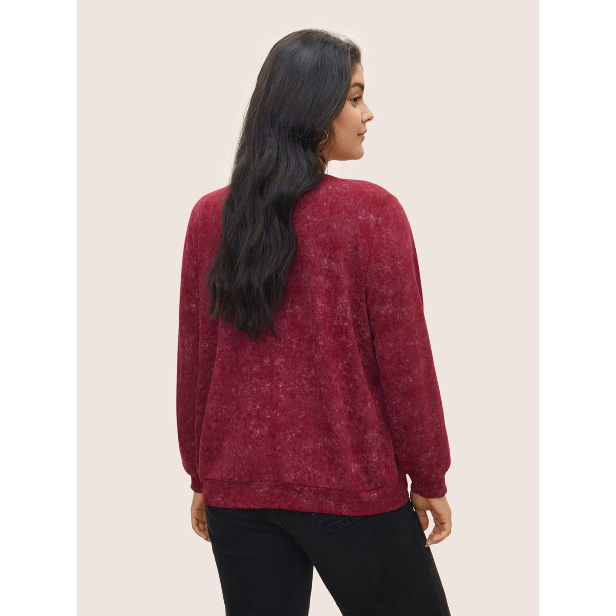 Plus Size Plain Textured Slightly Stretchy Sweatshirt Women Burgundy Casual Texture Round Neck Everyday Sweatshirts BloomChic 12/L