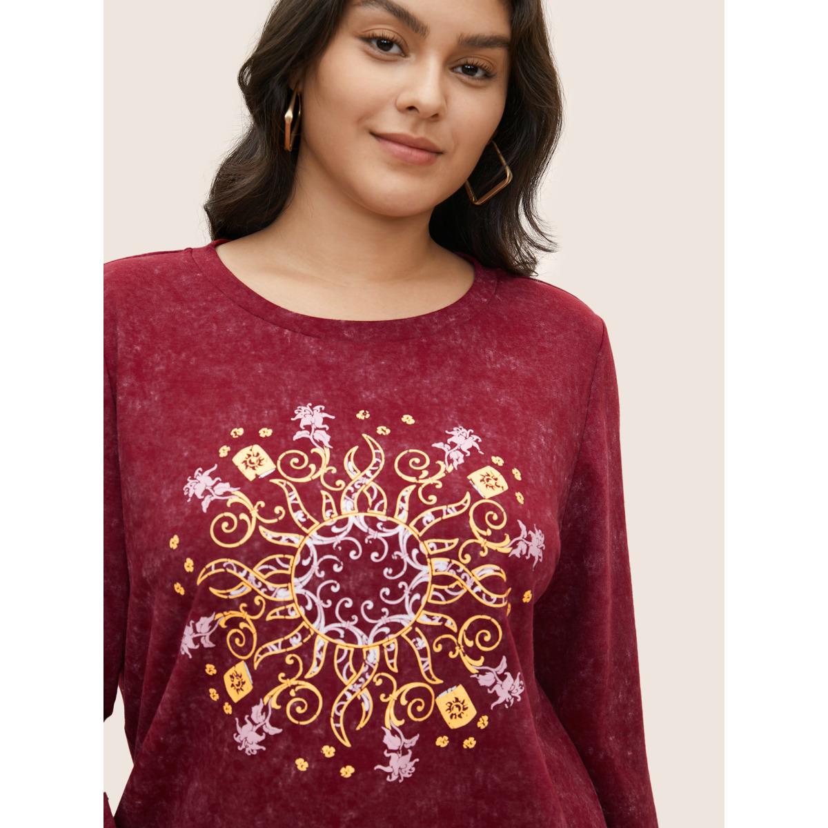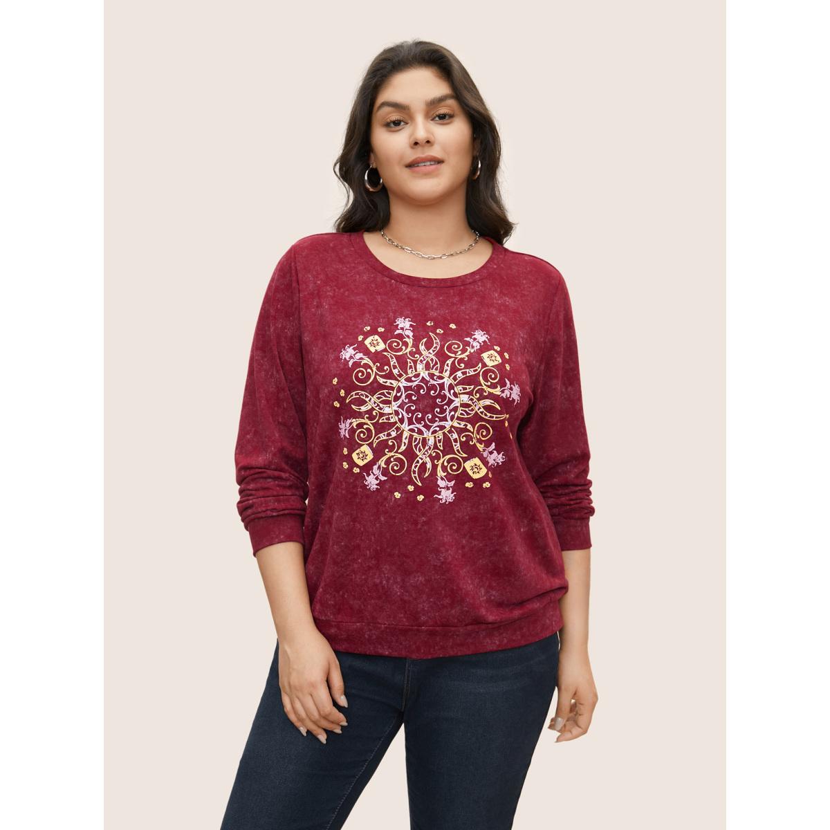 Plus Size Vintage Horoscope Print Round Neck Sweatshirt Women Burgundy Casual Non Everyday Sweatshirts BloomChic 14-16/1X
