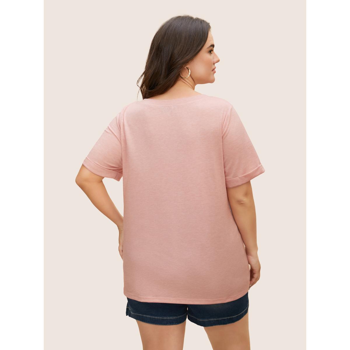 Plus Size Vintage Rainbow Print Crew Neck T-shirt Nudepink Women Casual Positive slogan Round Neck Everyday T-shirts BloomChic 30/6X
