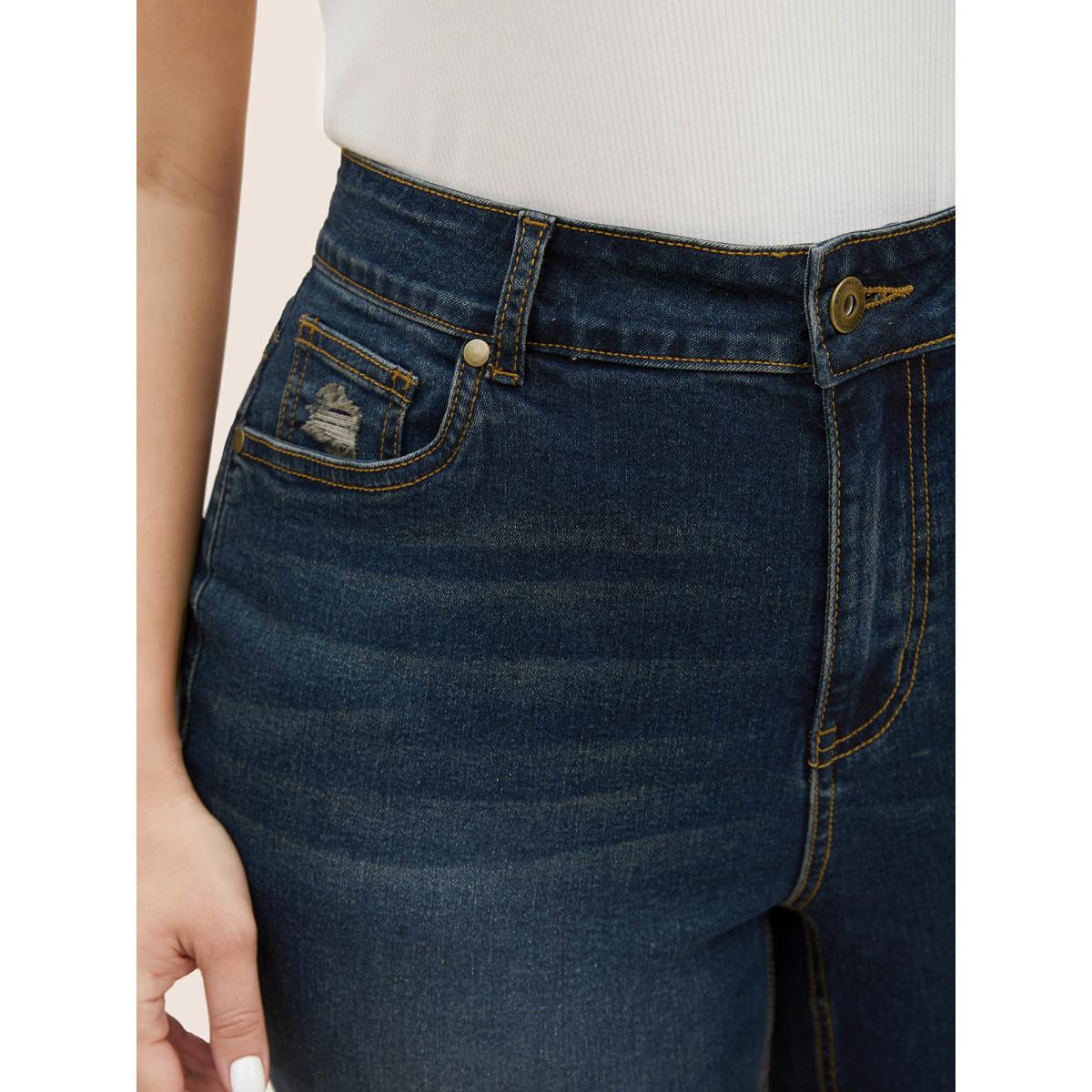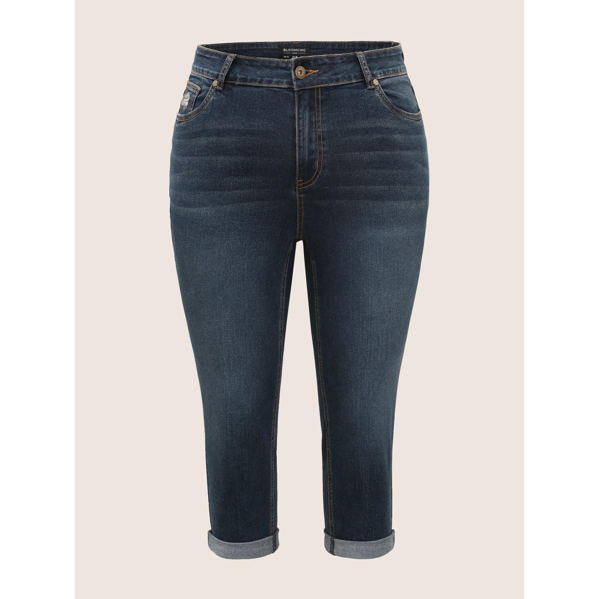 Plus Size Vintage Slanted Pocket Roll Hem Jeans Women DarkBlue Casual High stretch Slanted pocket Jeans BloomChic 22/3X Product Image