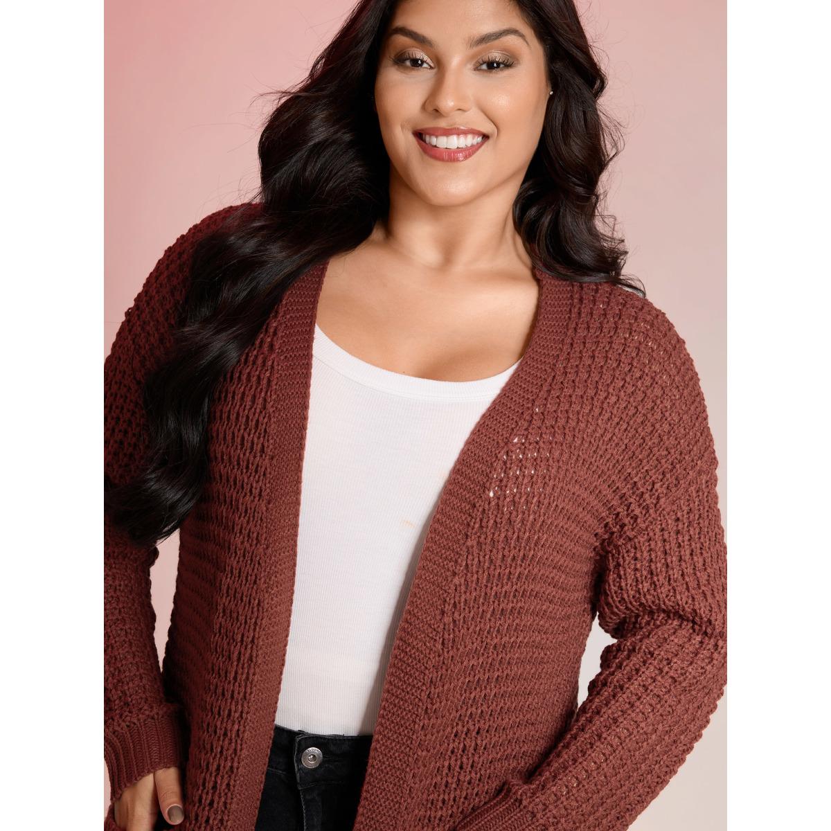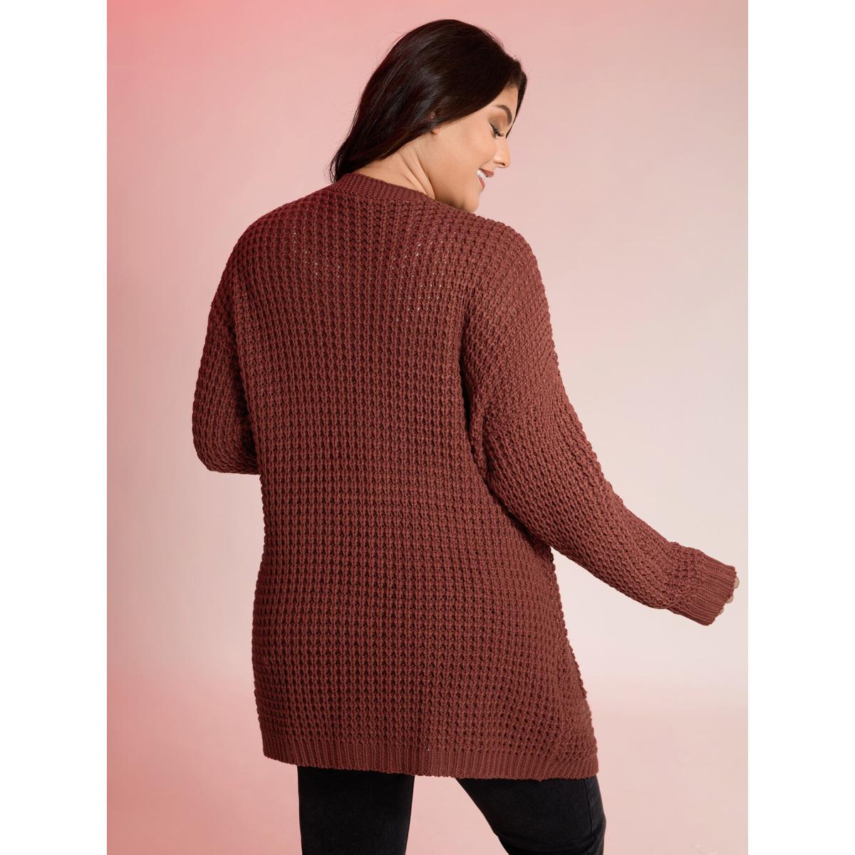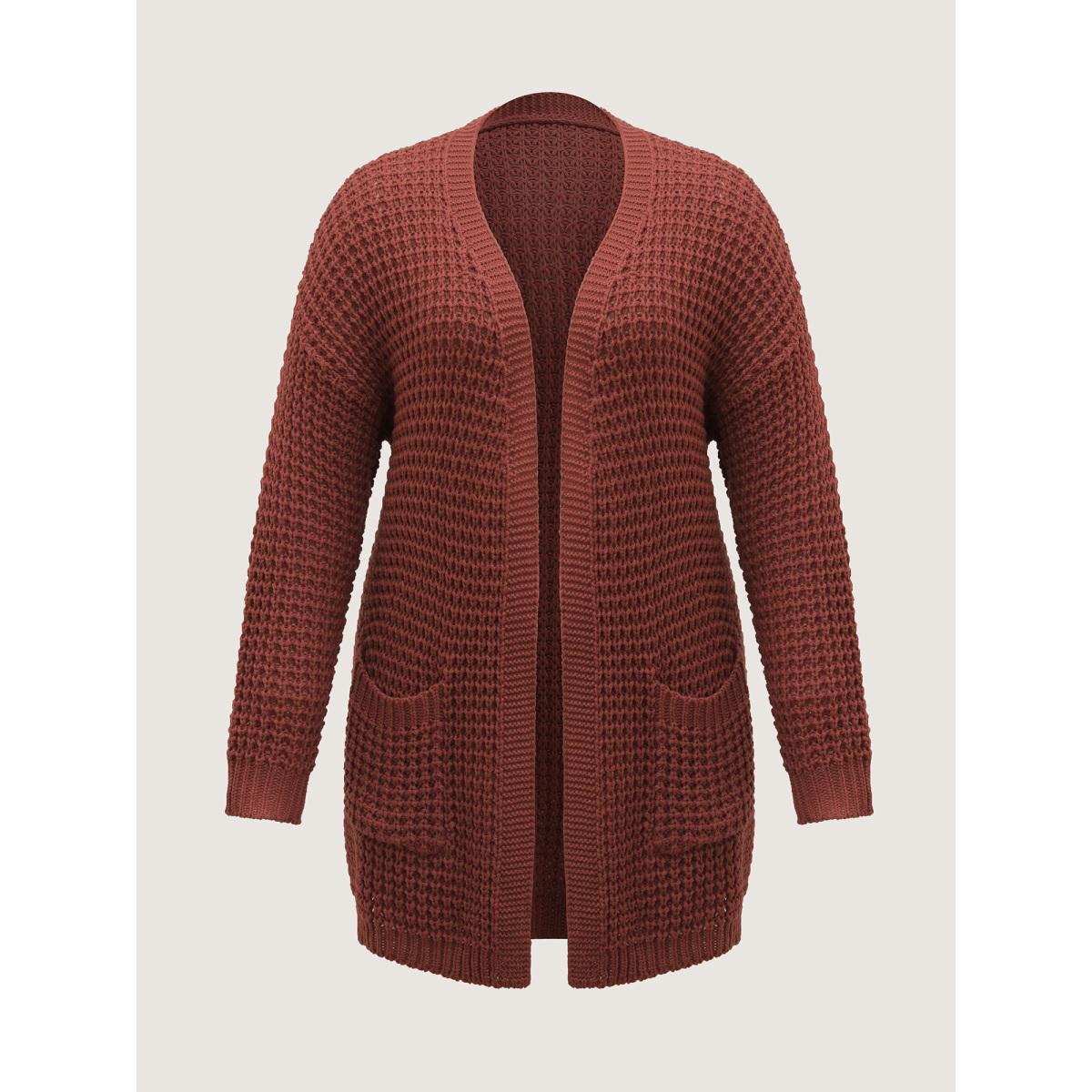 Plus Size Vintage Textured Pockets Knit Cardigan Rust Women Leisure Loose Long Sleeve Casual Cardigans BloomChic 12/L