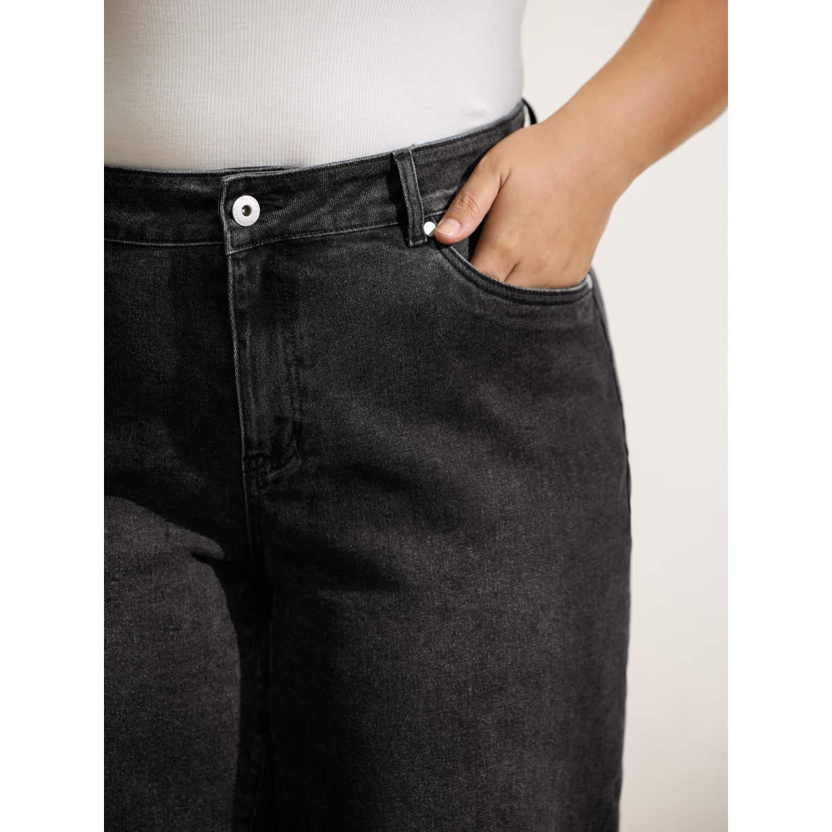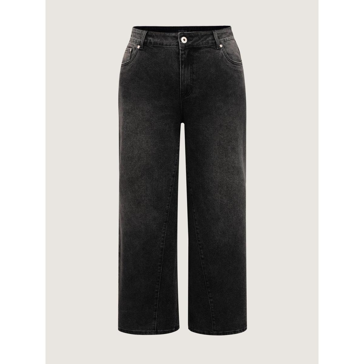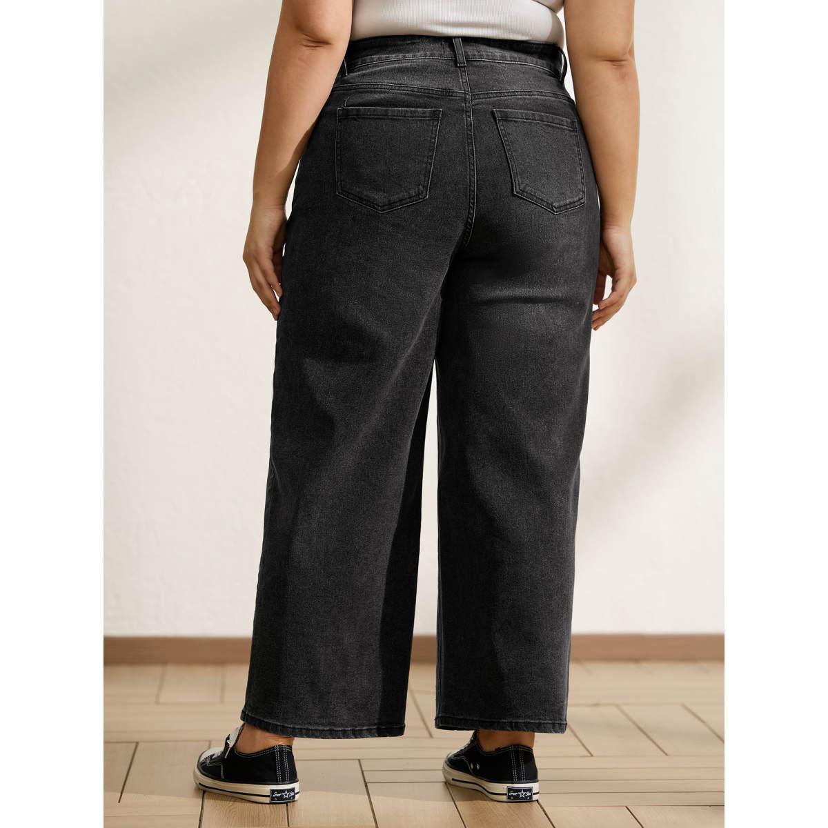 Plus Size Vintage Wash Stretchy Straight-Leg Jeans Women Denimblack Leisure Non Medium stretch Slanted pocket Jeans BloomChic 30/6X