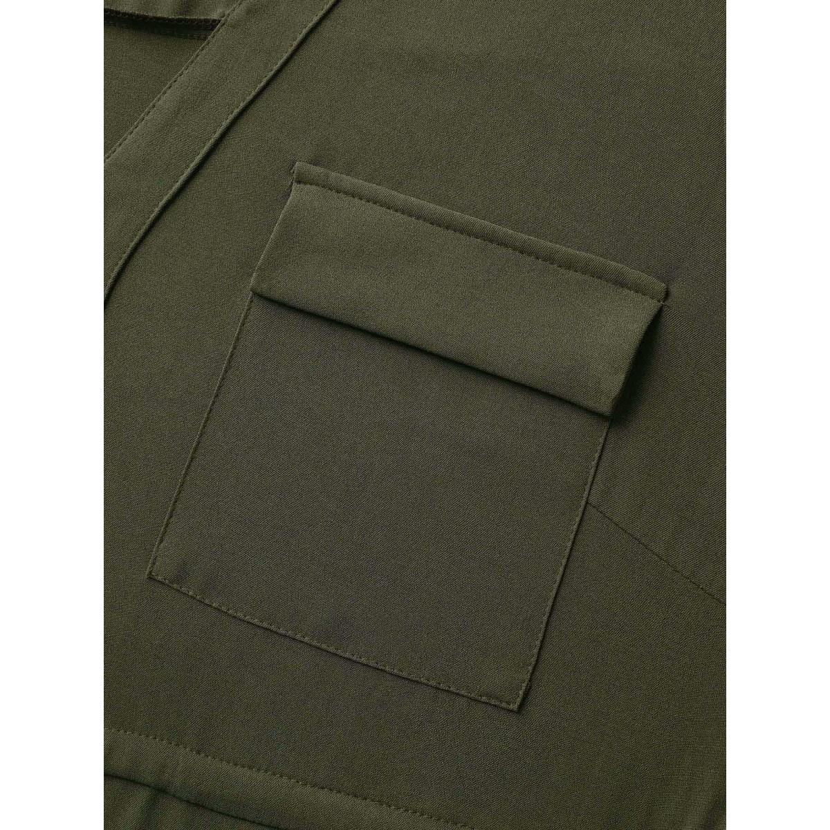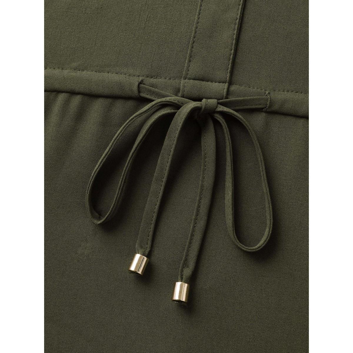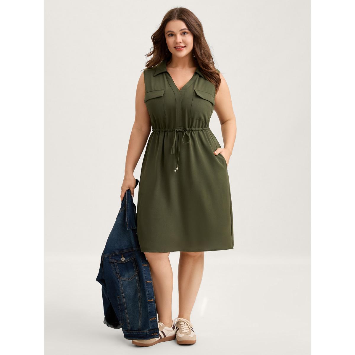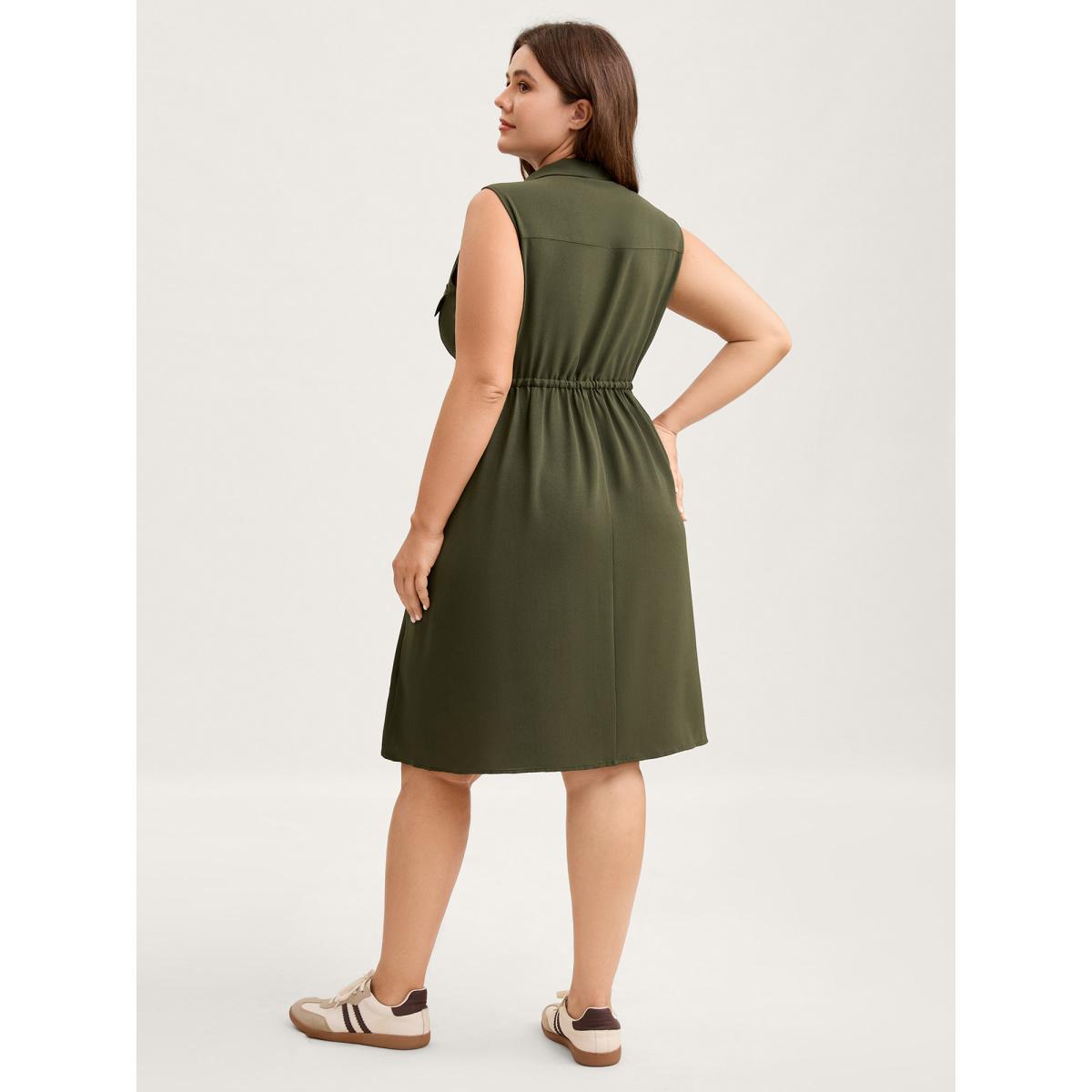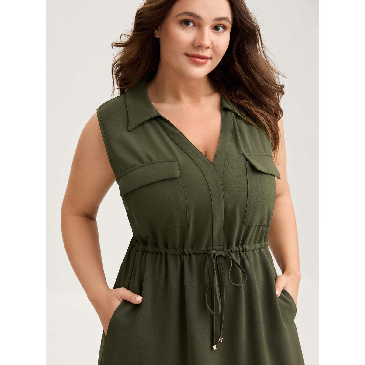 Plus Size Waist Drawstring Pockets Solid Midi Dress ArmyGreen Women Leisure Drawstring Polo Sleeveless Curvy BloomChic 26/4X
