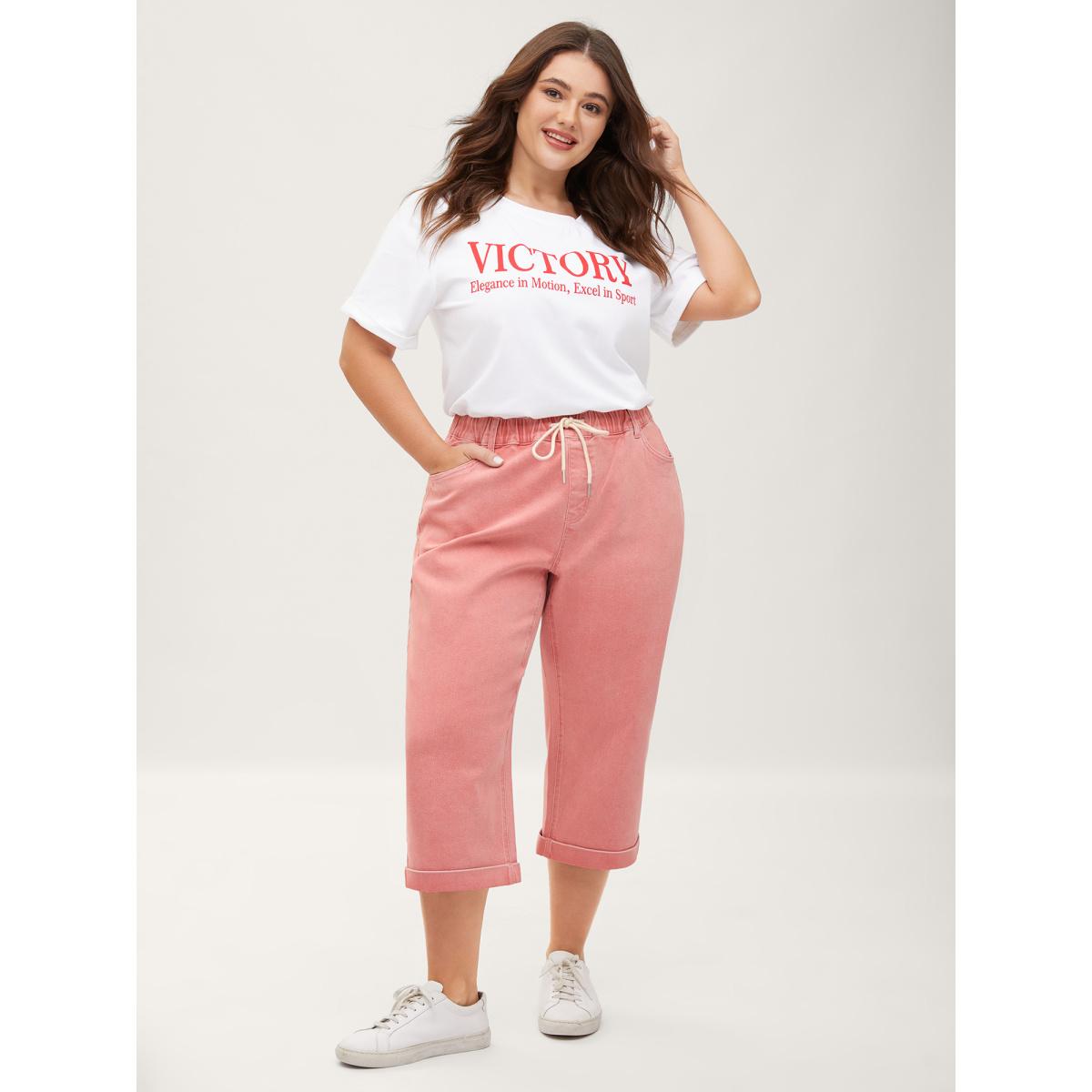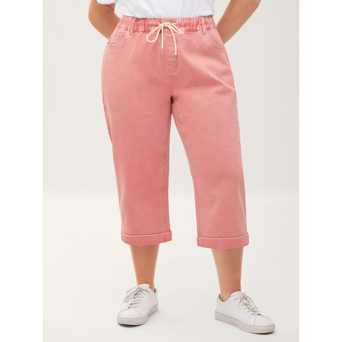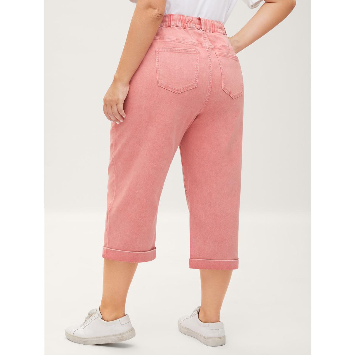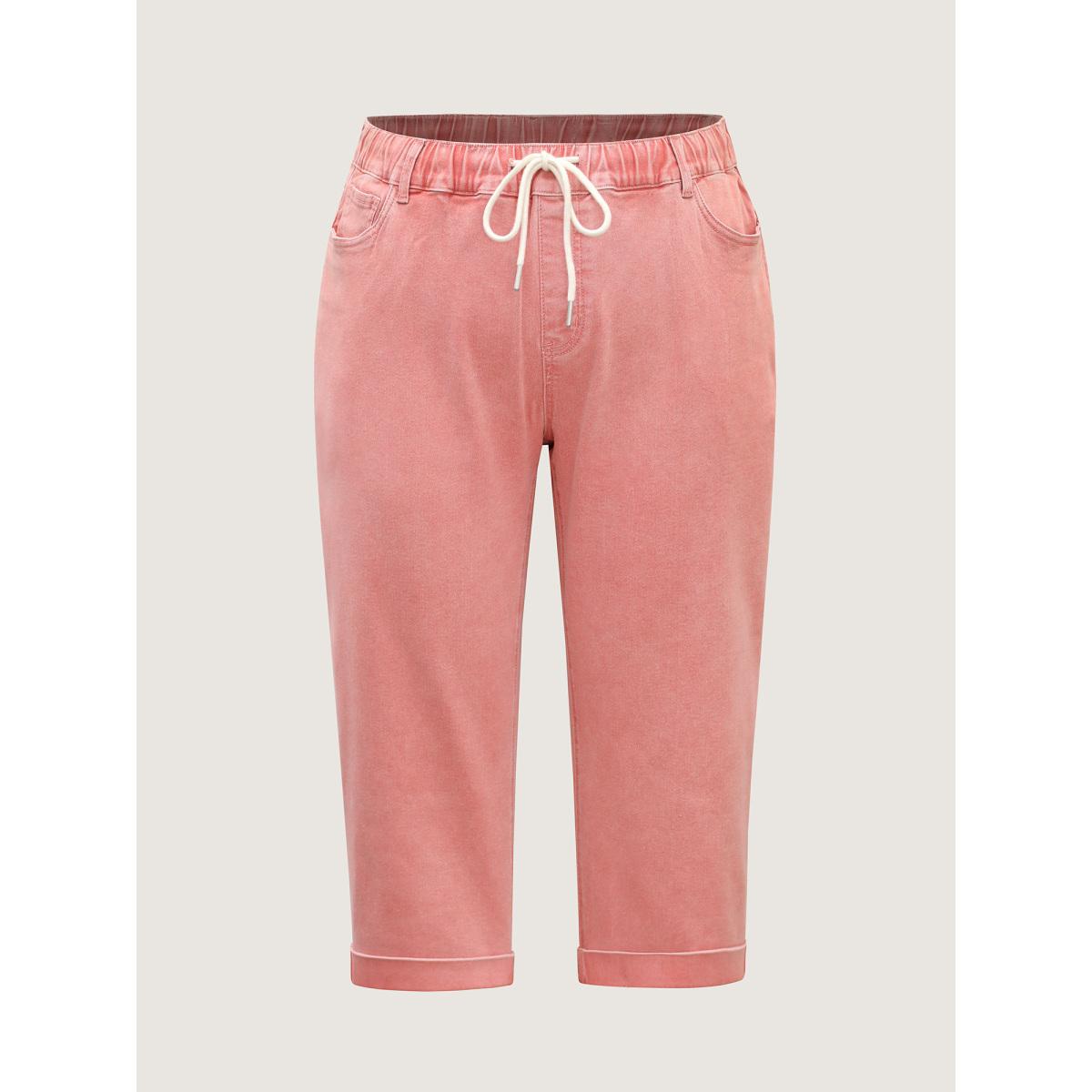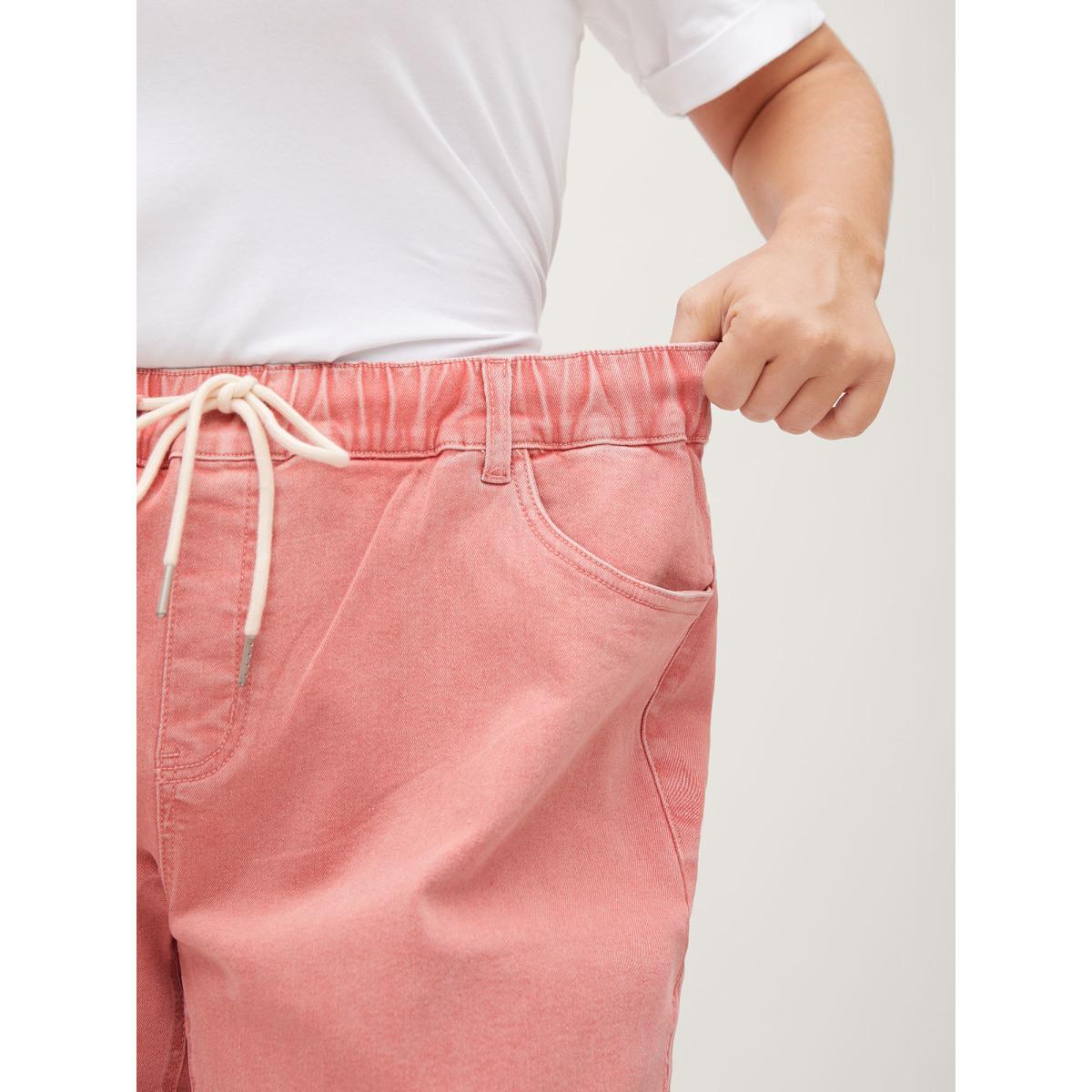 Plus Size Waist Drawstring Rolled Hem Jeans Women Denimdustypink Playful Roll Hem Medium stretch Slanted pocket Jeans BloomChic 24/3X