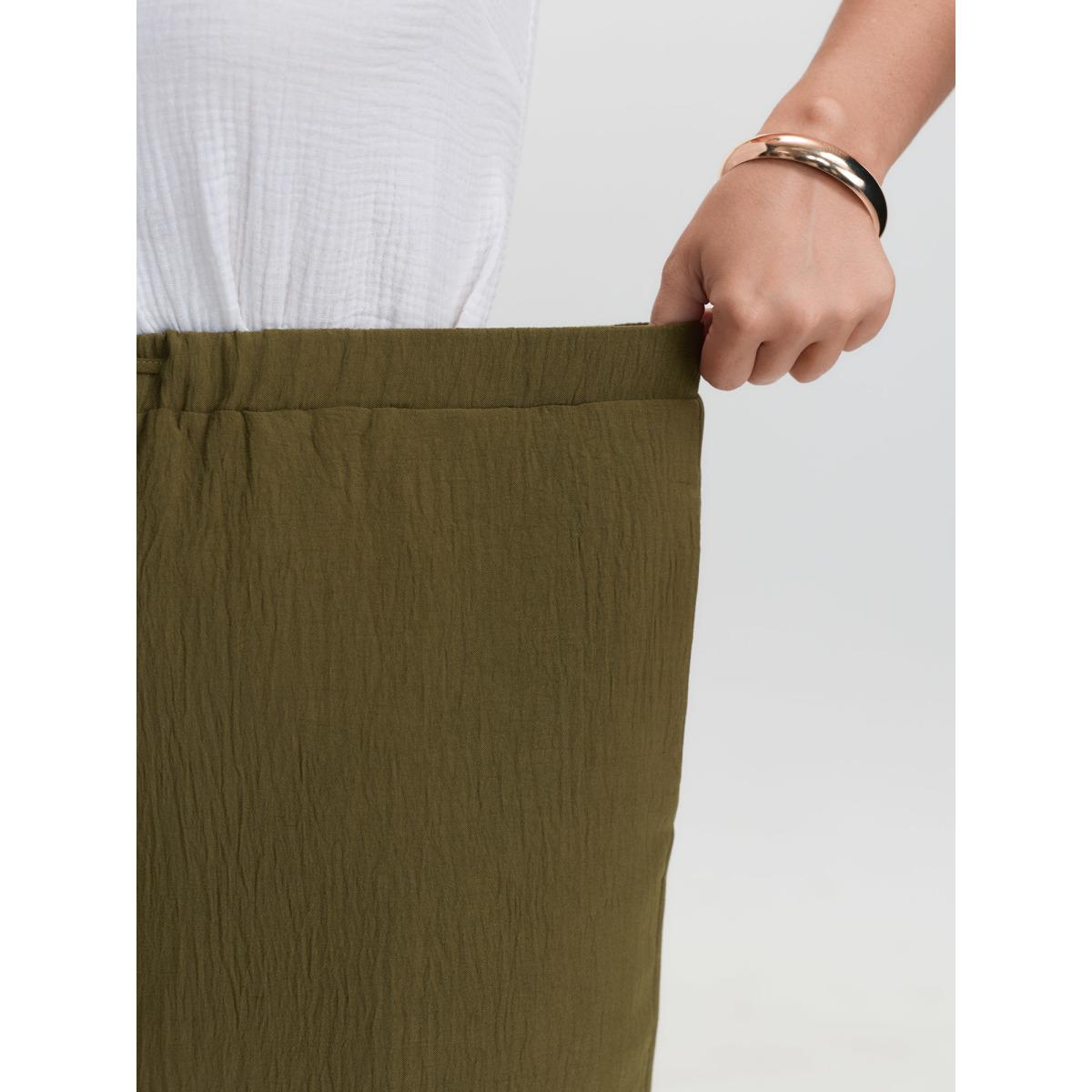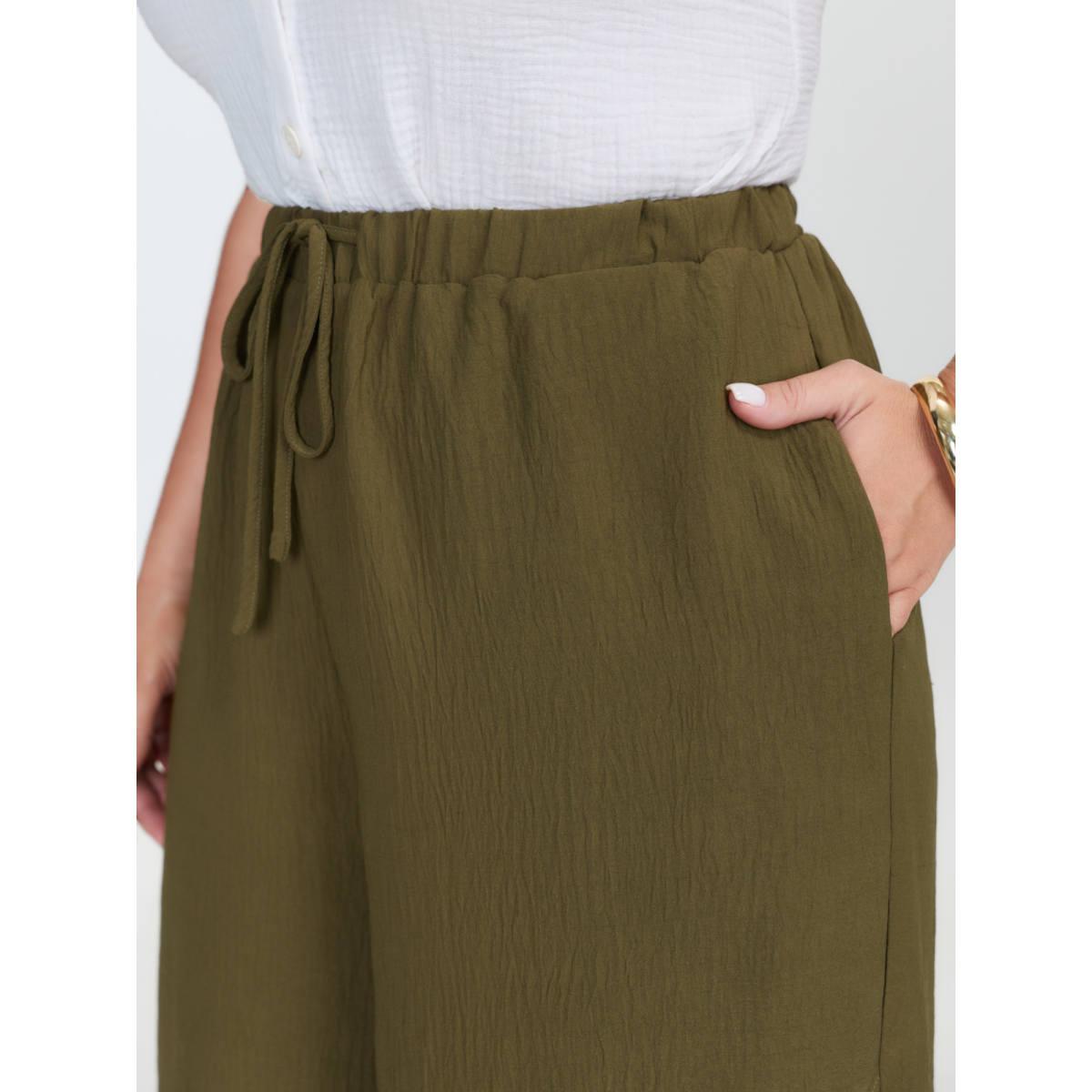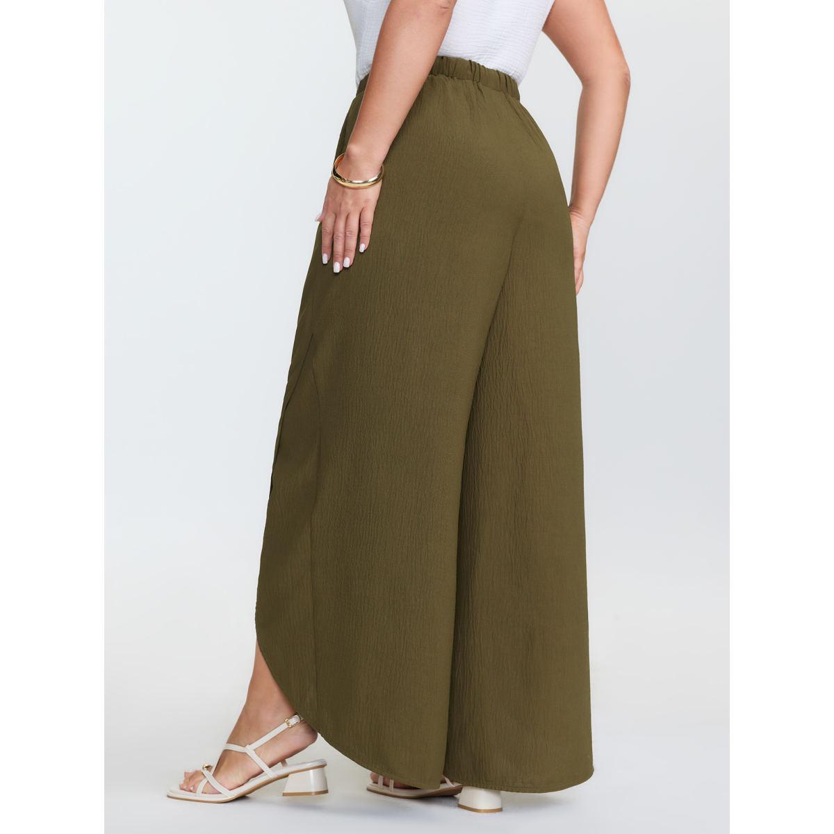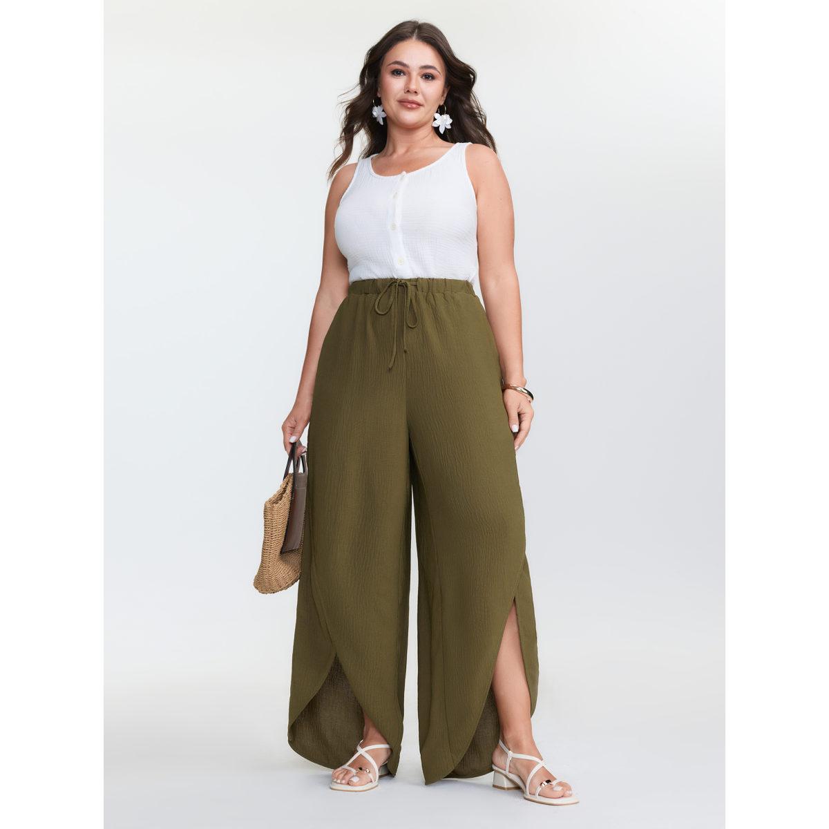 Plus Size Waist-Tie Slit Cuffs Pants Women Olive Boho Adaptive-Waist Vacation Pants BloomChic 30/6X