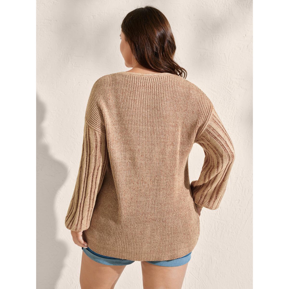Plus Size Wavy Textured Round Neck Pullover Yellowishbrown Women Leisure Loose Long Sleeve V-neck Casual Pullovers BloomChic 26/4X