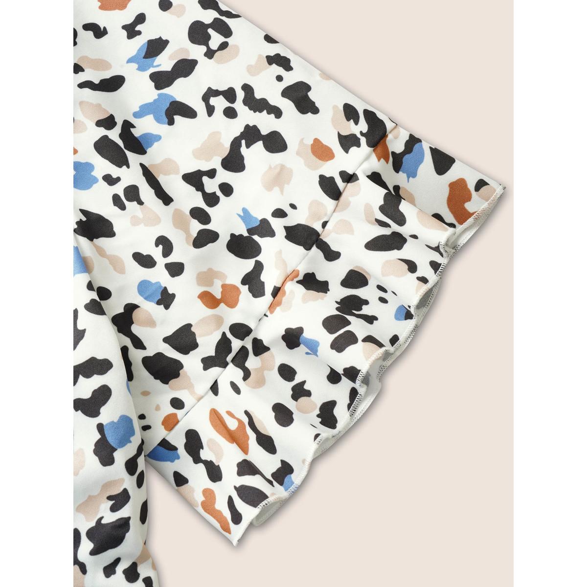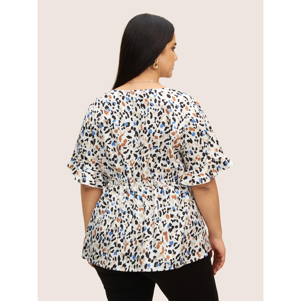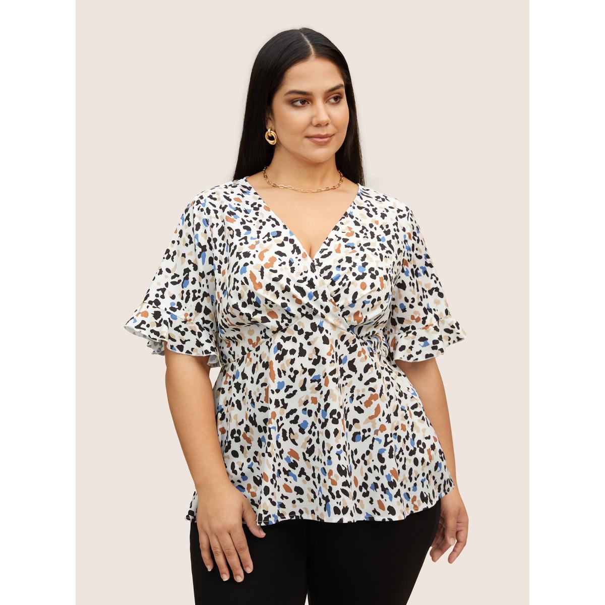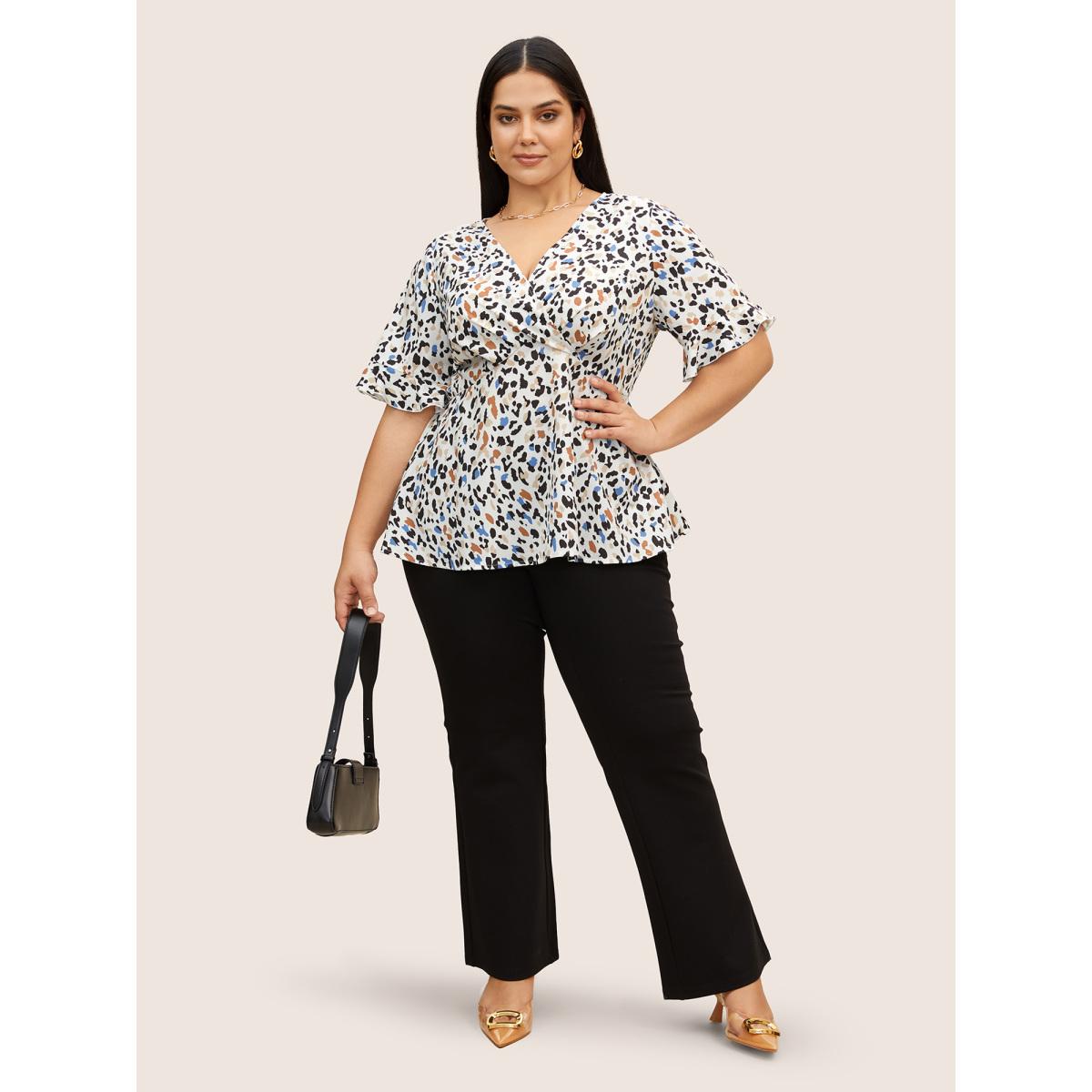 Plus Size White Allover Print Wrap Flutter Sleeve Blouse Women Work From Home Half Sleeve Overlap Collar Work Blouses BloomChic 30/6X