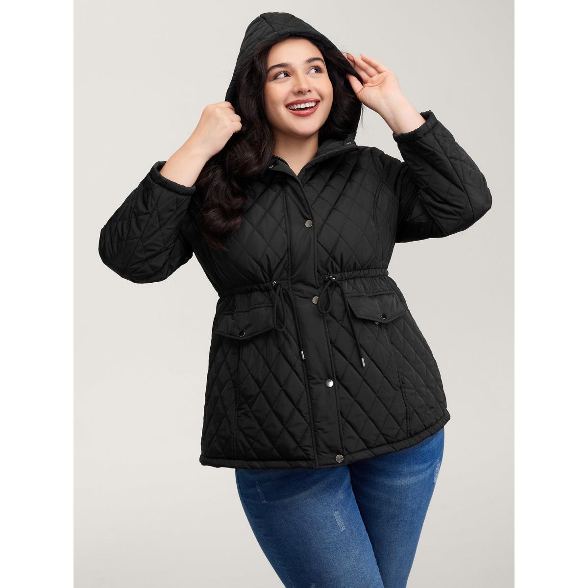Plus Size Women Dailywear Plain Texture No stretch 30/6X Pocket Casual Quilted Jackets BloomChic