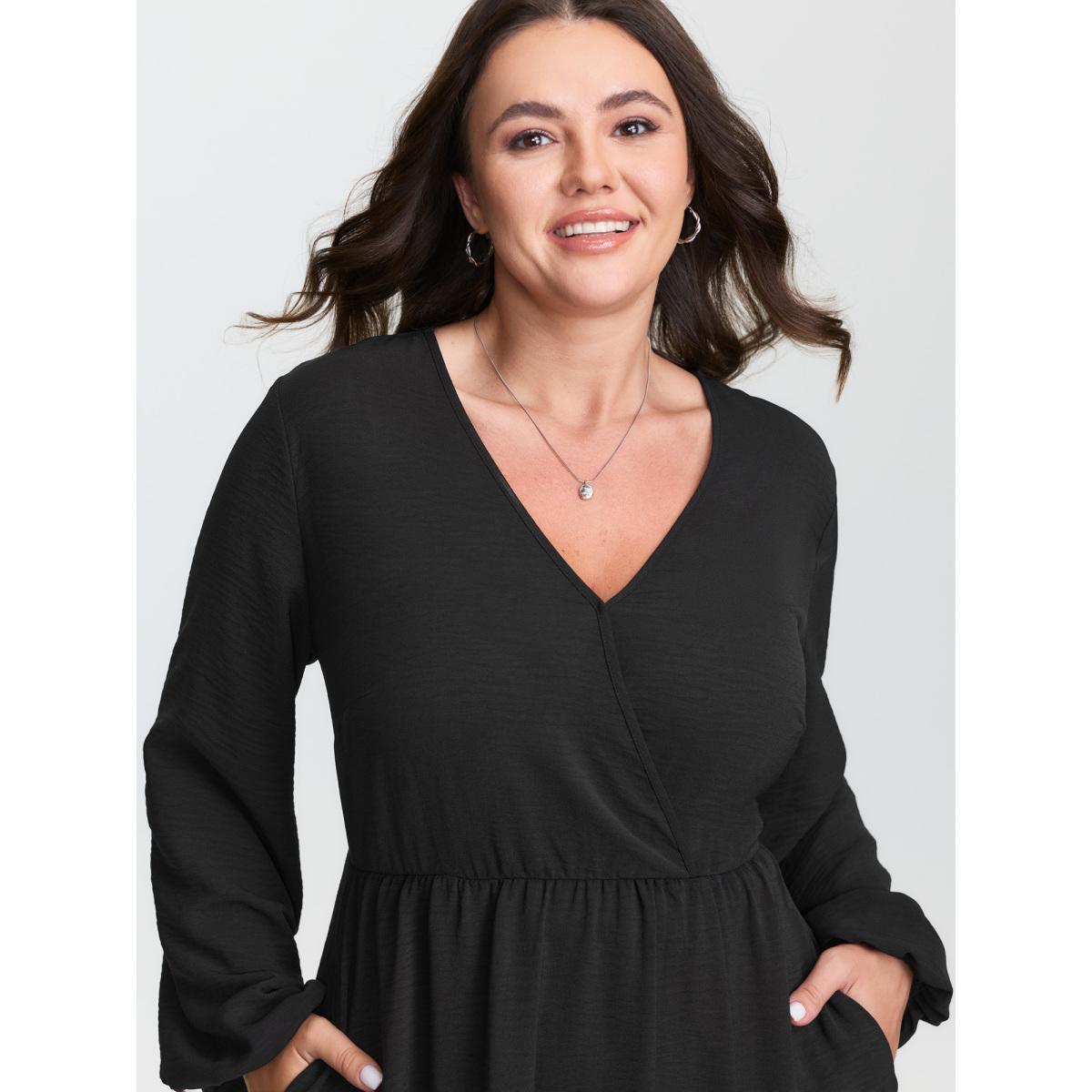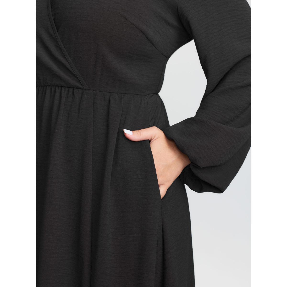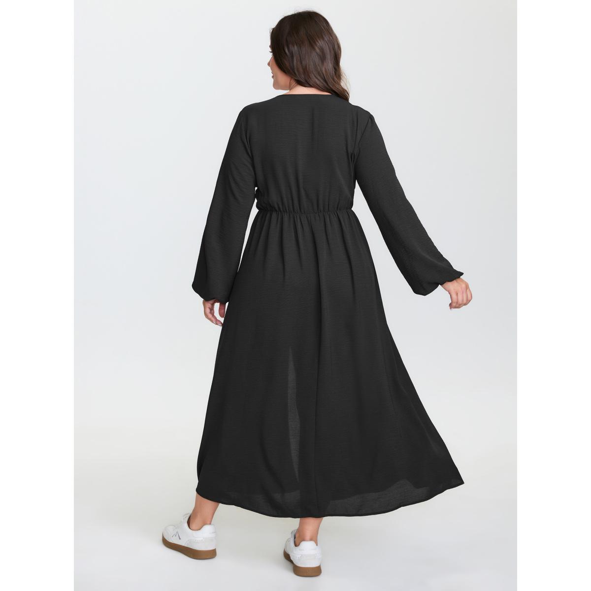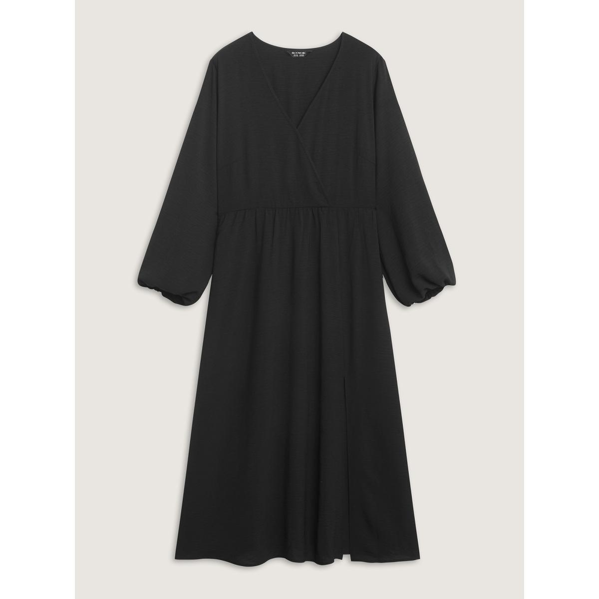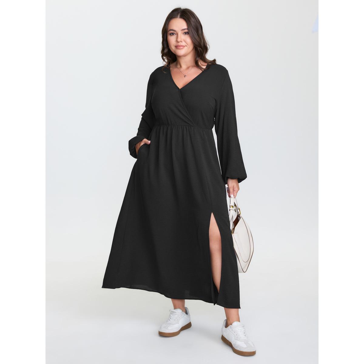 Plus Size Wrap Neckline Slit Hem Flowy Maxi Dress Black Women Leisure Overlapping Overlap Collar Long Sleeve Curvy BloomChic 14-16/1X