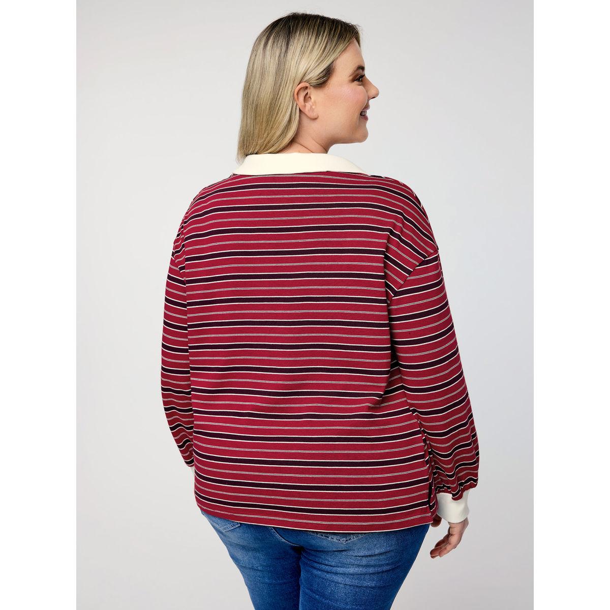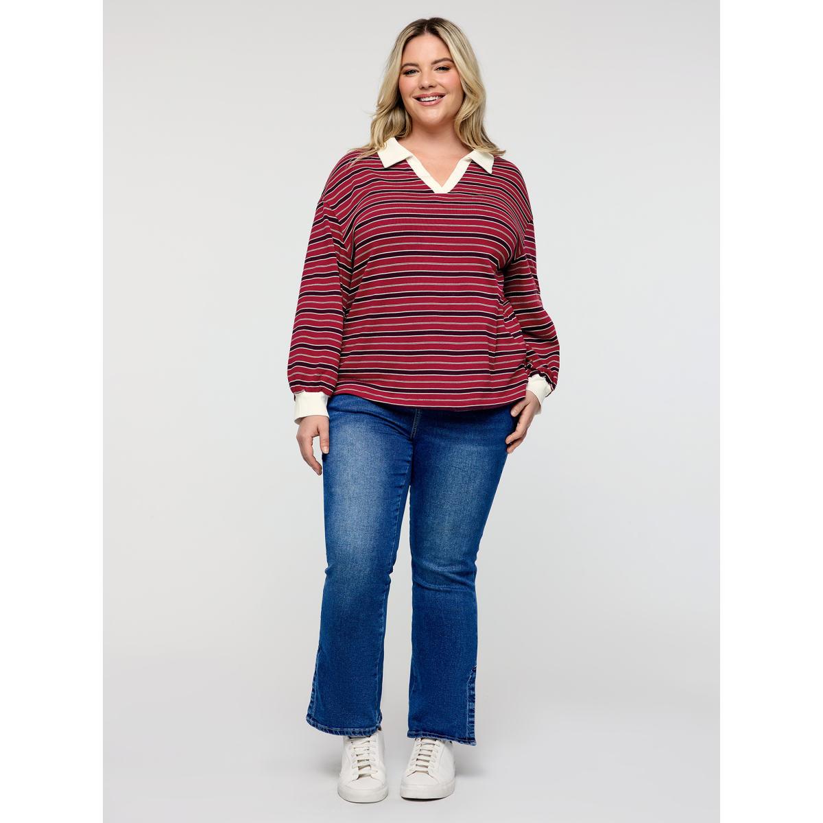 Plus Size Yarn-Dyed Stretchy Stripes Collar Sweatshirt Women Multicolor Notched collar Casual Sweatshirts BloomChic 10/M Product Image