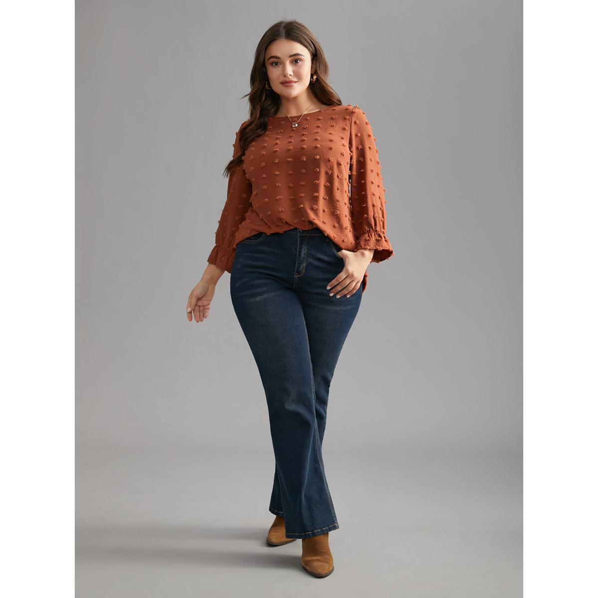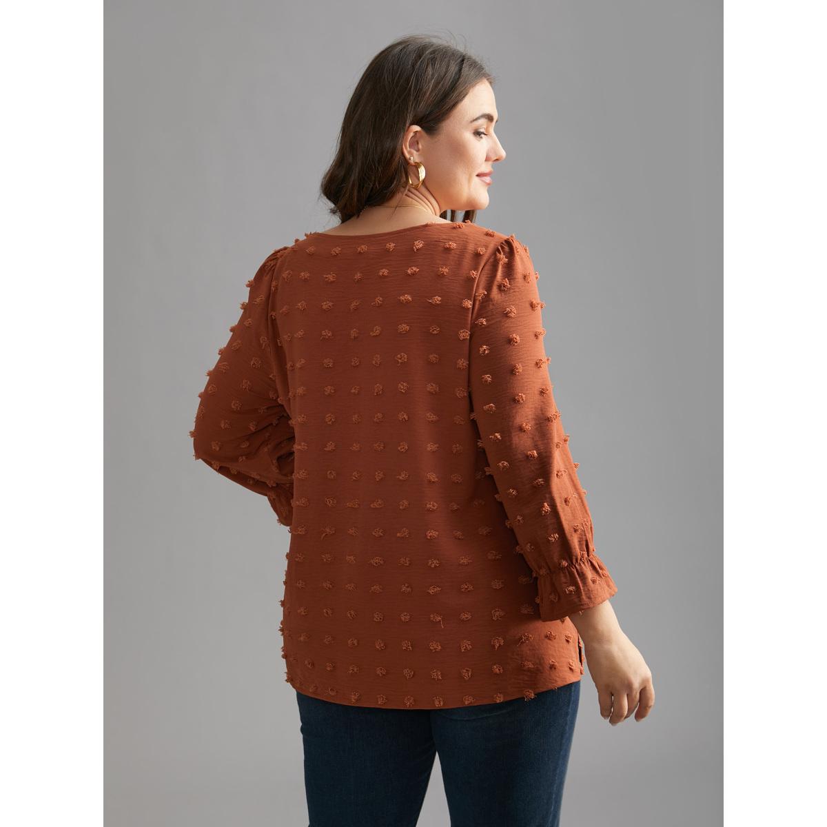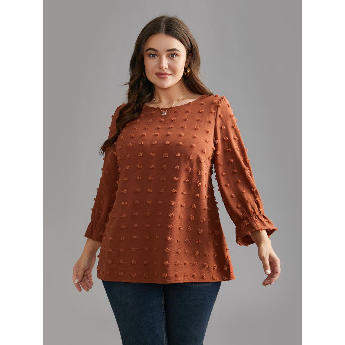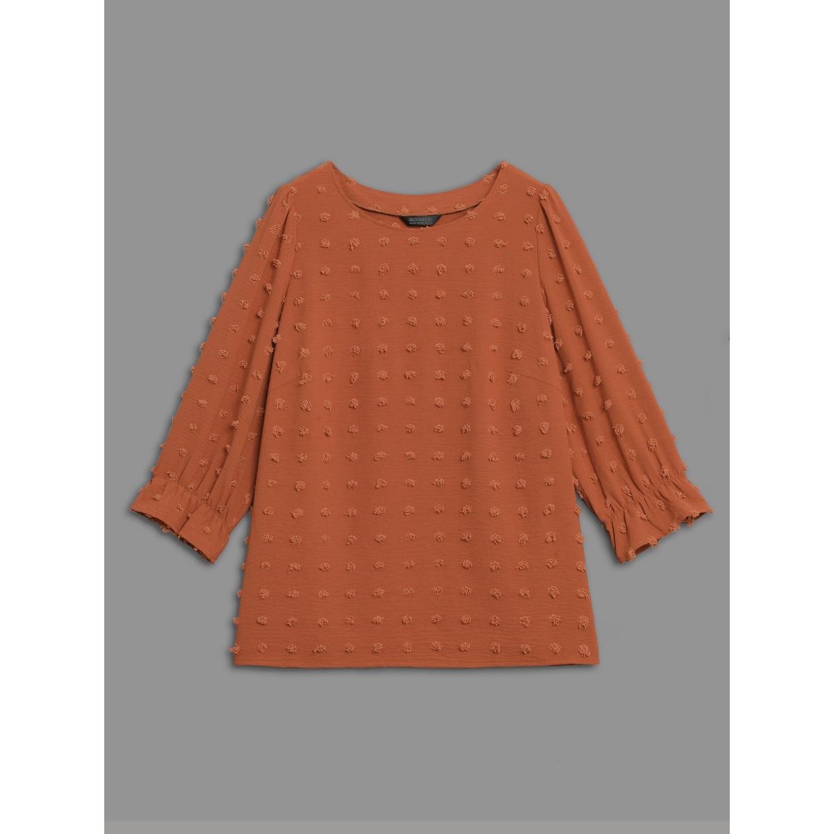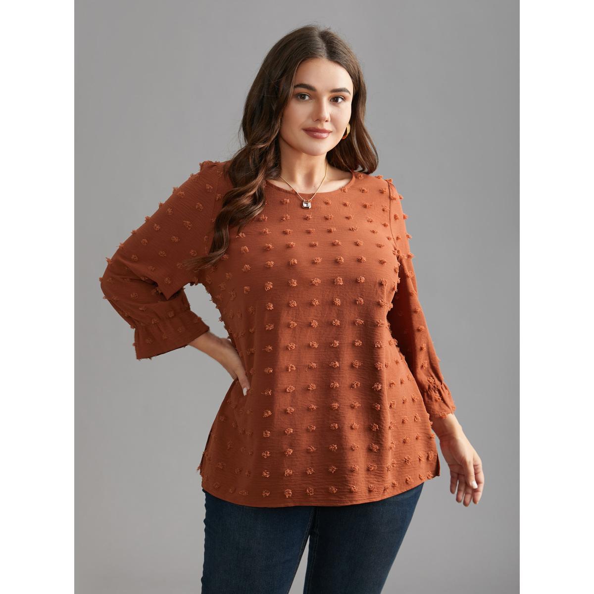 Plus Size Yellowishbrown Textured Balloon Sleeves Round Neck Blouse Women Elegant Elbow-length sleeve Round Neck Everyday Blouses BloomChic 10/M